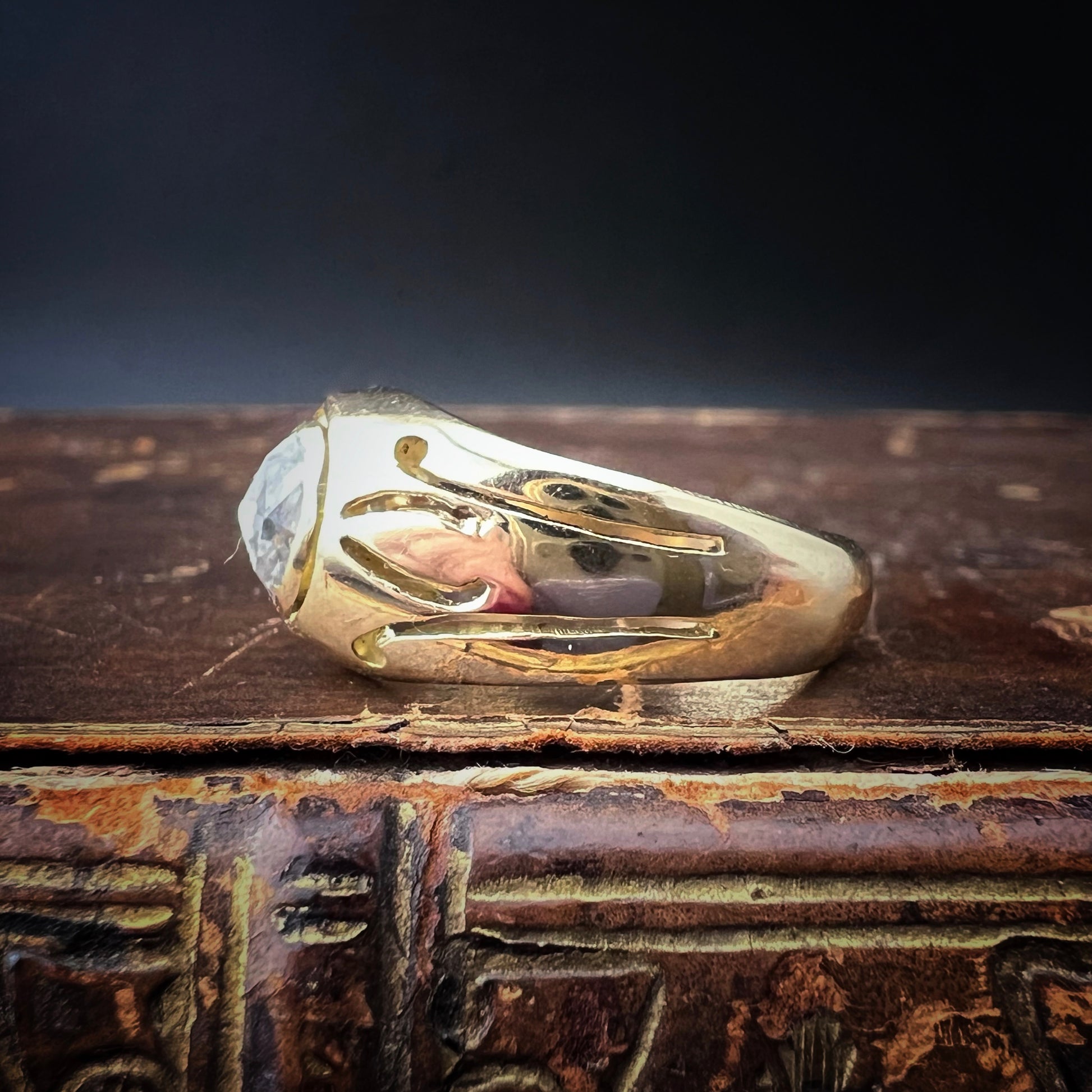 Set using an ancient technique called "night setting," the diamond is closed on the sides and underneath, giving the stone a pearly, mysterious hue, typical of the Victorian era. This unique setting enhances the diamond's brilliance, lending the ring a magnetic and sophisticated aura.