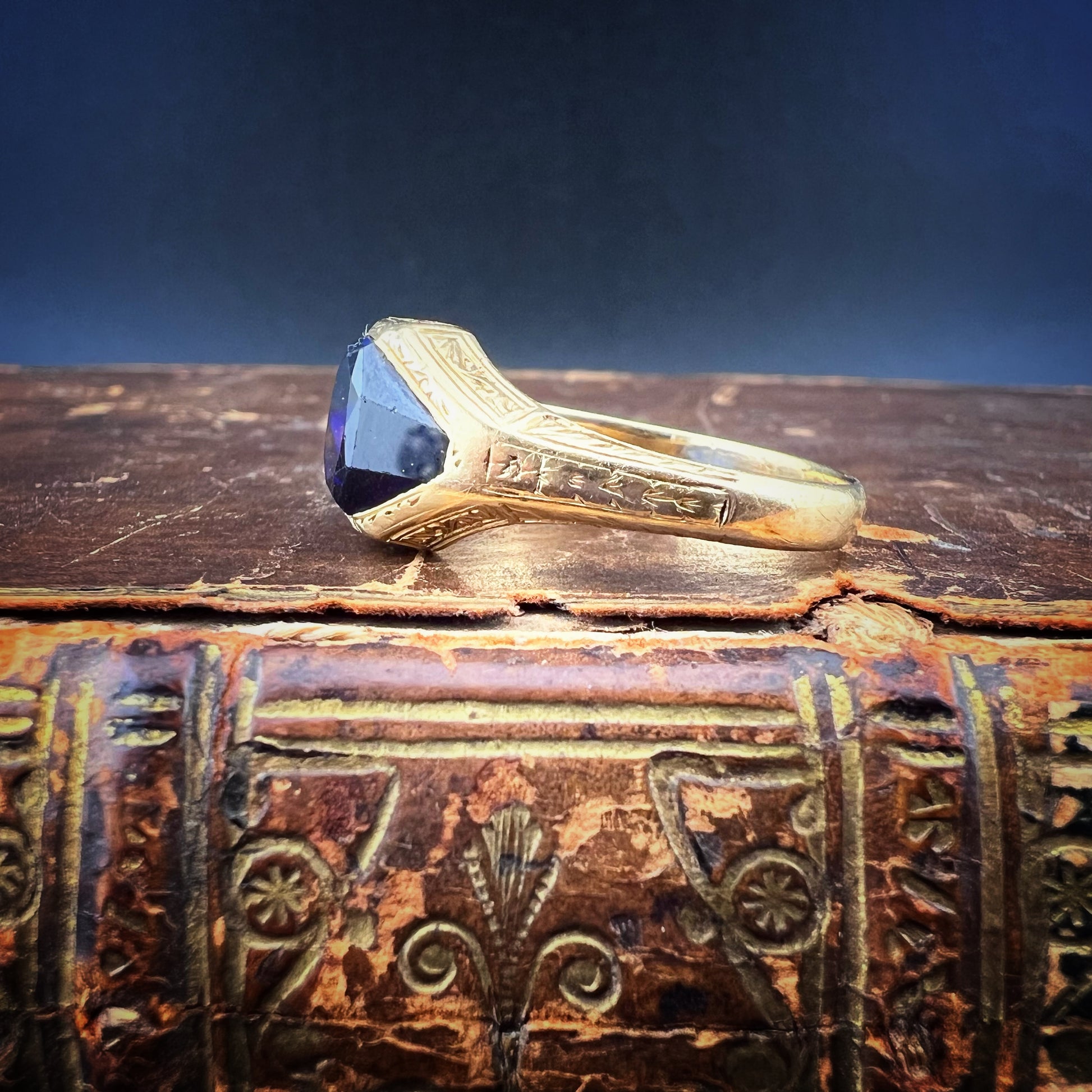 Men's 18k gold ring with synthetic sapphire, c. 1920