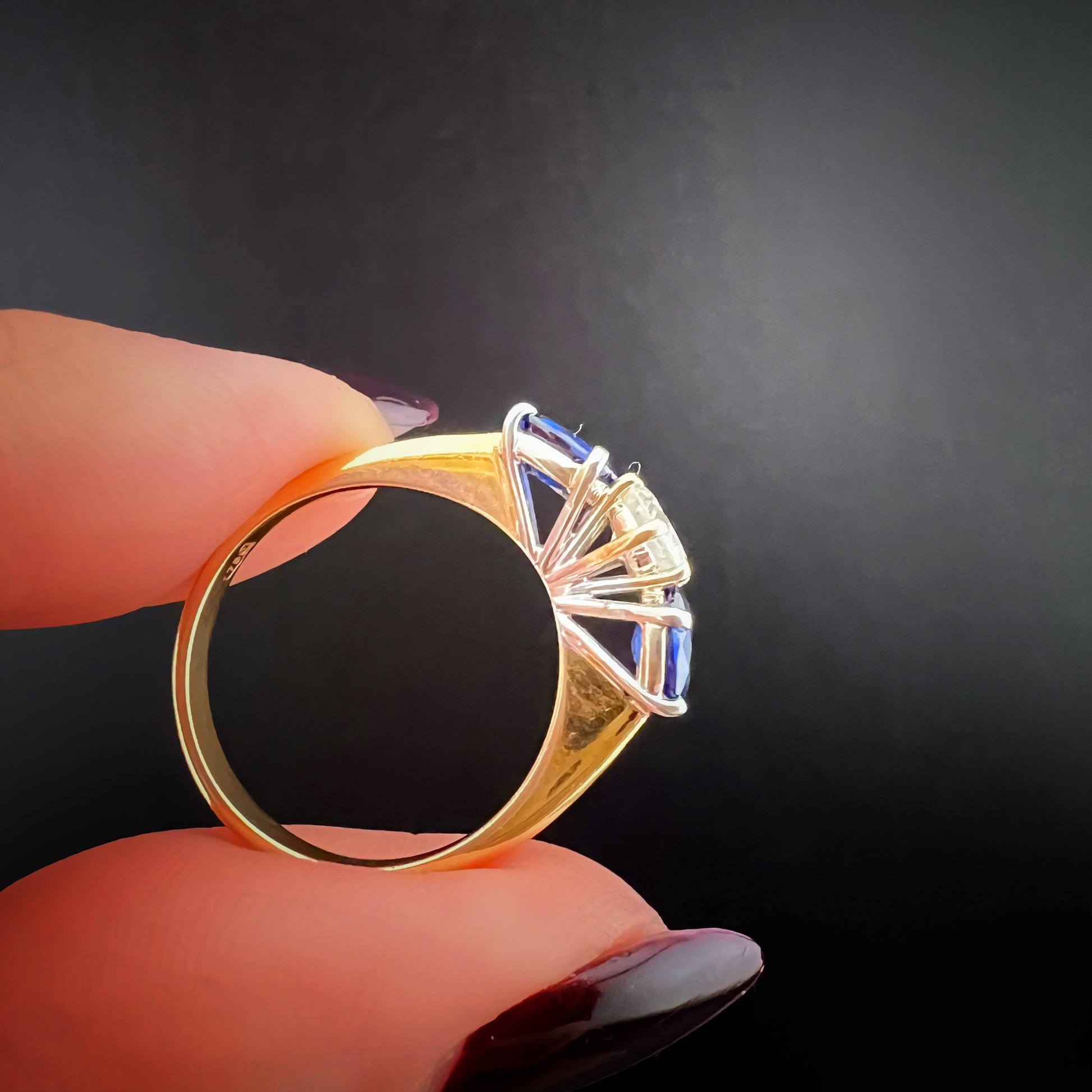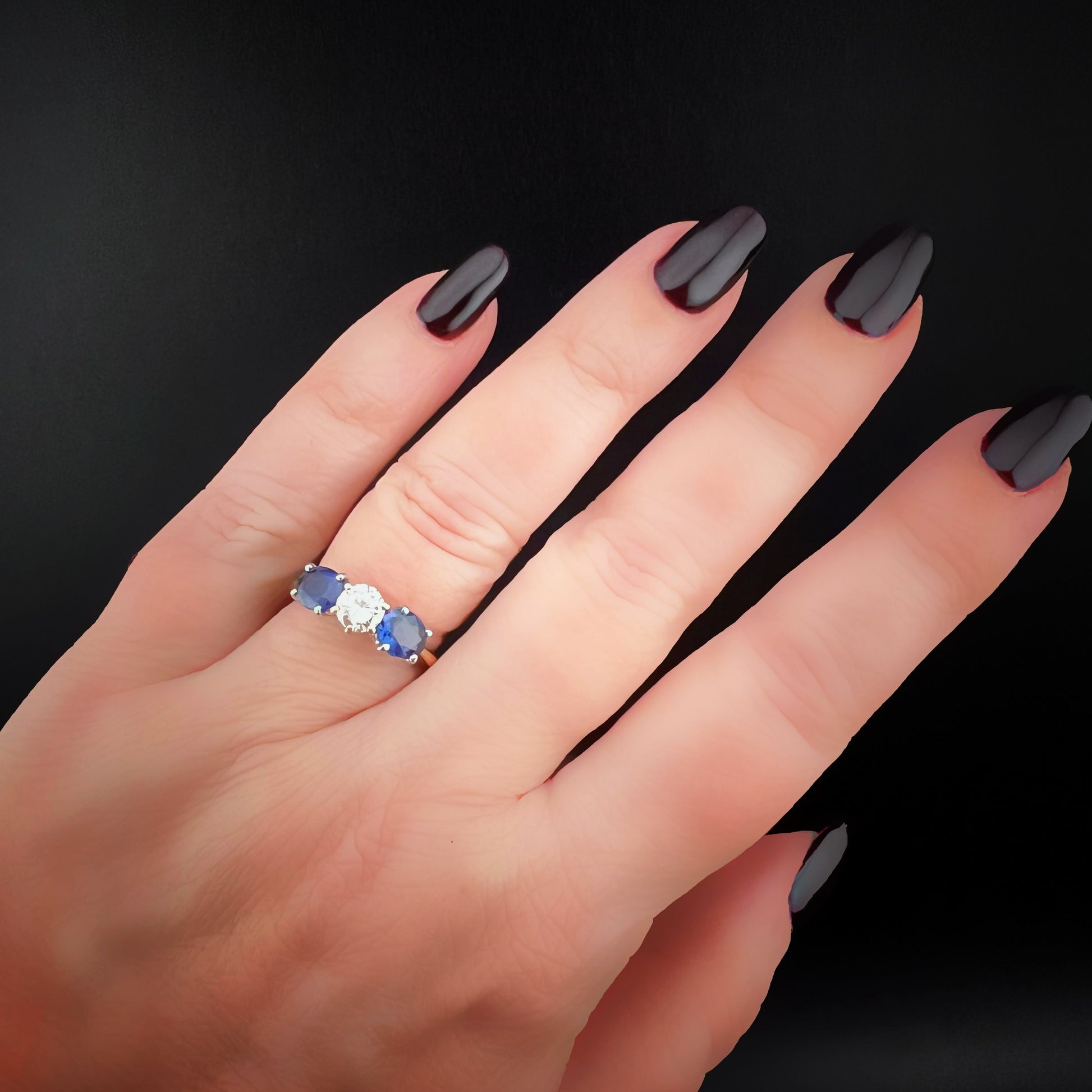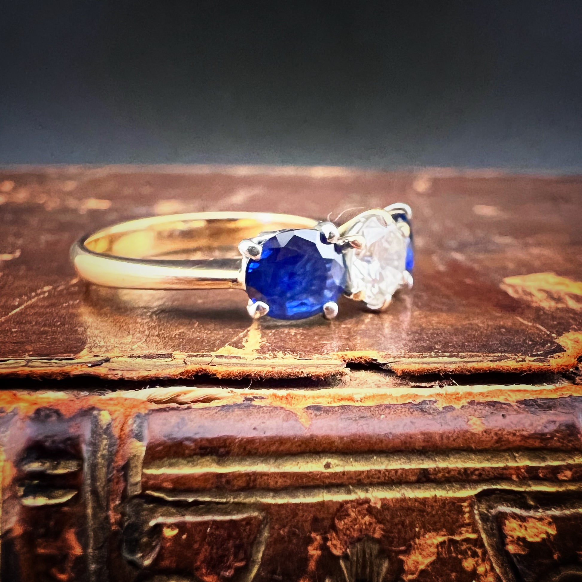 This ring represents a perfect balance between elegance, refinement, and historical value. The timeless design and quality of the gemstones make it a precious jewel, suitable both as a symbol of love and as an investment. The combination of diamond and sapphire enhances its brilliance and depth of color, lending it a sophisticated and timeless allure.