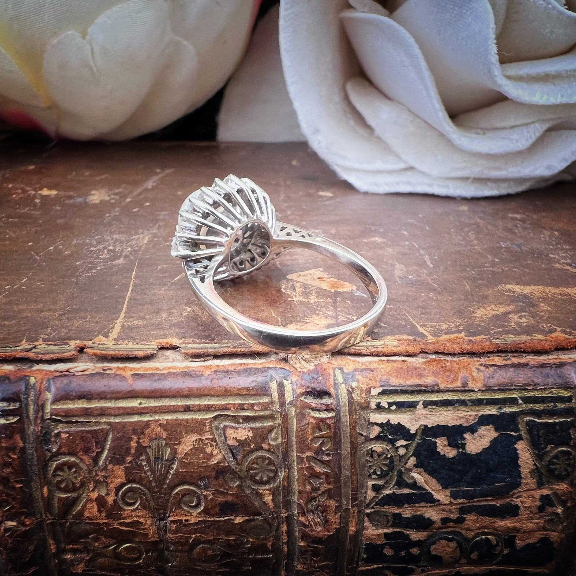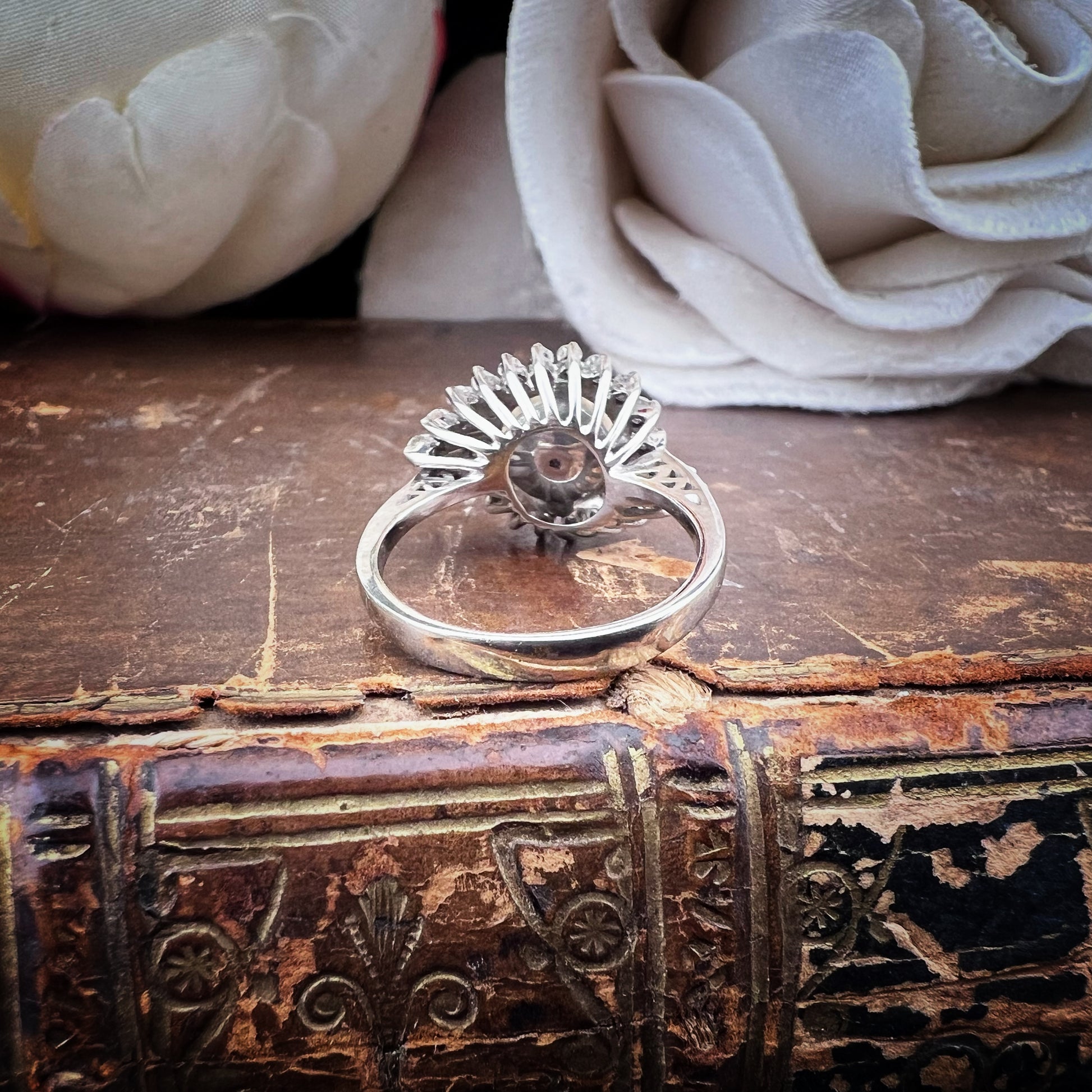 Few words before the timeless elegance of this splendid vintage ring in 18-karat white gold, made between the 1950s and 1960s.