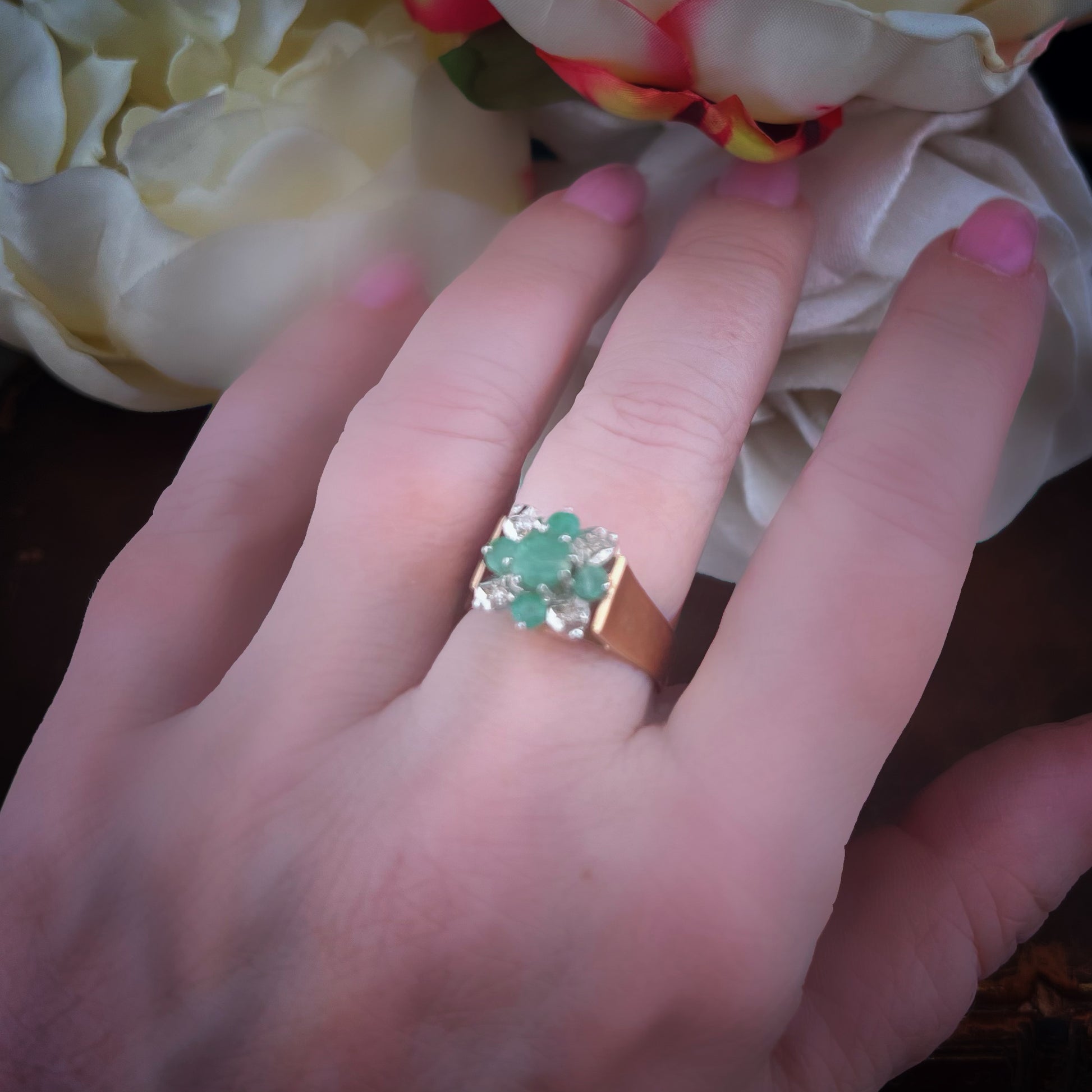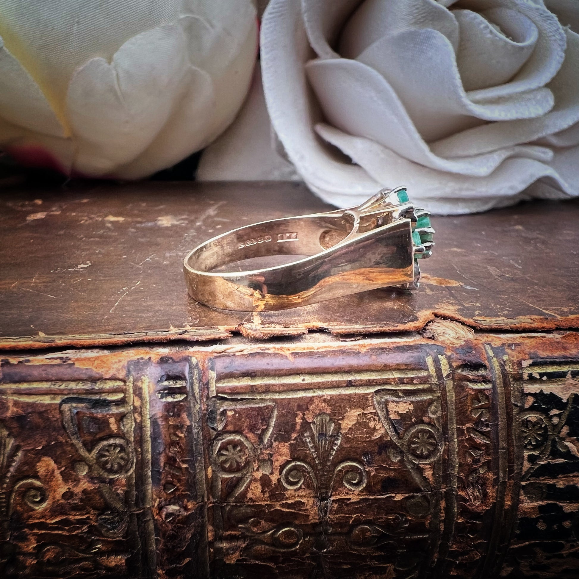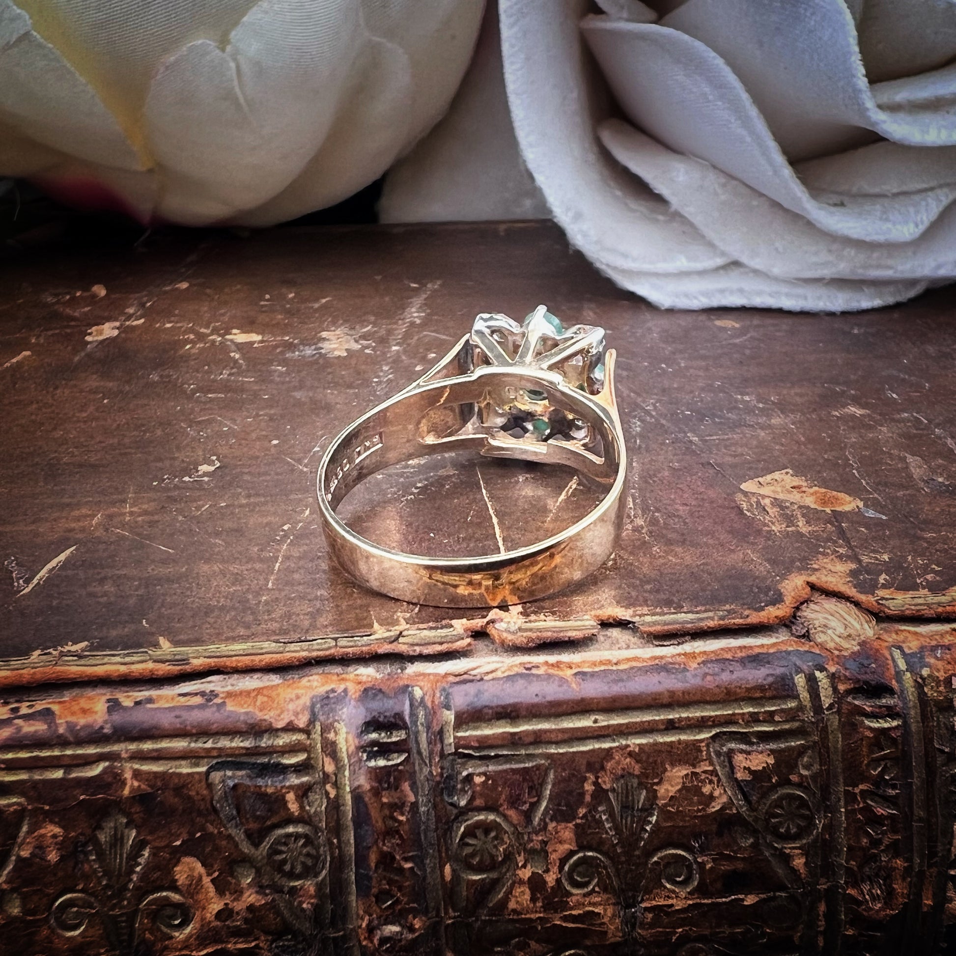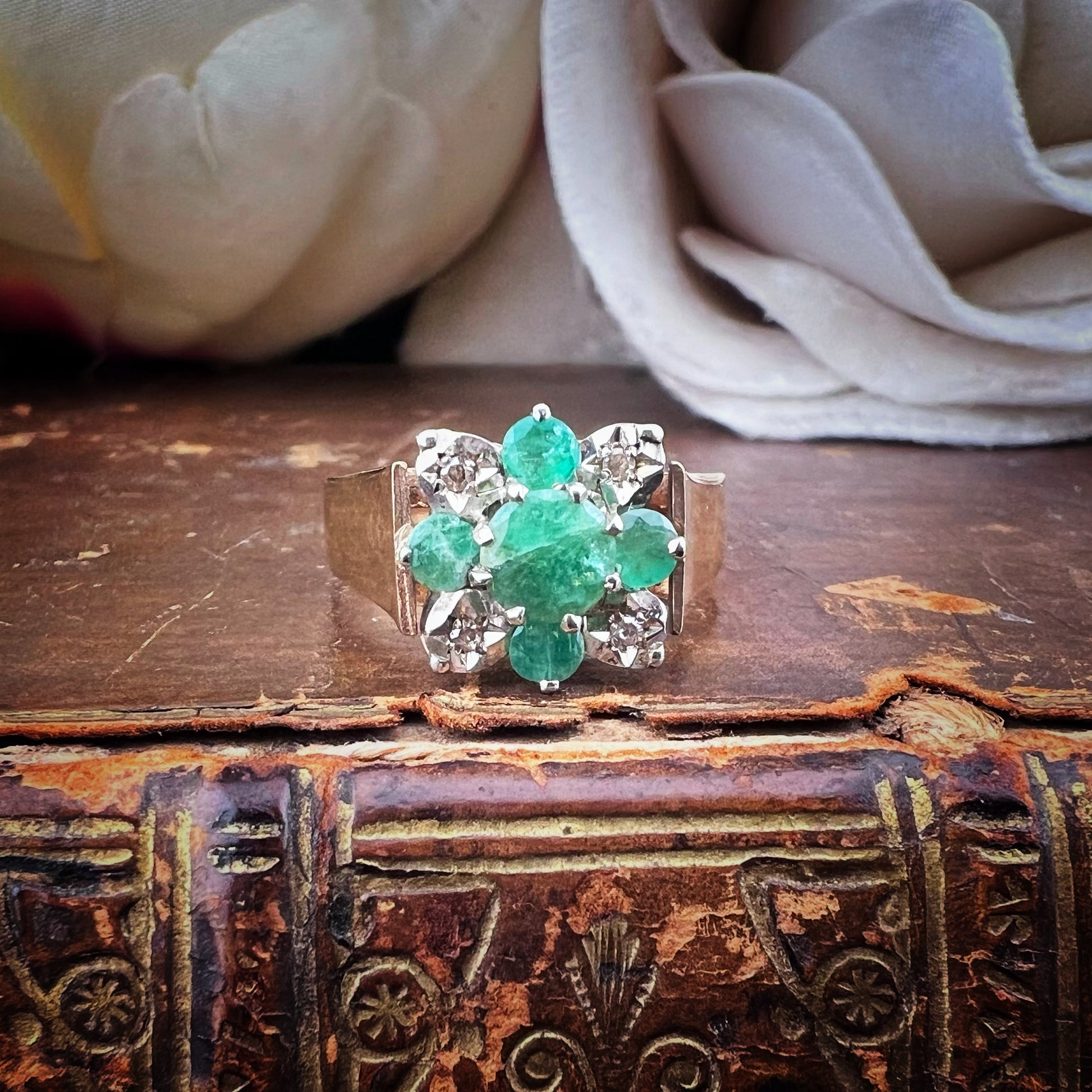 Vintage gold ring with emeralds and diamonds – Sheffield, 1980