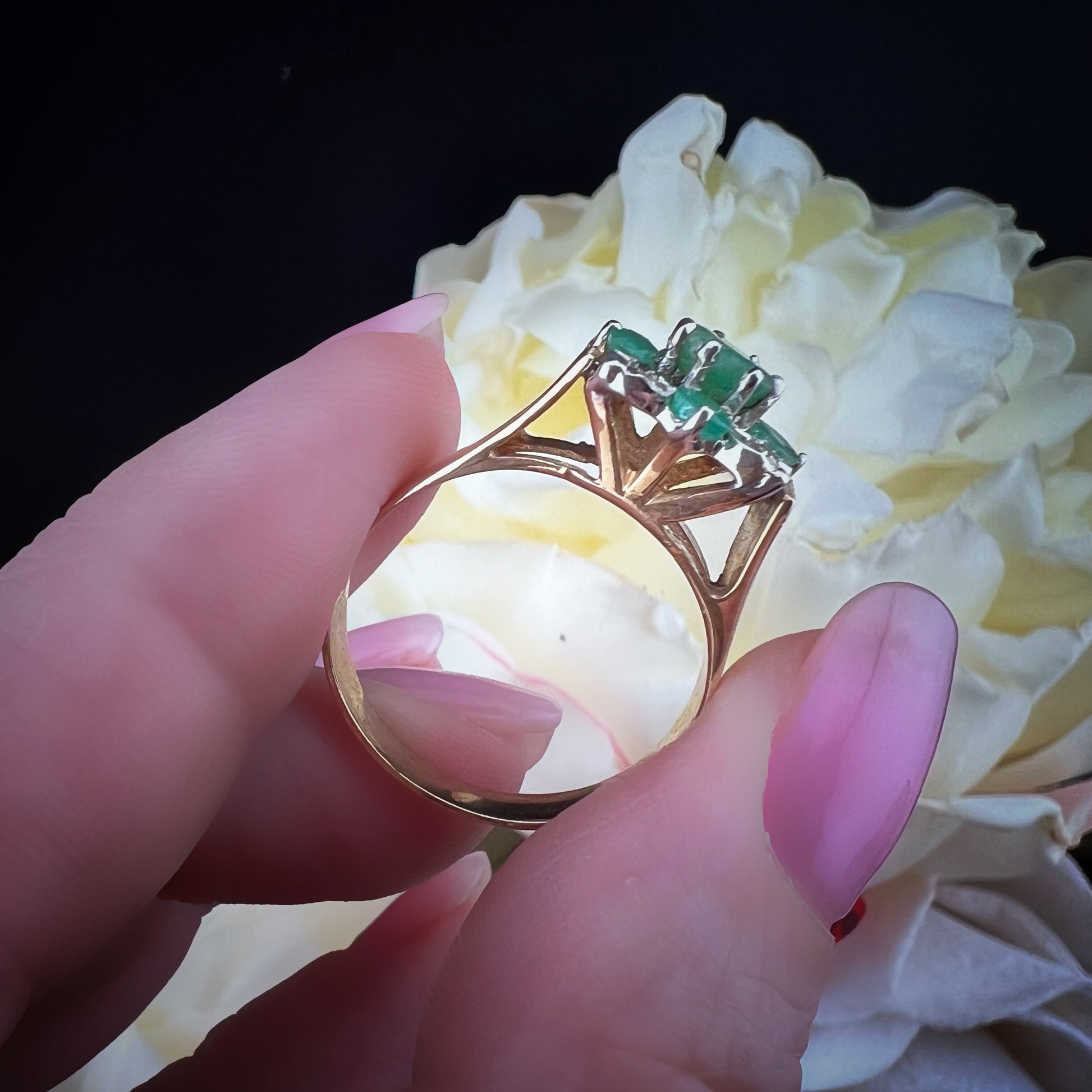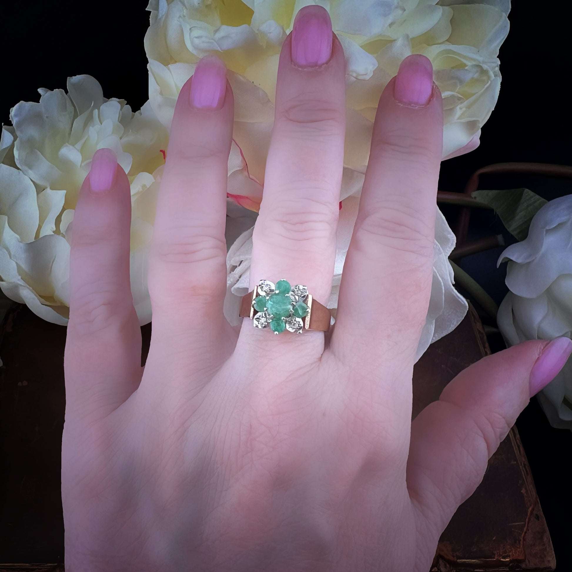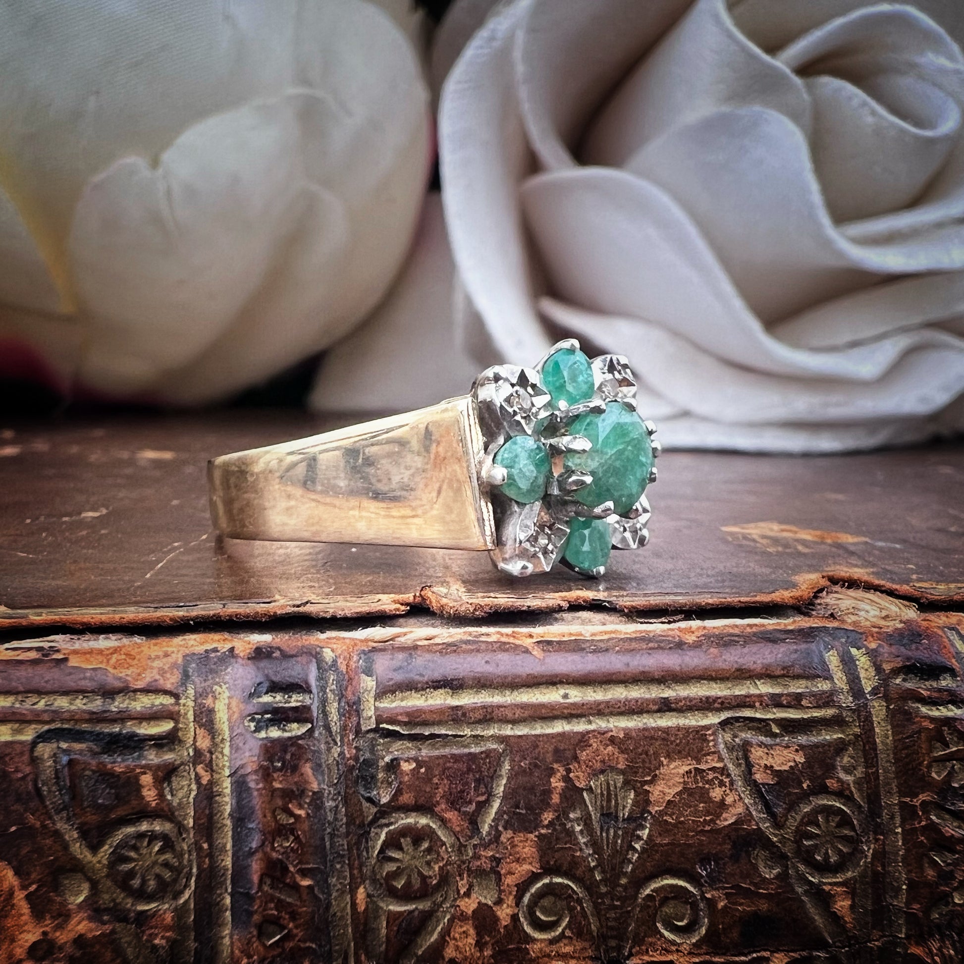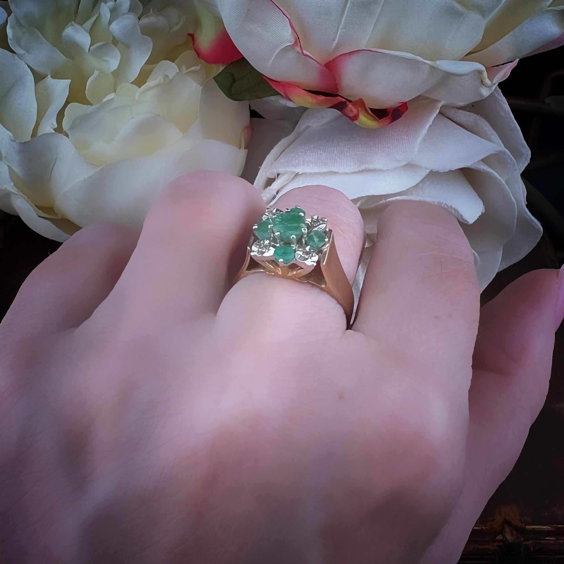 Vintage gold ring with emeralds and diamonds – Sheffield, 1980