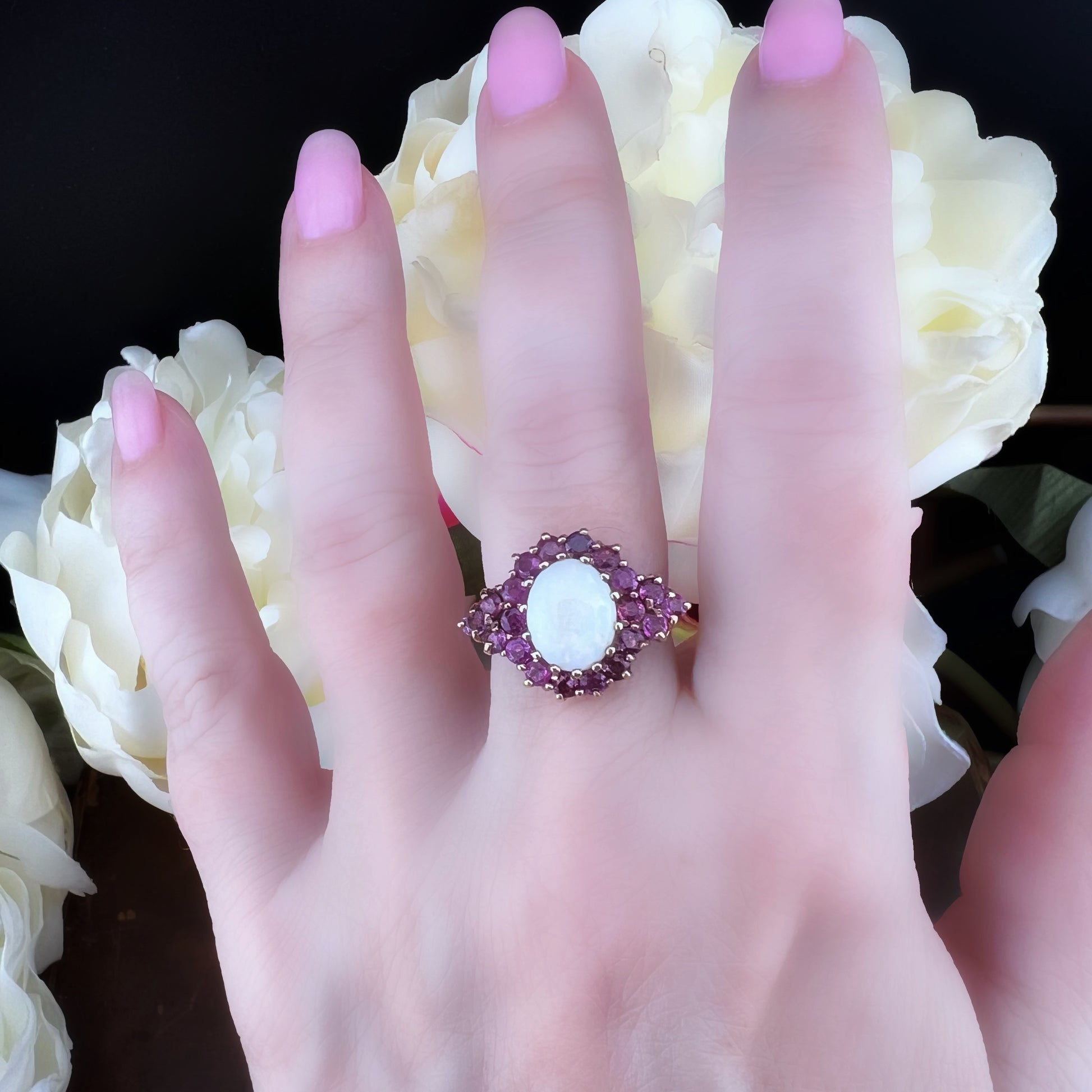 - Together: The union of opal and ruby creates a powerful combination of delicacy and intensity, of iridescent light and fiery heat—a balance that makes this ring not only beautiful, but also rich in symbolic meaning.