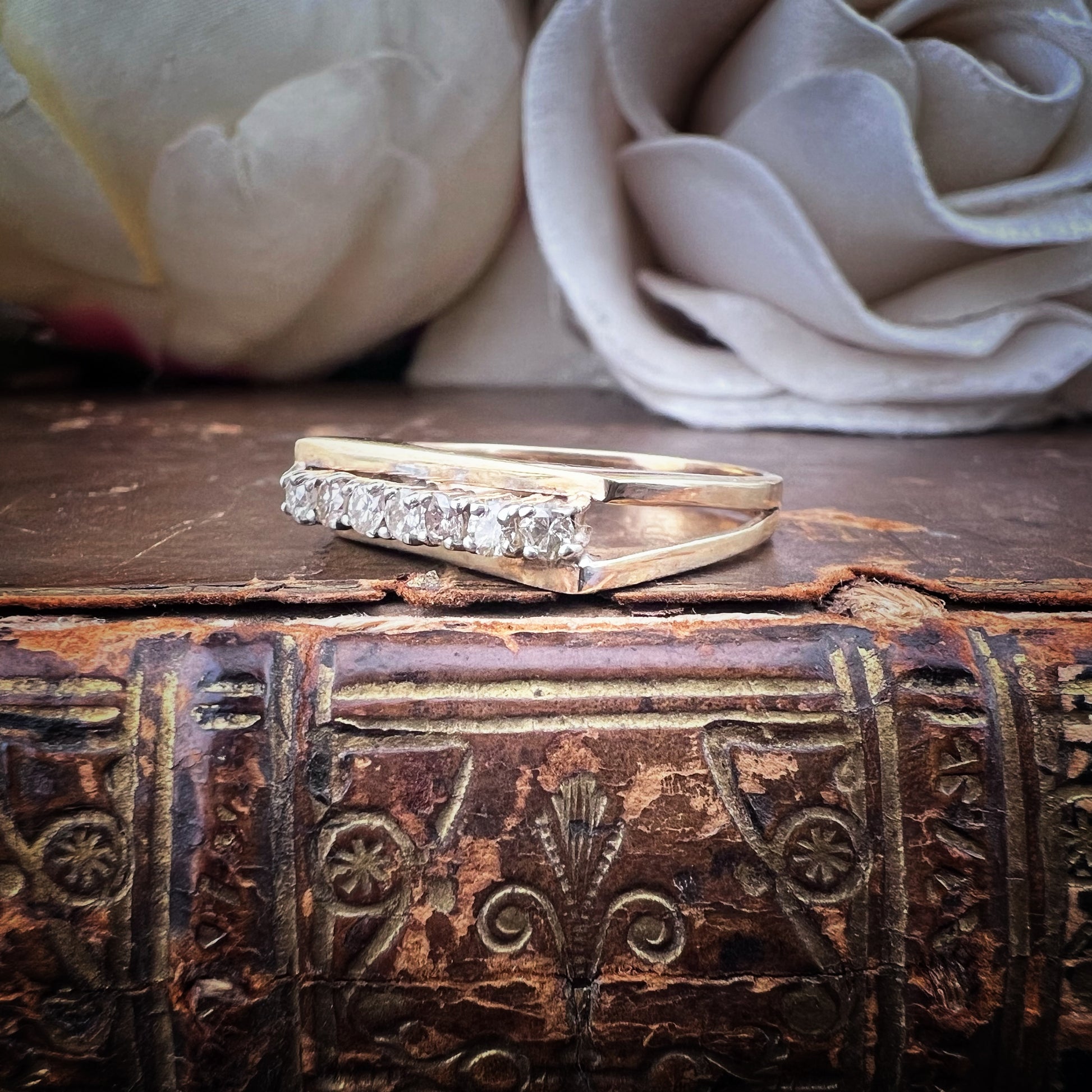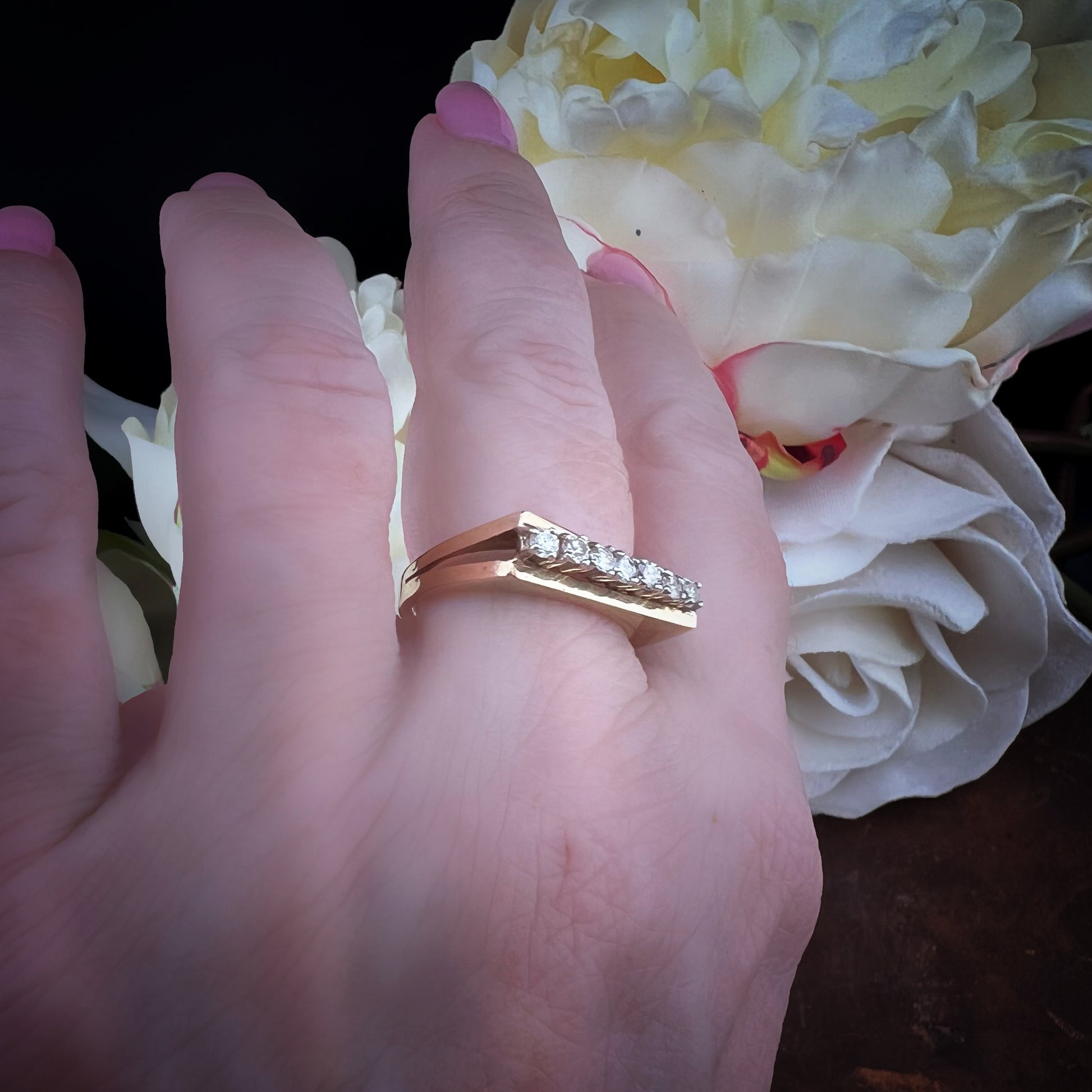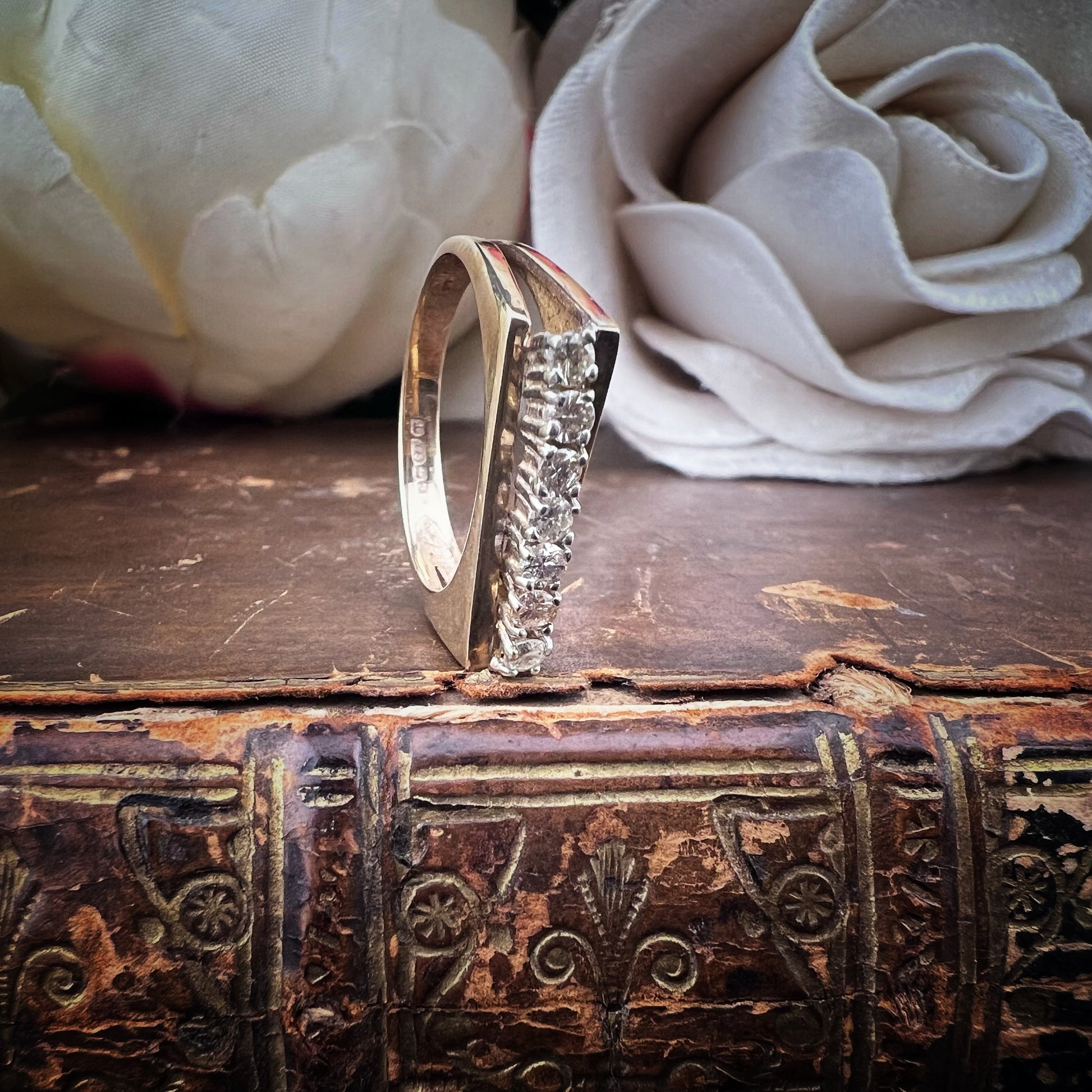Vintage English diamond ring – oblique bridge model (Sheffield, 1980)