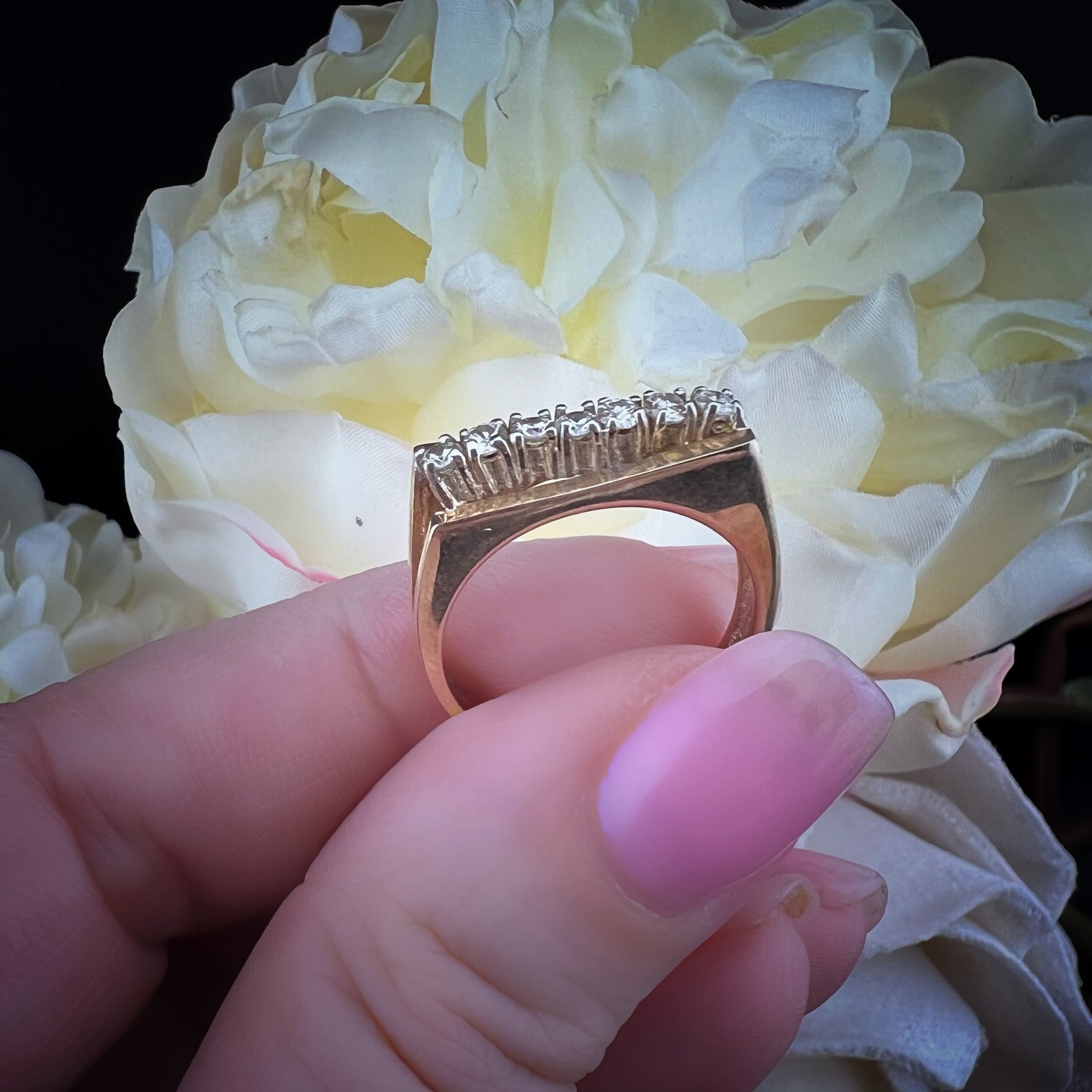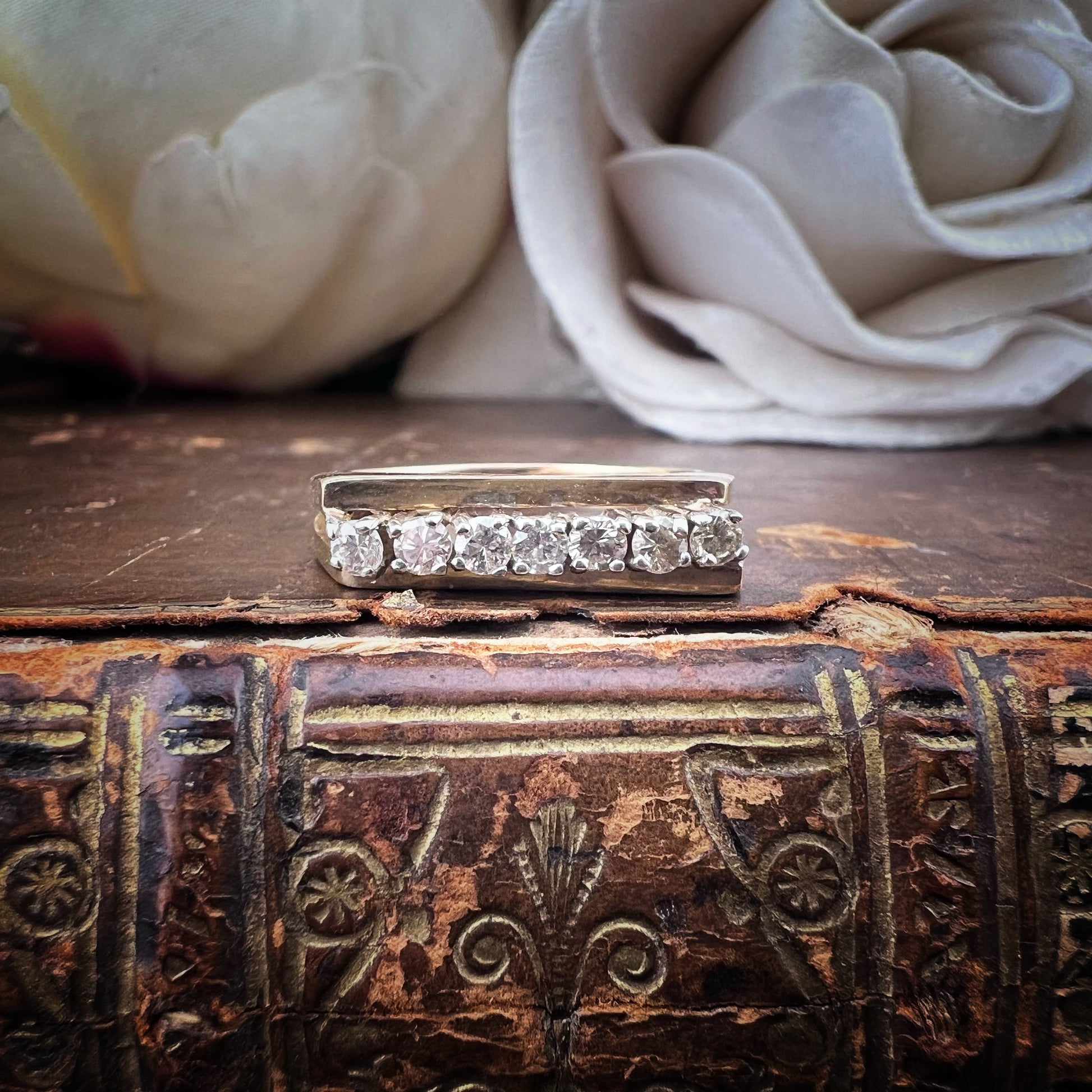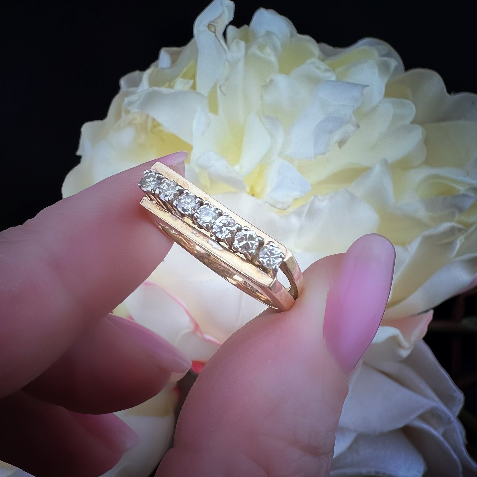 Vintage English diamond ring – oblique bridge model (Sheffield, 1980)