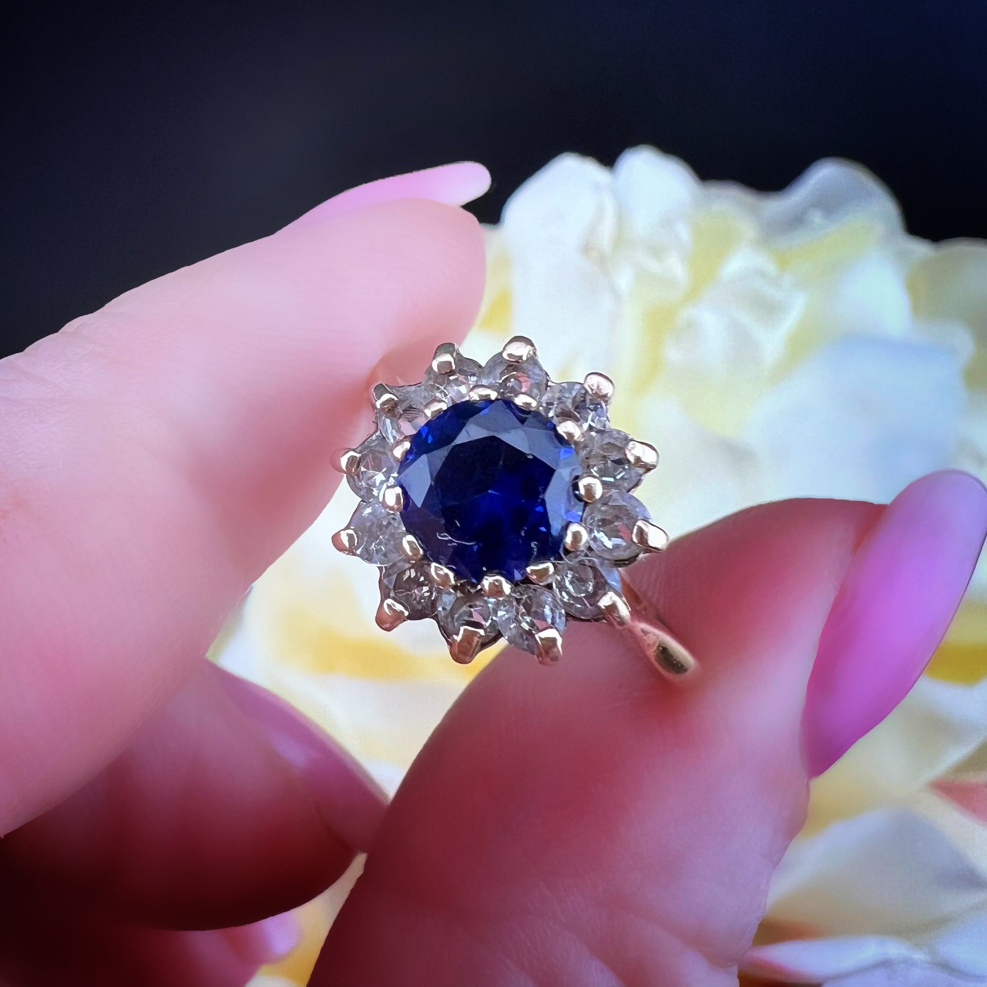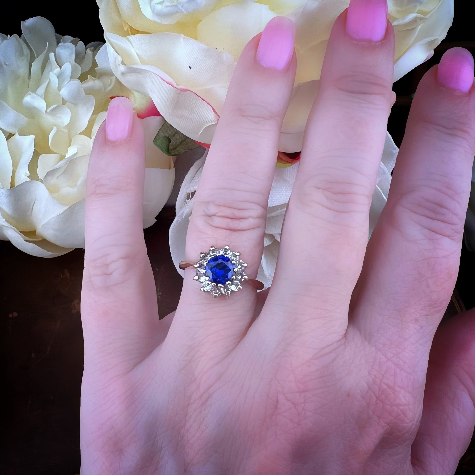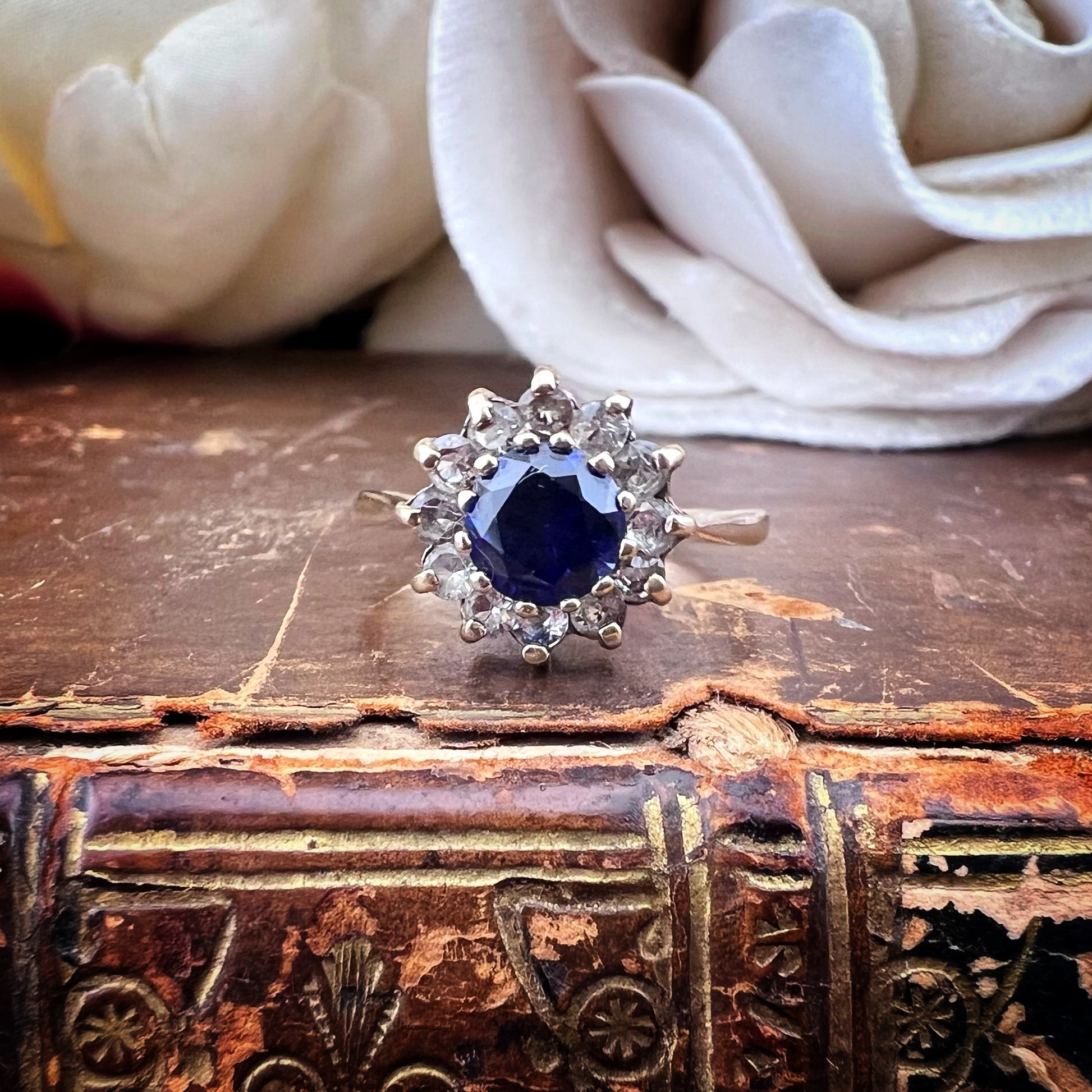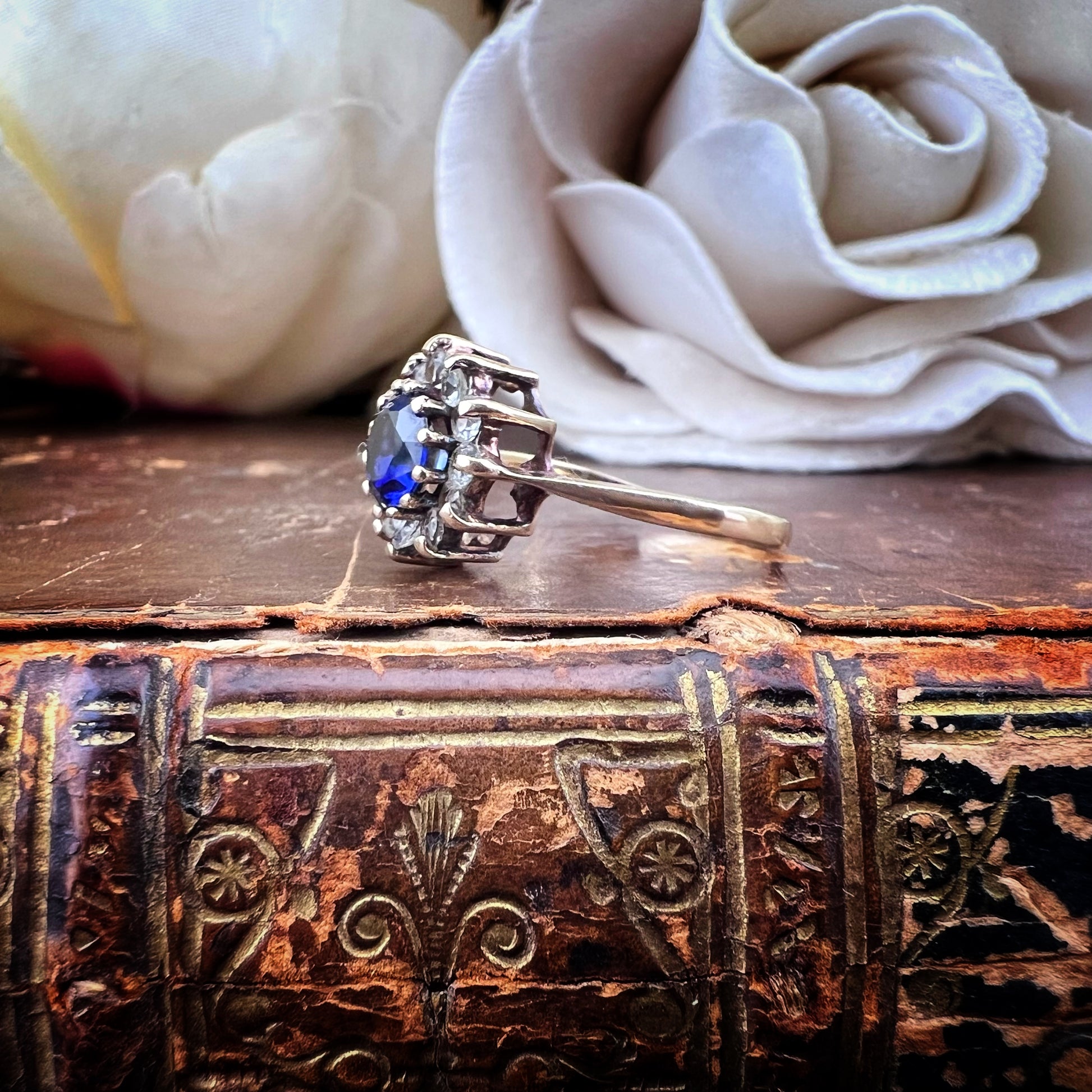 Vintage Daisy Ring with Sapphire and White Quartz – Birmingham 1971