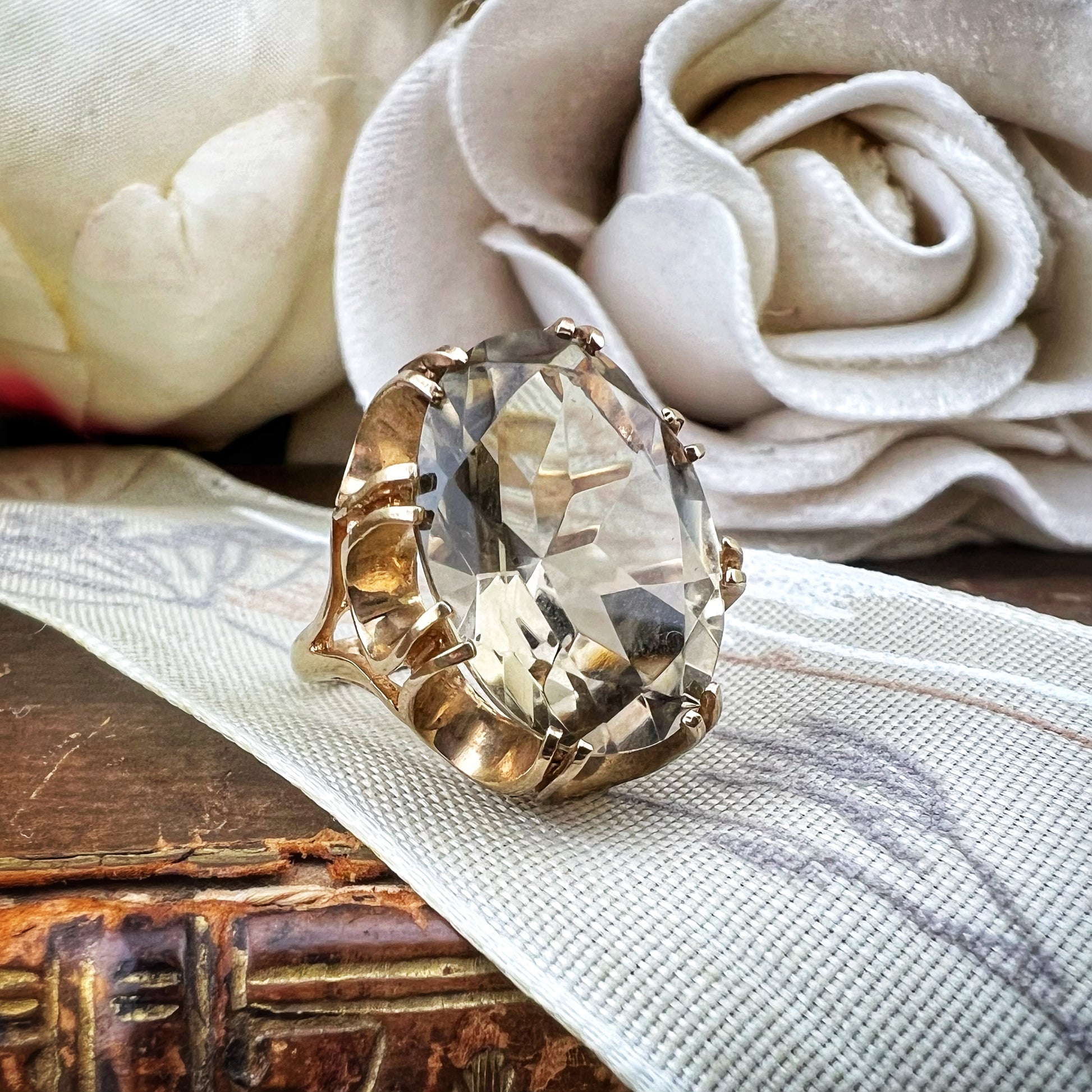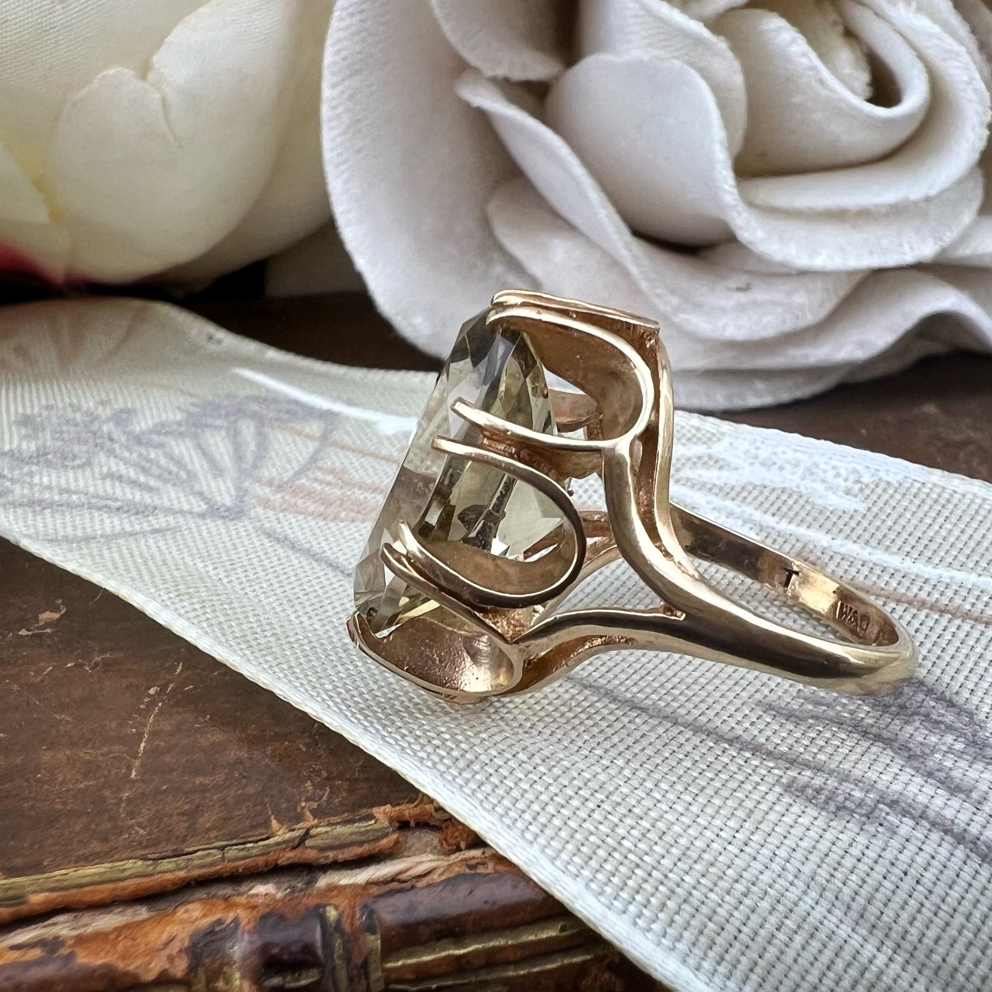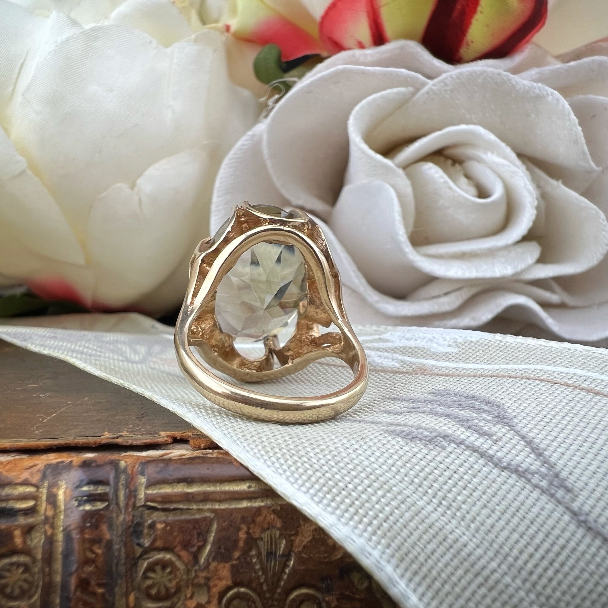 A vintage cocktail ring from Birmingham dating back to 1975, combining vintage elegance with timeless modernity.