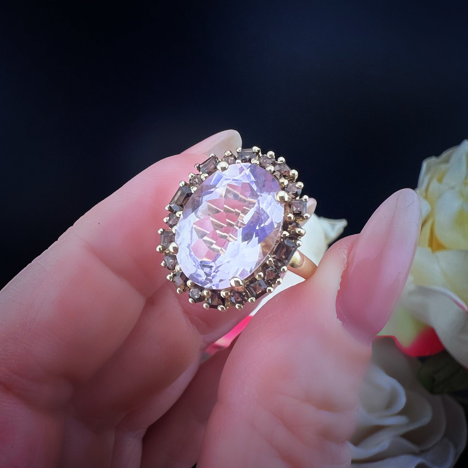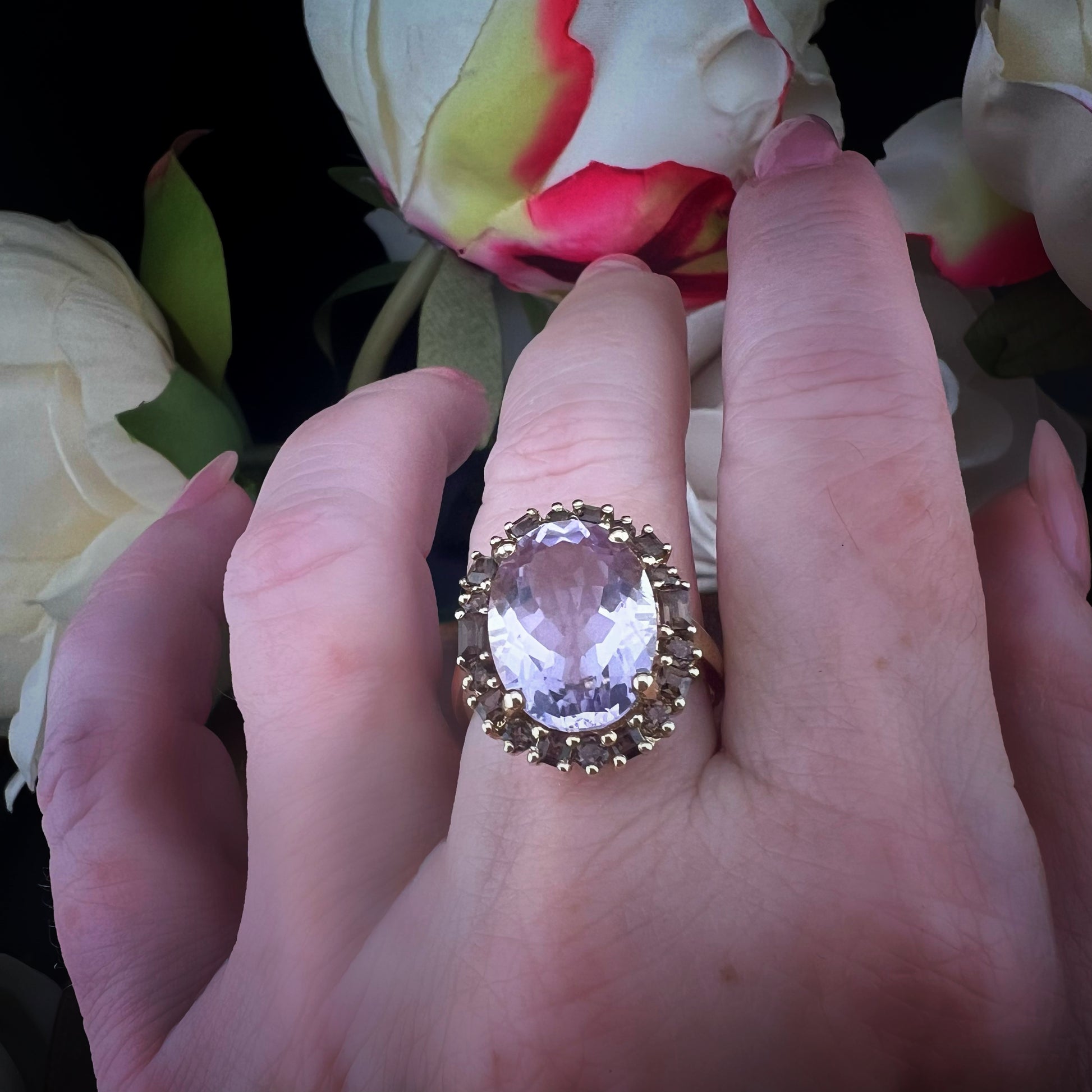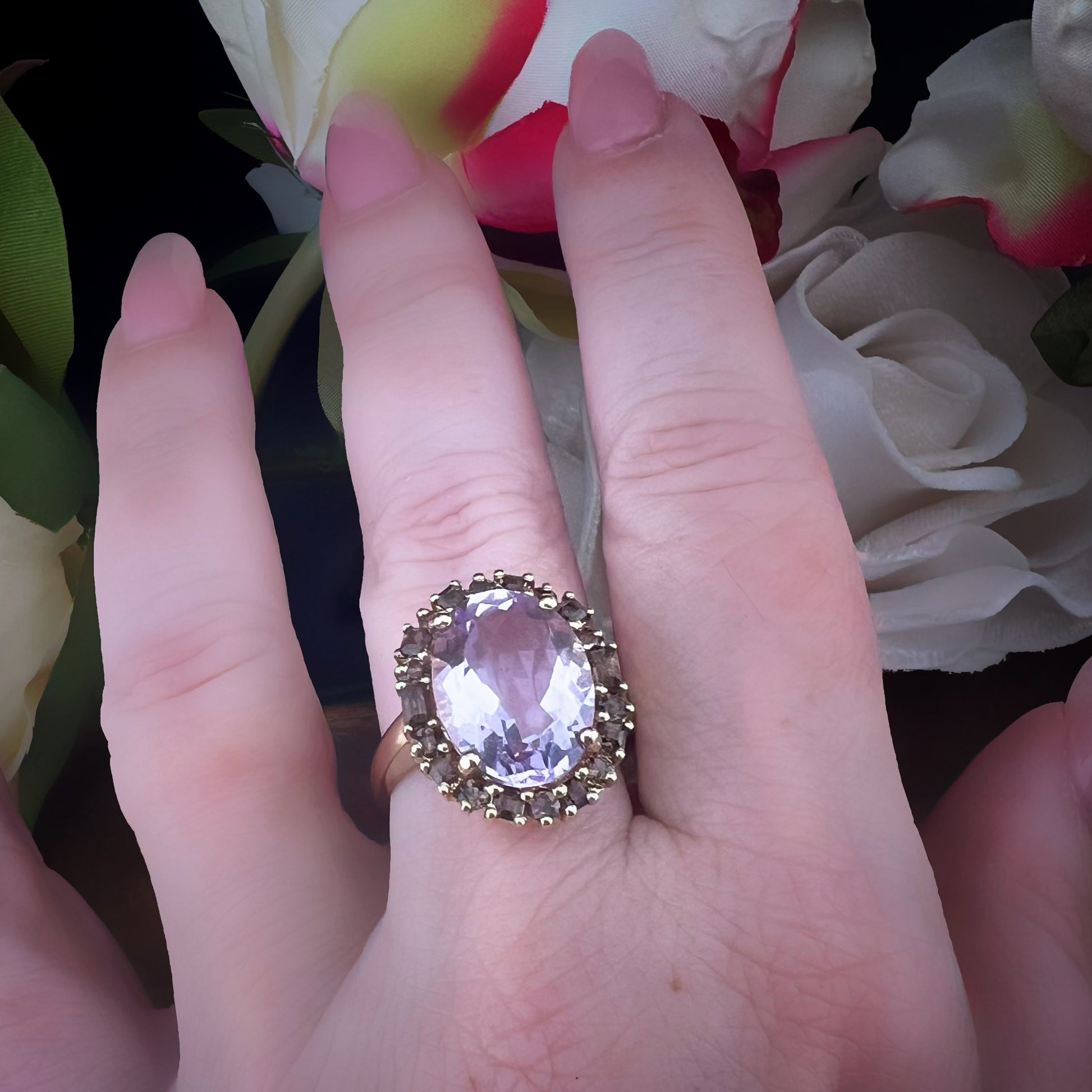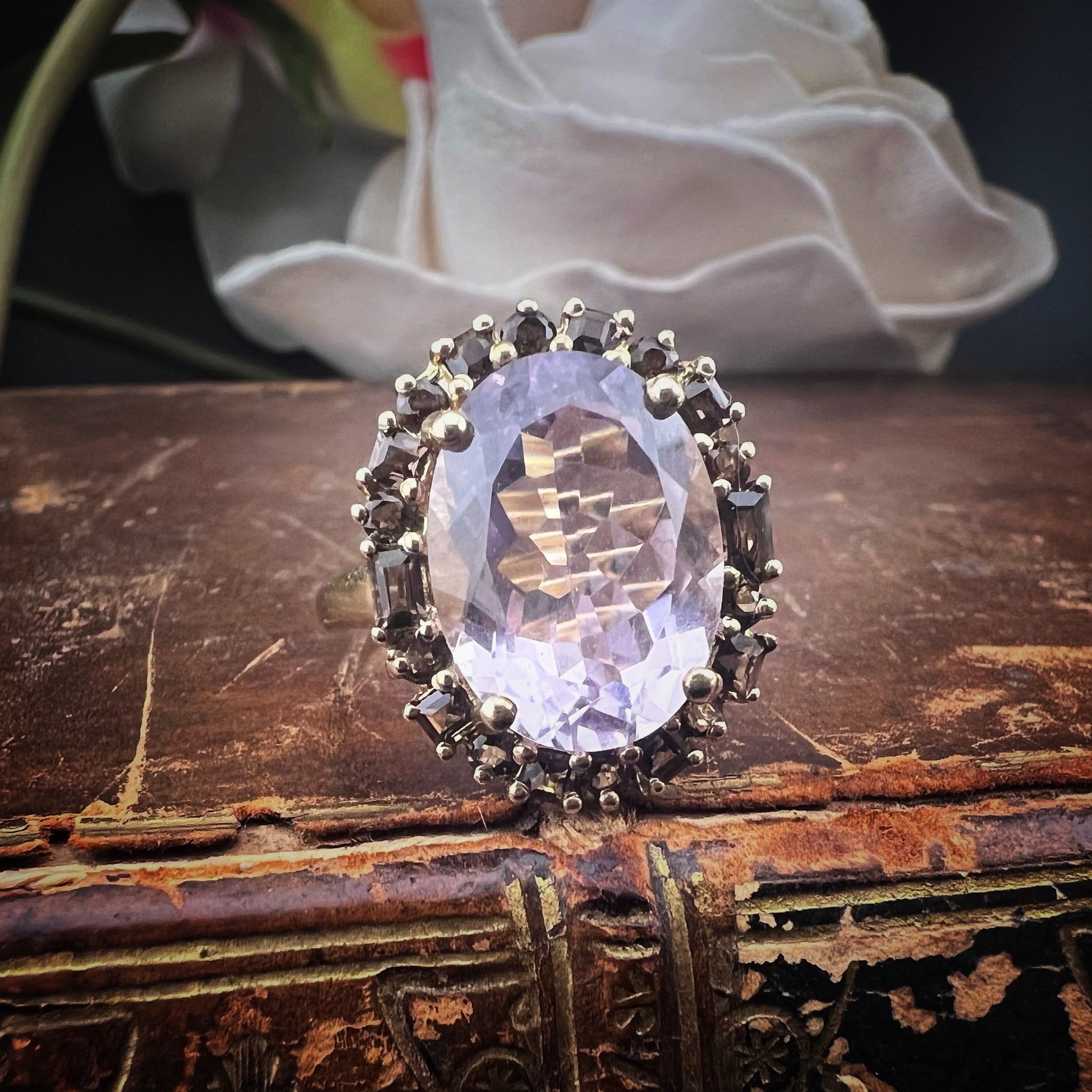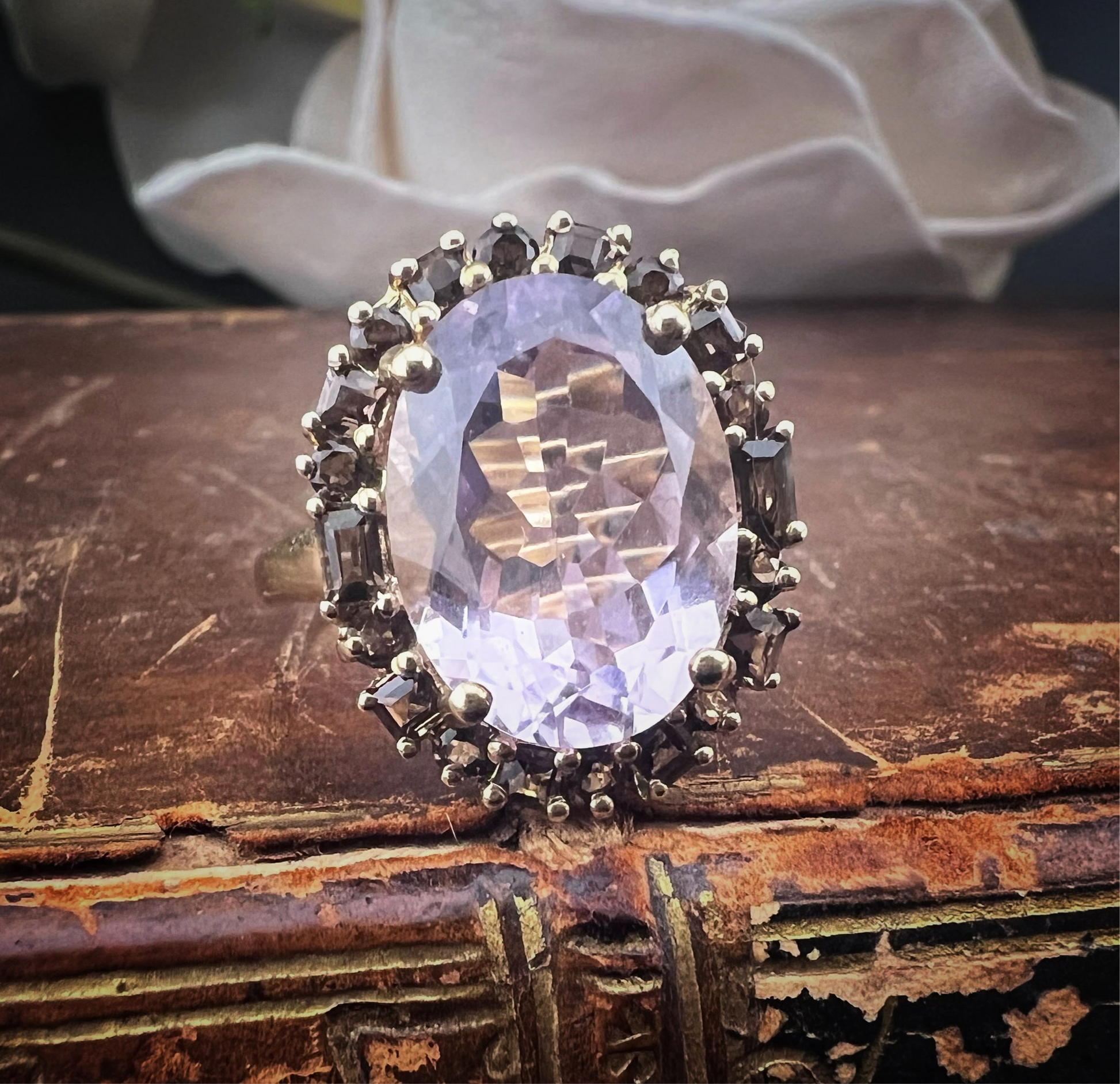 Vintage English Gold Cocktail Ring with Amethyst and Smoky Quartz