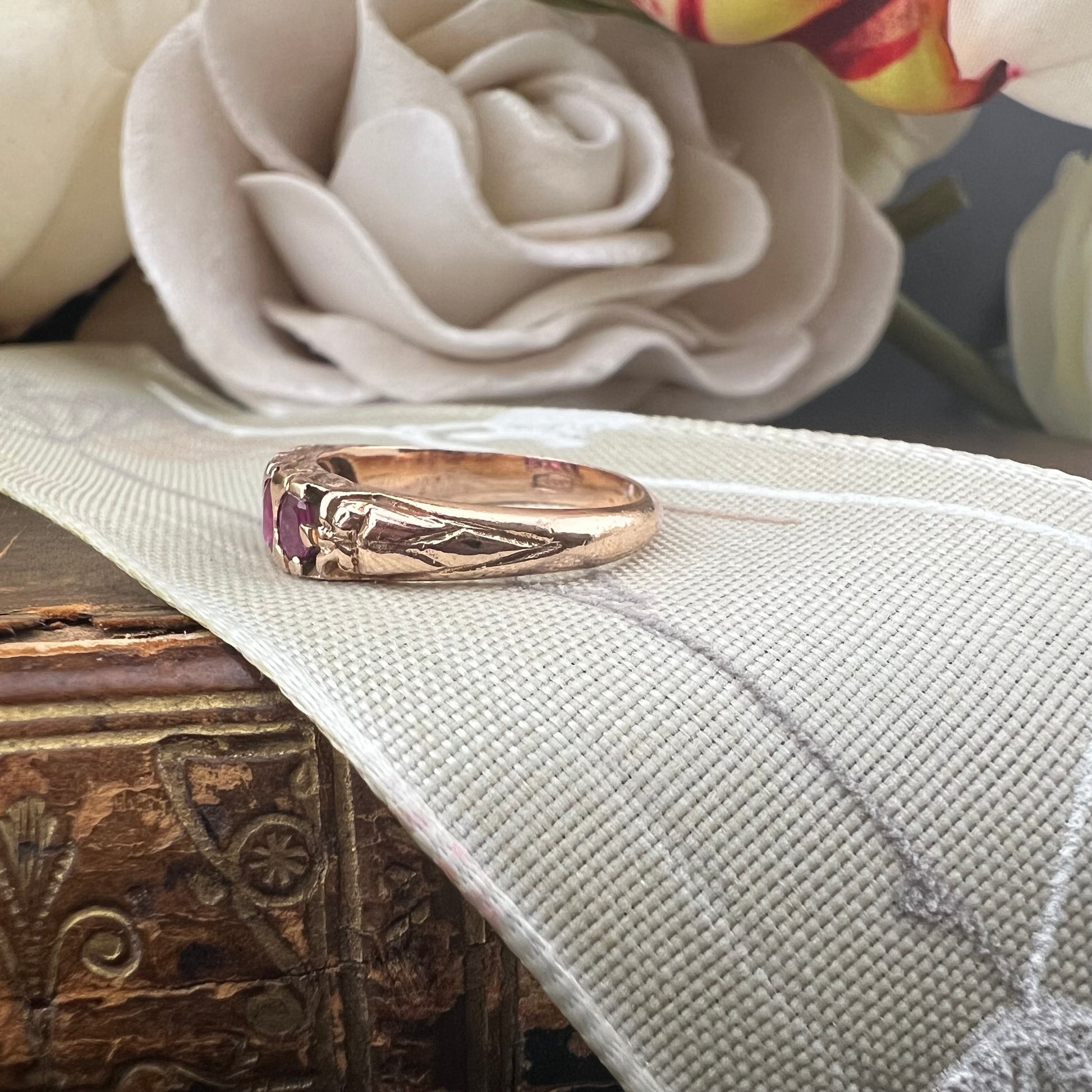 - Gems : 5 natural oval-cut rubies, approx. 3.4 x 3 mm each