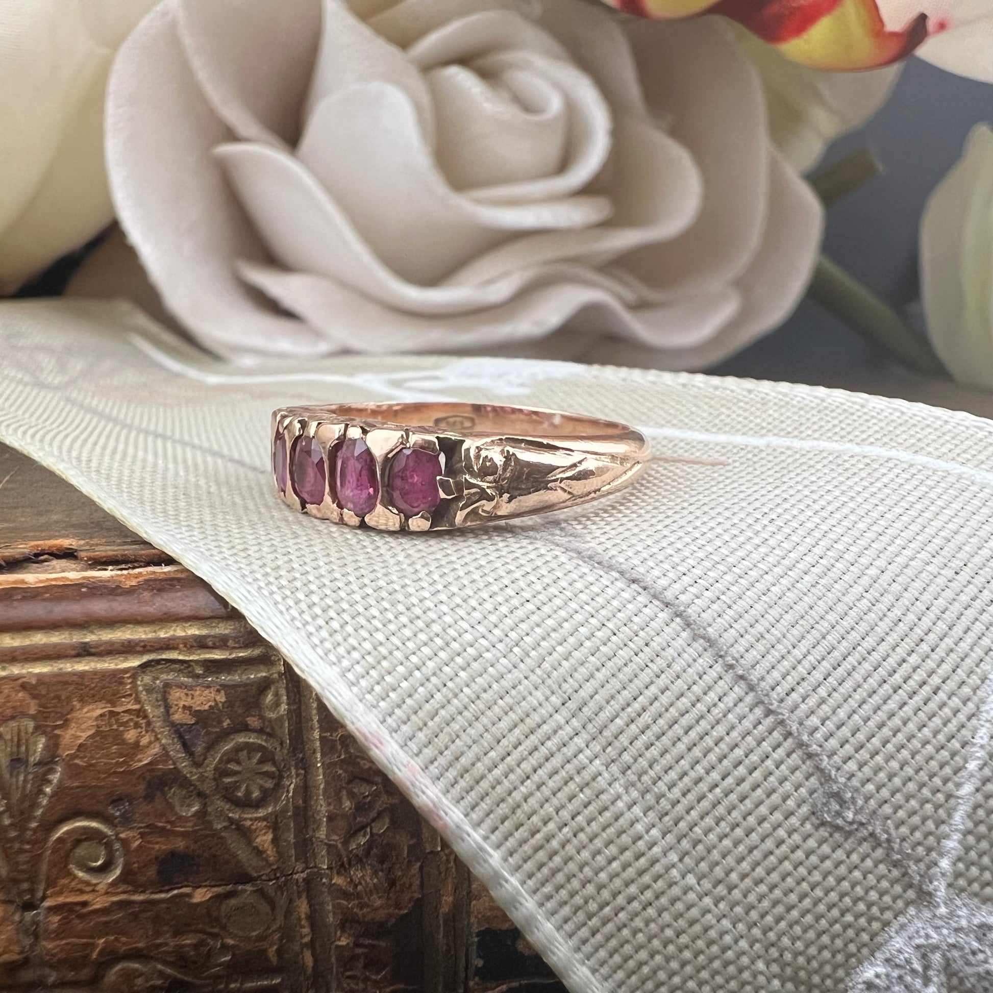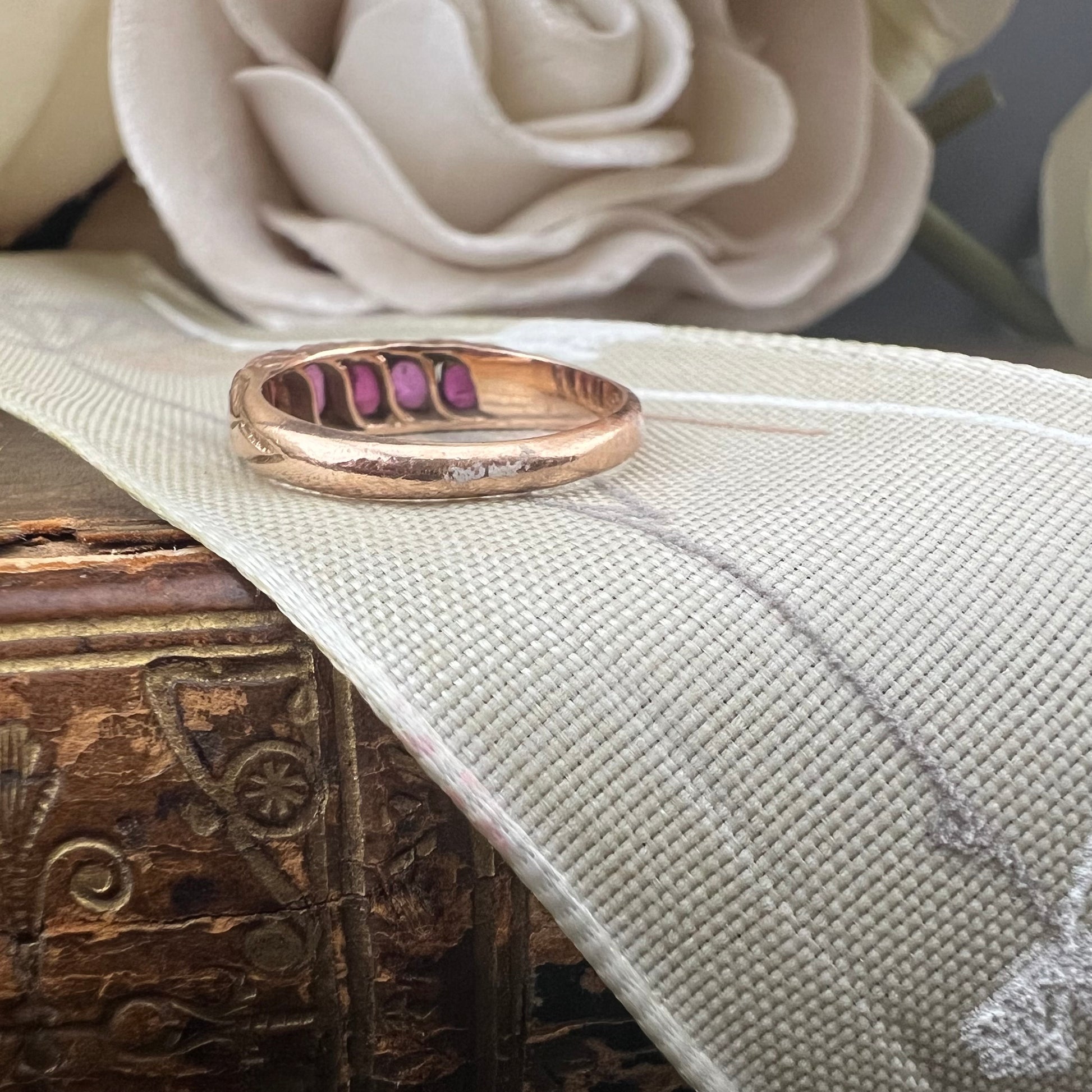 Gold wedding ring with 5 rubies