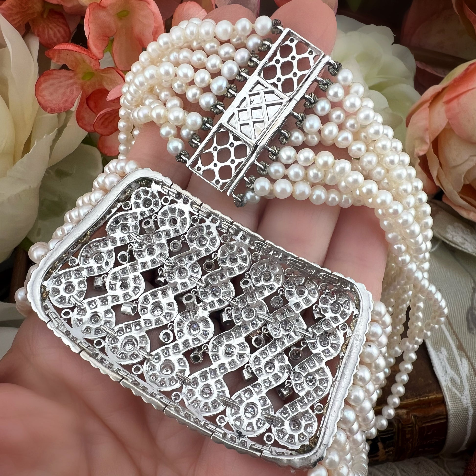 Importante collare con 7.95 ct di diamanti e 780 perle Akoya in oro 18k