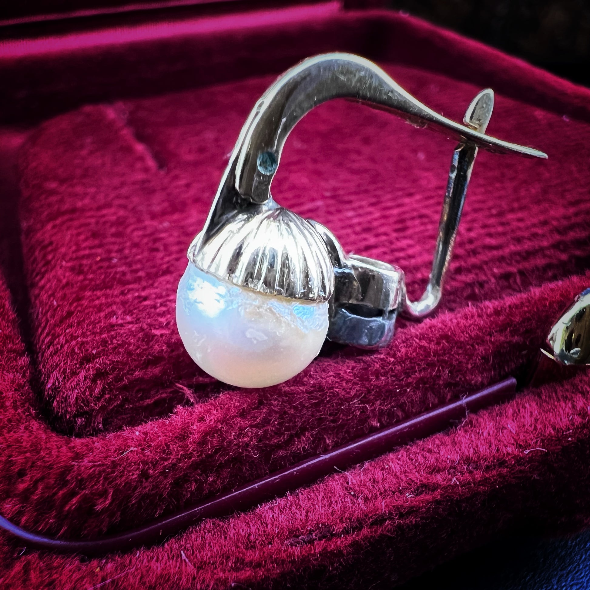 1950s earrings in 18k gold with natural pearls and rosette diamonds