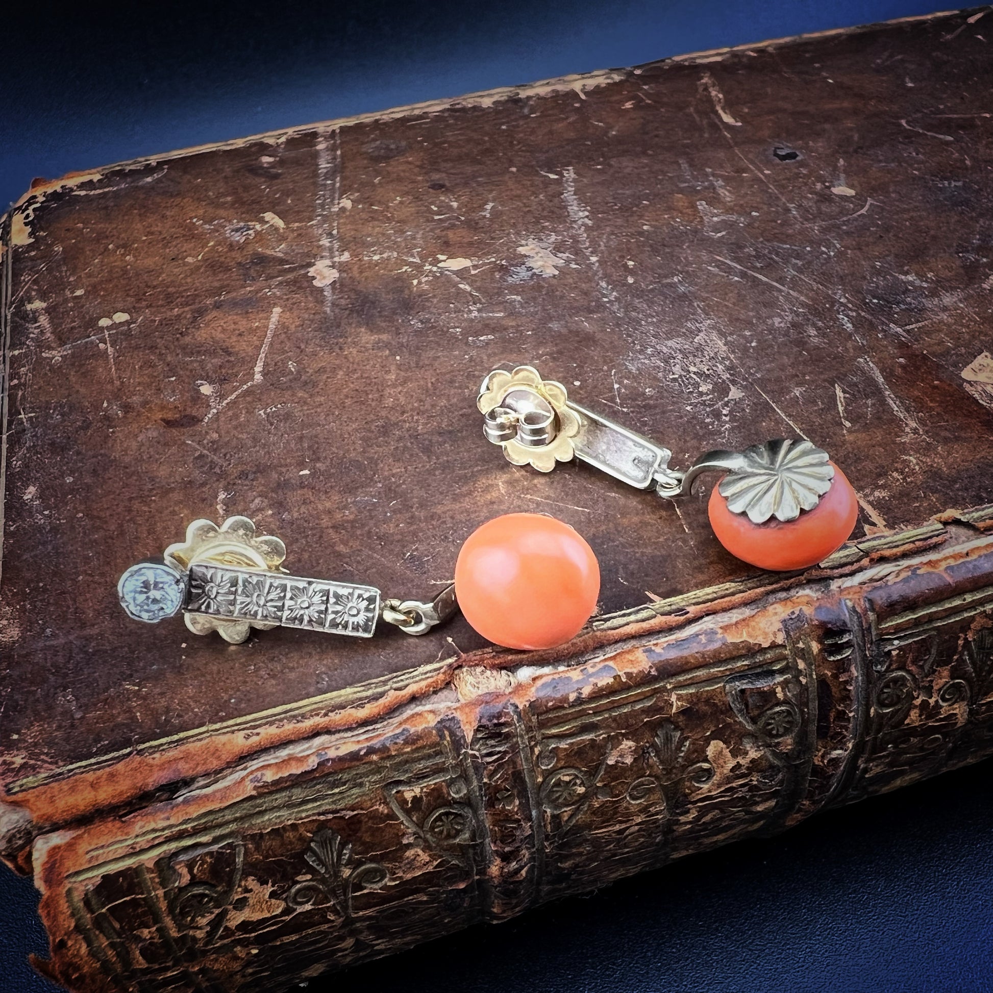 These earrings represent a perfect balance between classicism and originality, typical of 1930s design. The pairing of antique diamond and natural coral creates a refined and sophisticated contrast, perfect for those who love bold yet feminine jewelry. The swinging backing adds dynamism, highlighting the beauty of the coral with every movement.