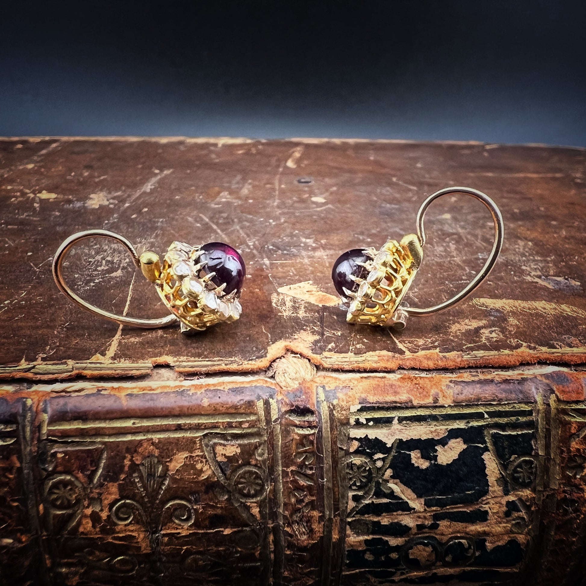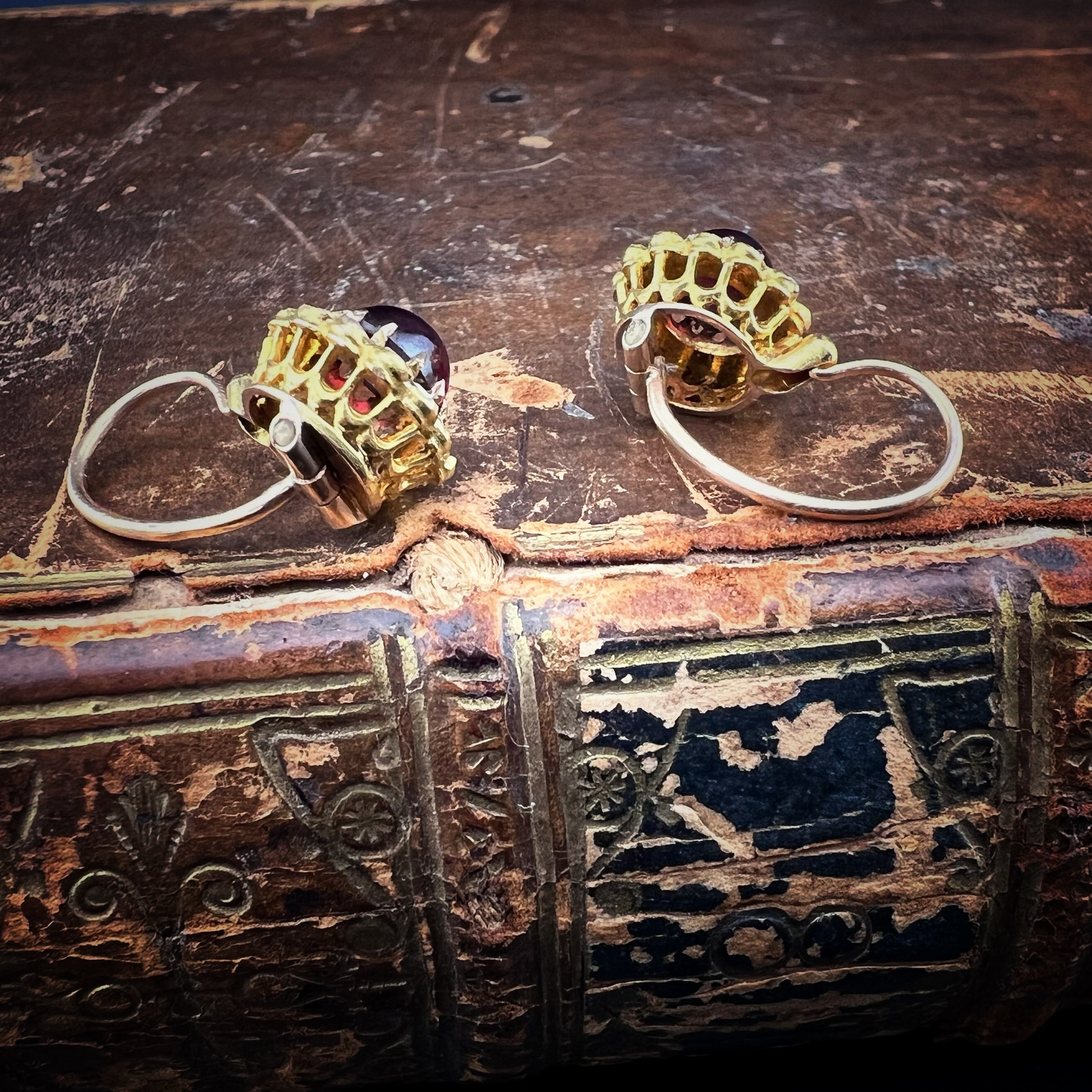 18K Gold Earrings with Cabochon Spinels and Diamonds – Late 19th/Early 20th Century