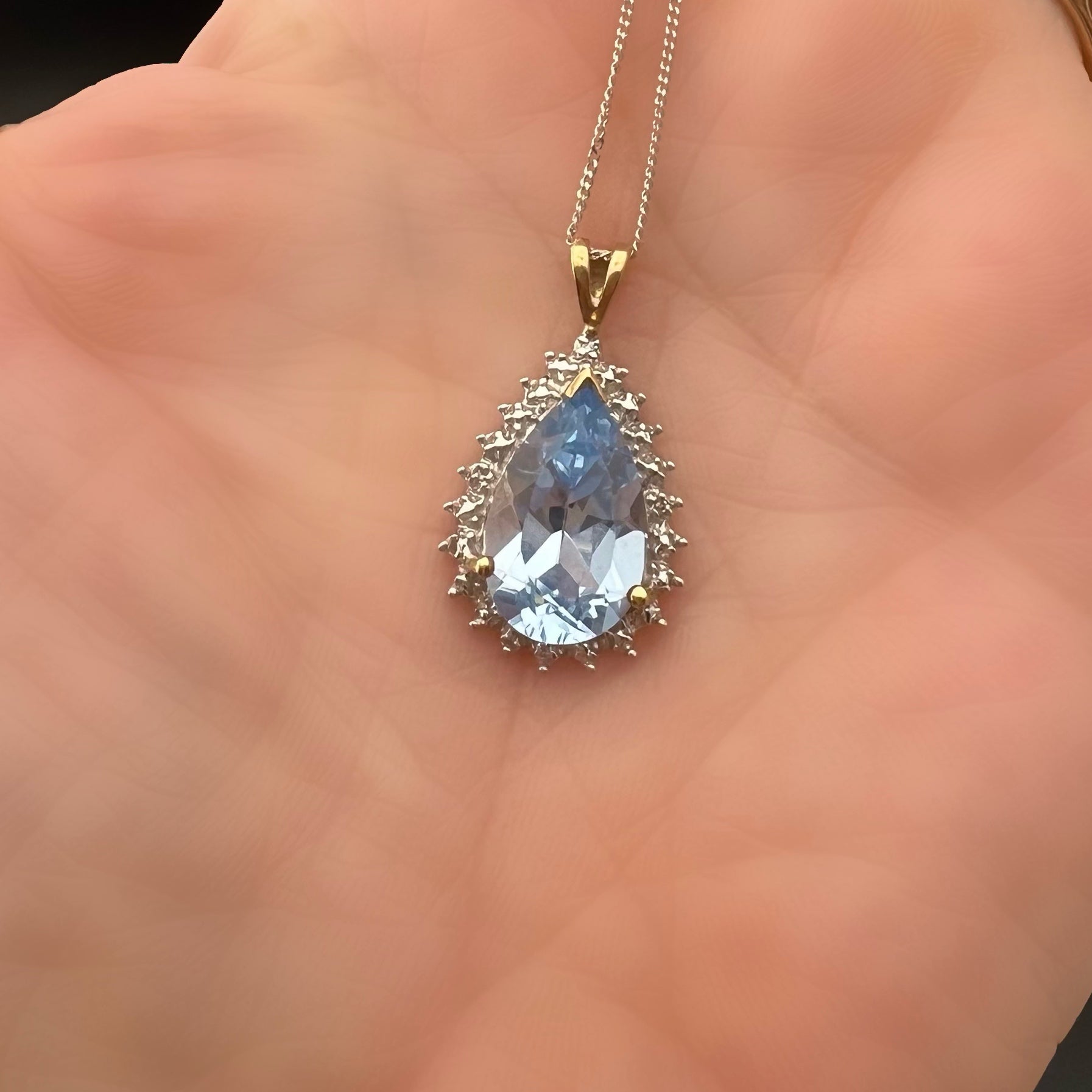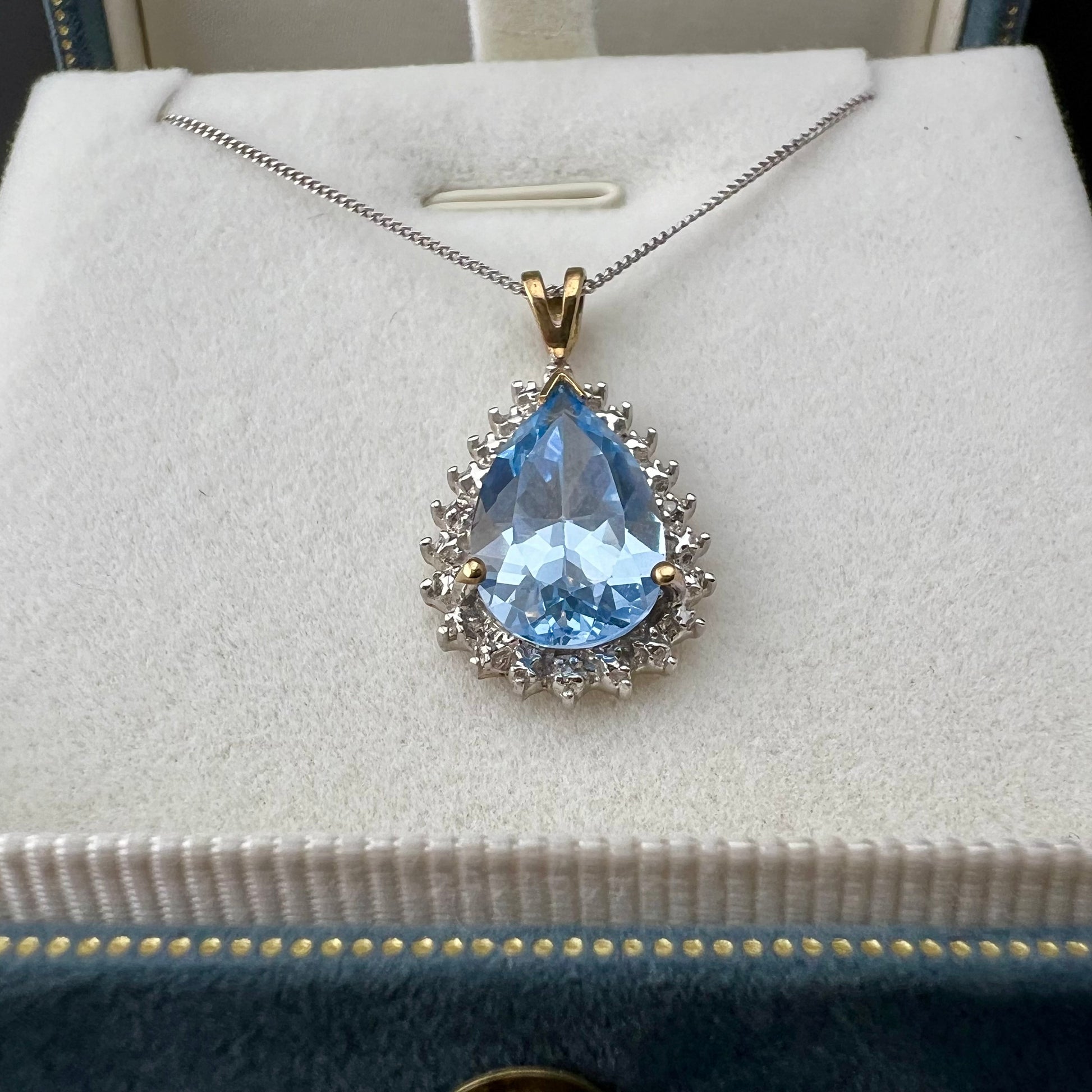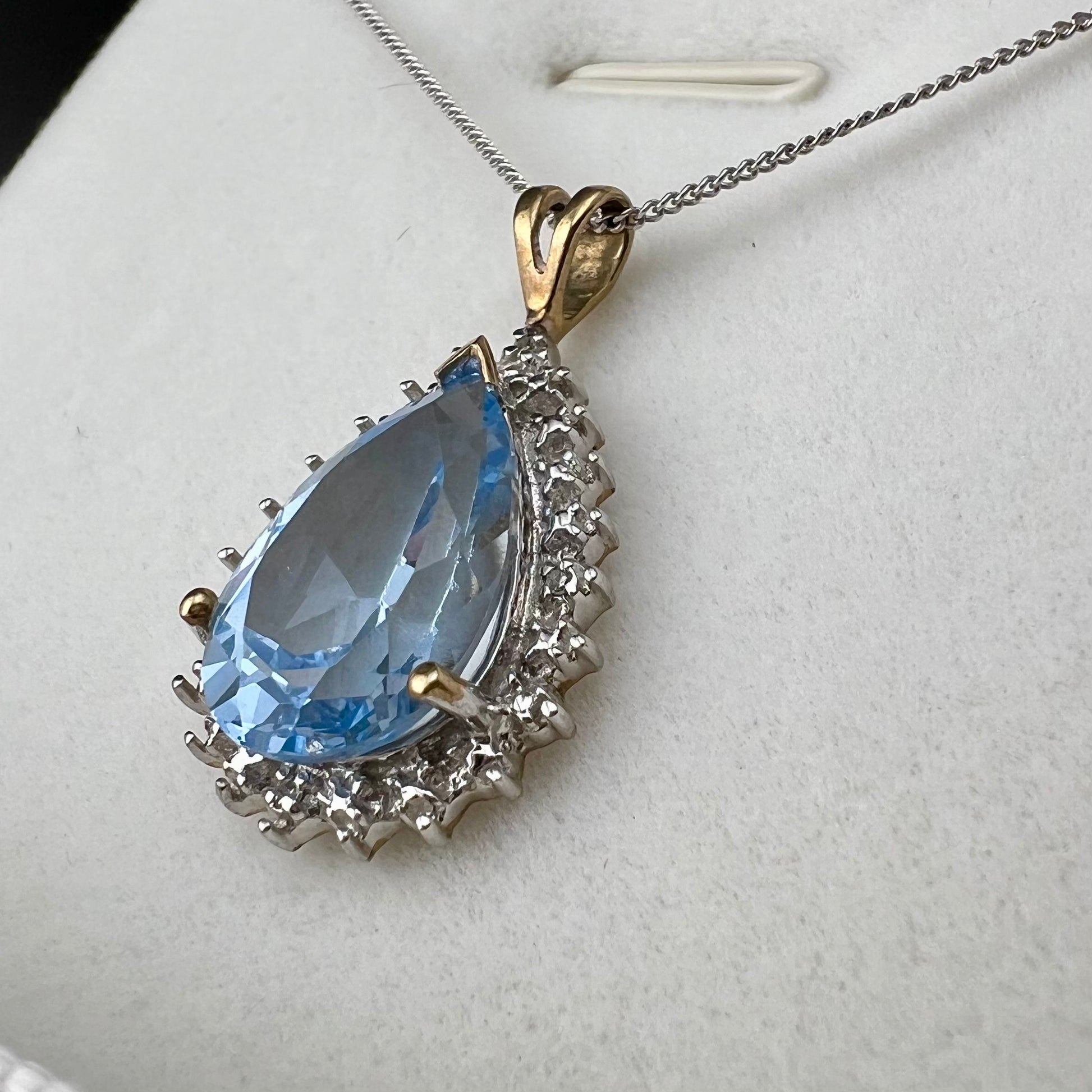 Blue topaz drop pendant with 4 small diamonds, 9ct gold