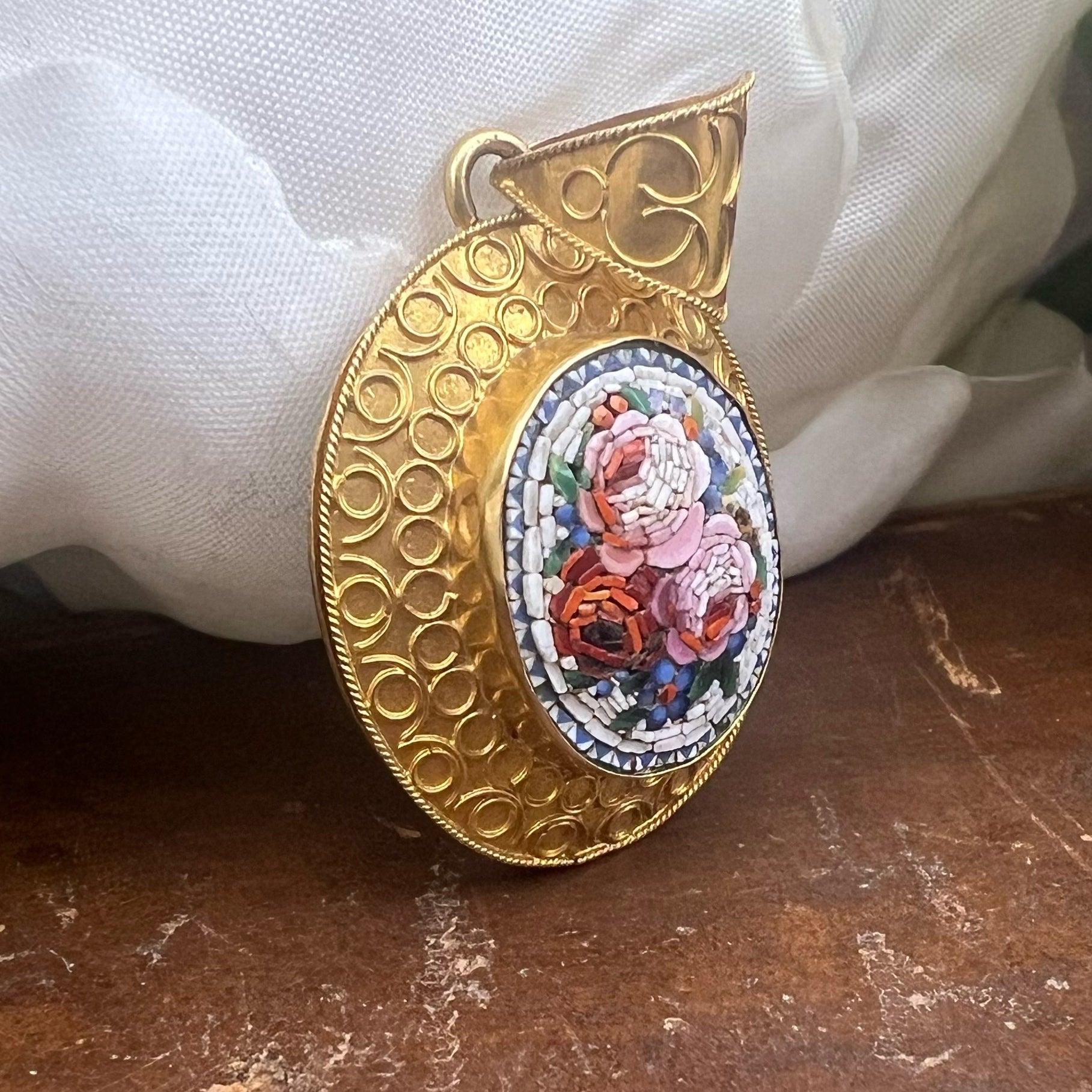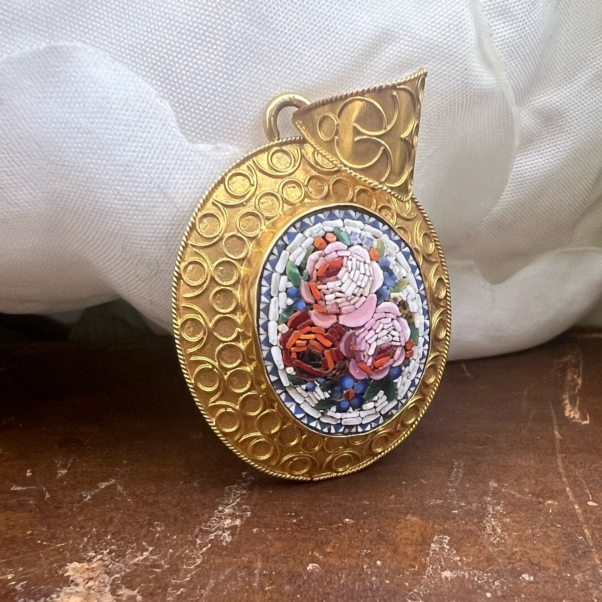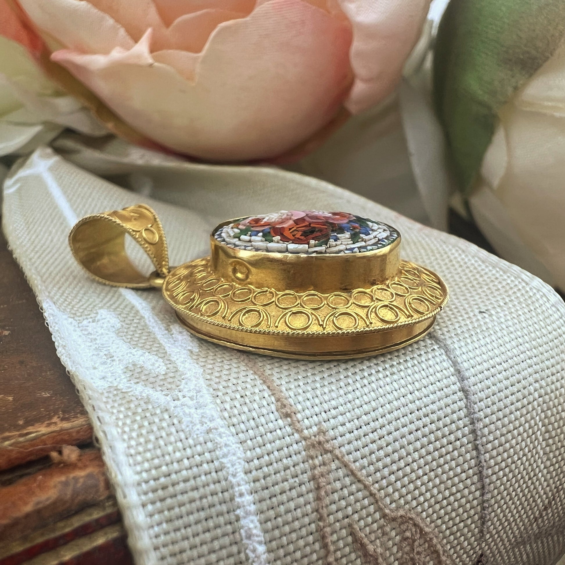 Pendente porta ritratti in oro e Micromosaico - Venezia ‘800