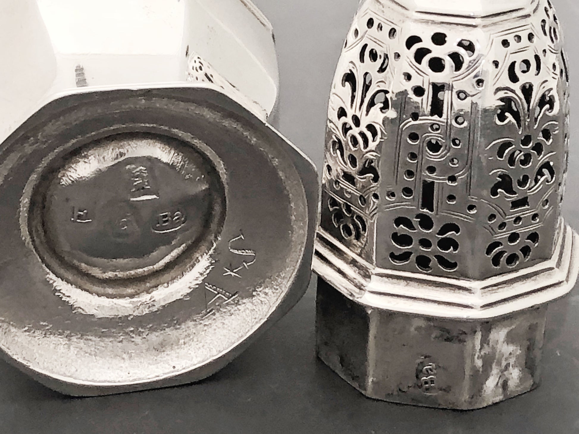 This sugar shaker bears the marks of Thomas Bamford, of the City of London in the year 1720 as well as the standard Britannia title hallmark.
