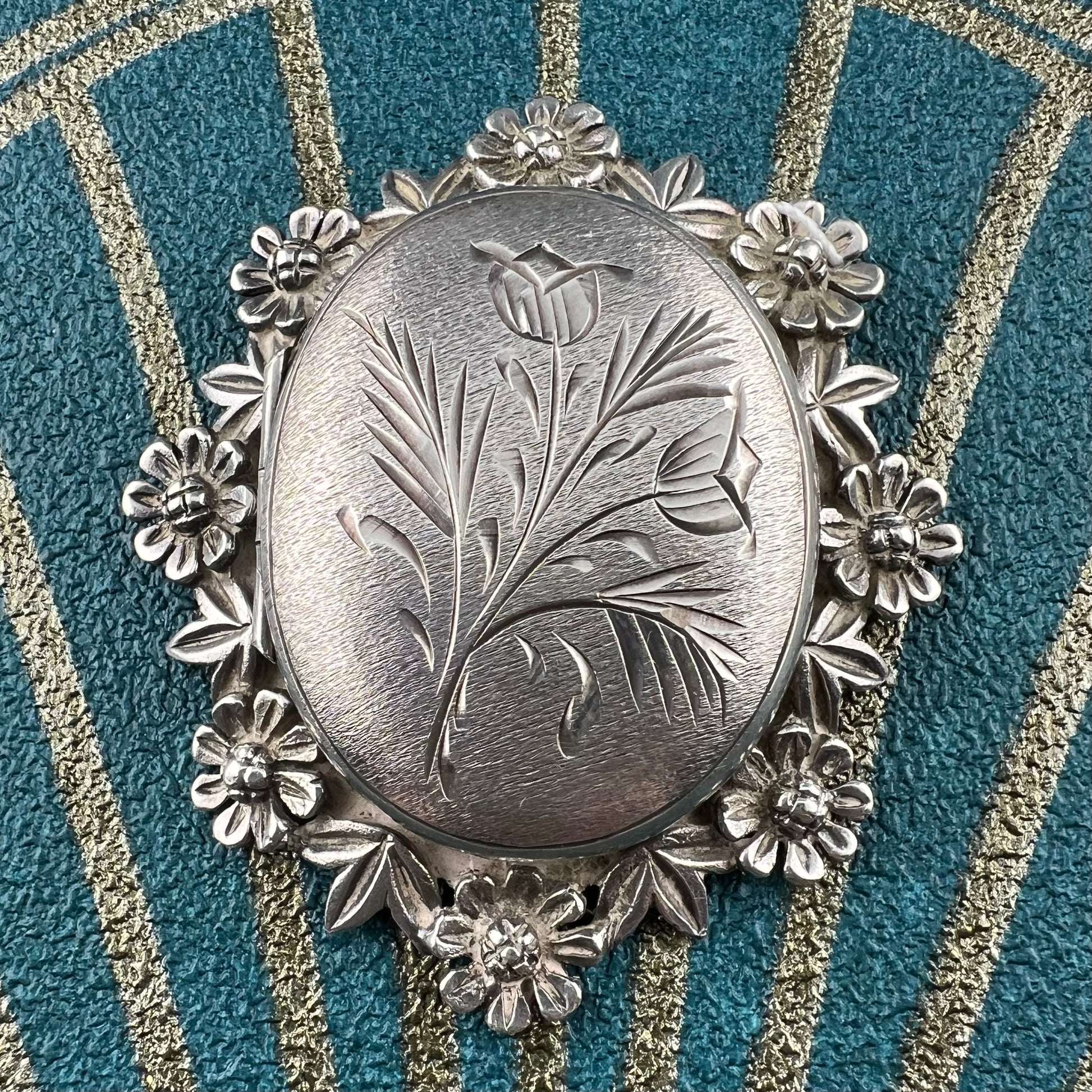 Important silver locket with rare dimensions and hand engraved on the front. The closure is pressure-fit and works perfectly.