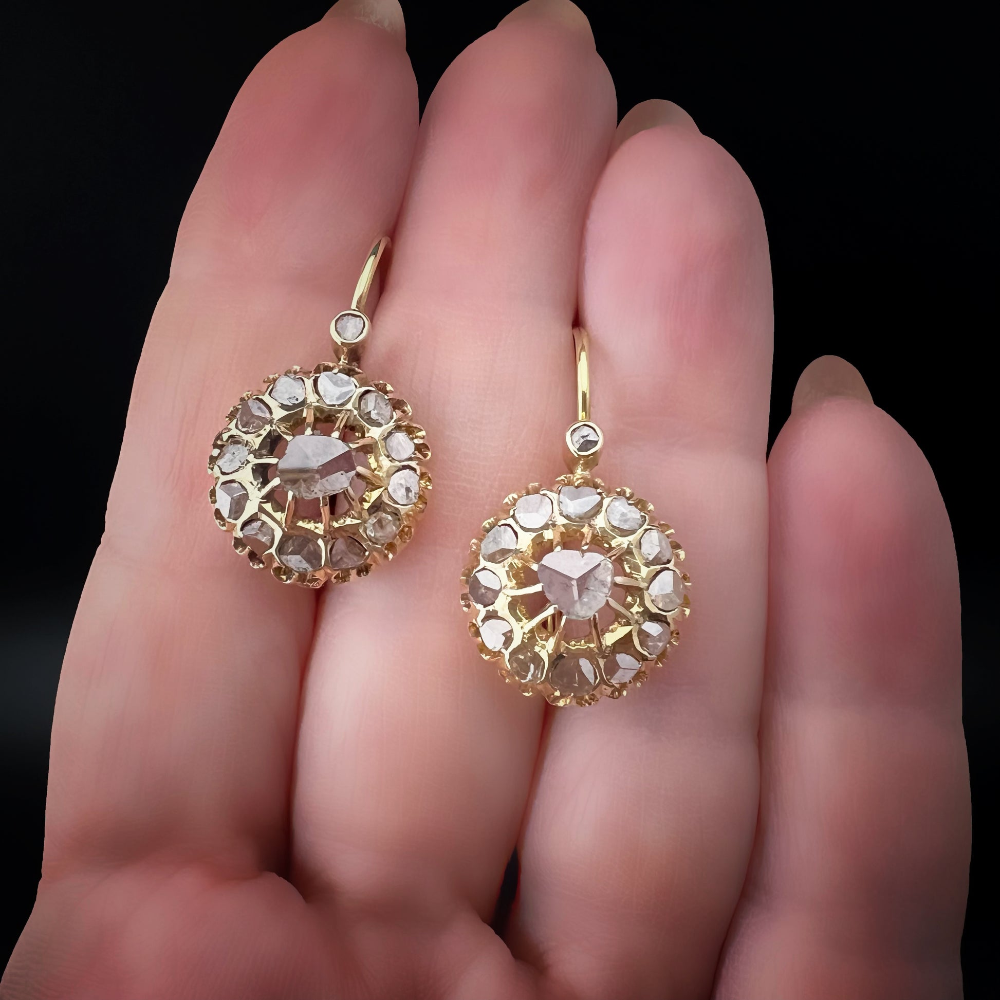 These antique earrings embody the poetry of a distant time, the charm and delicacy of an era when every jewel was designed to tell a story.