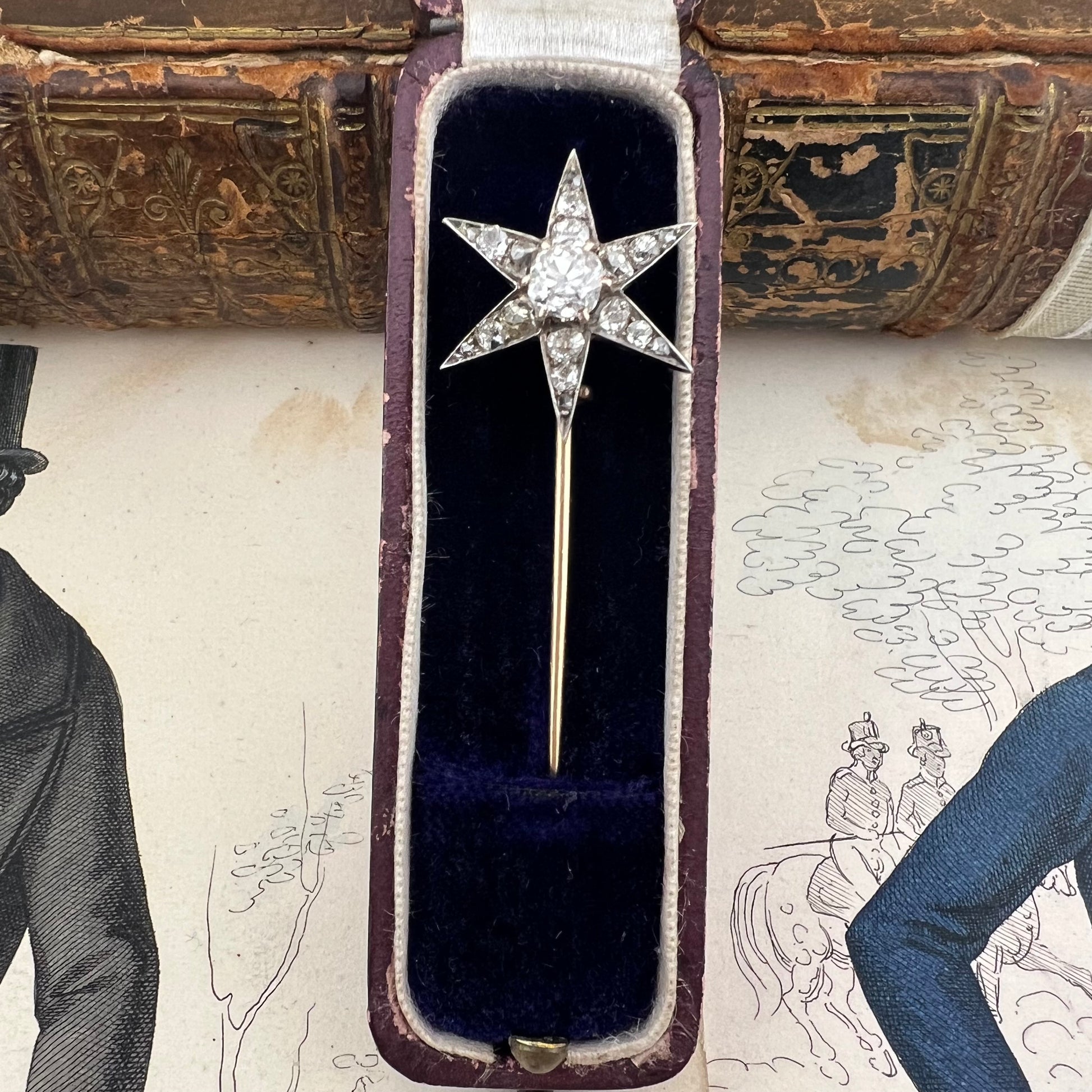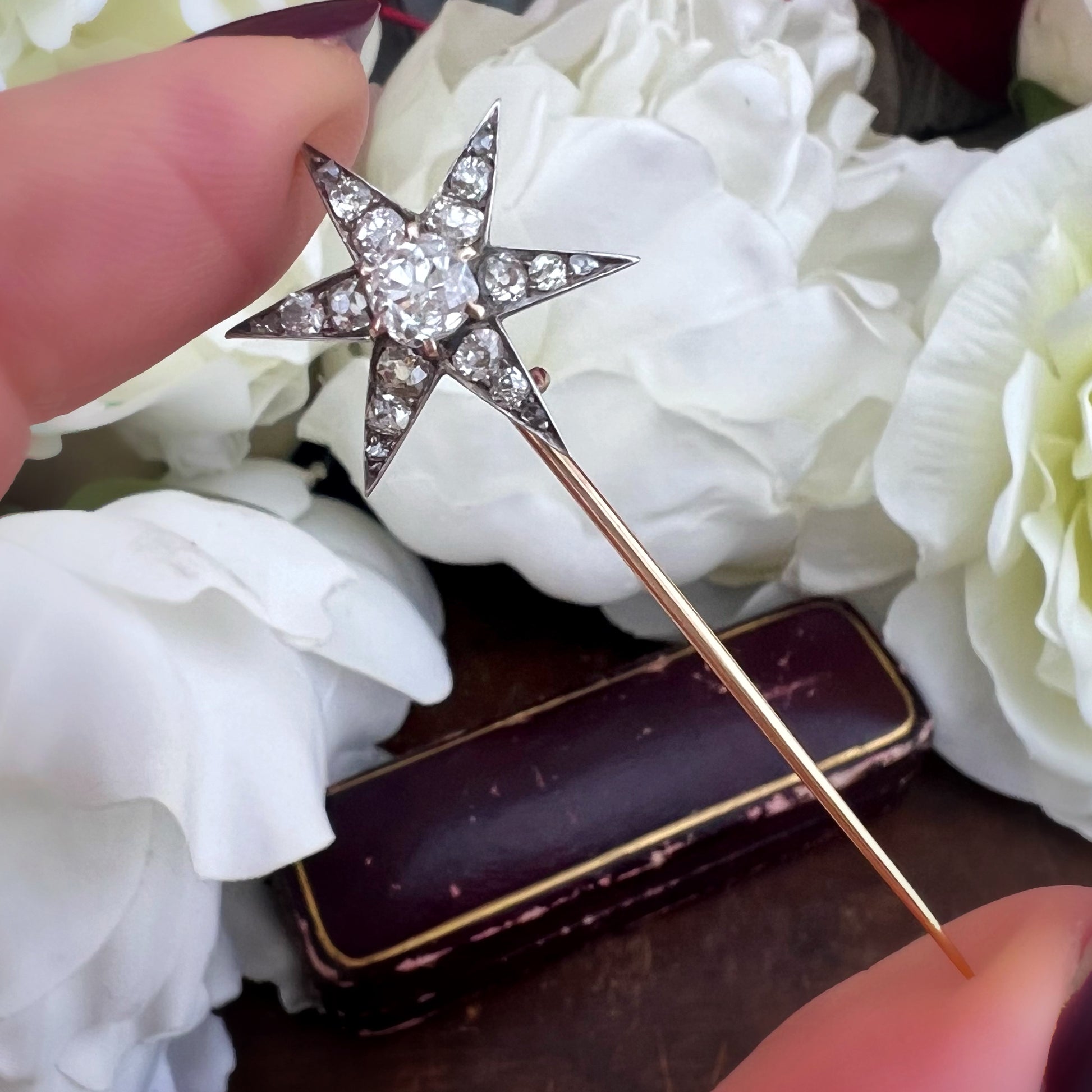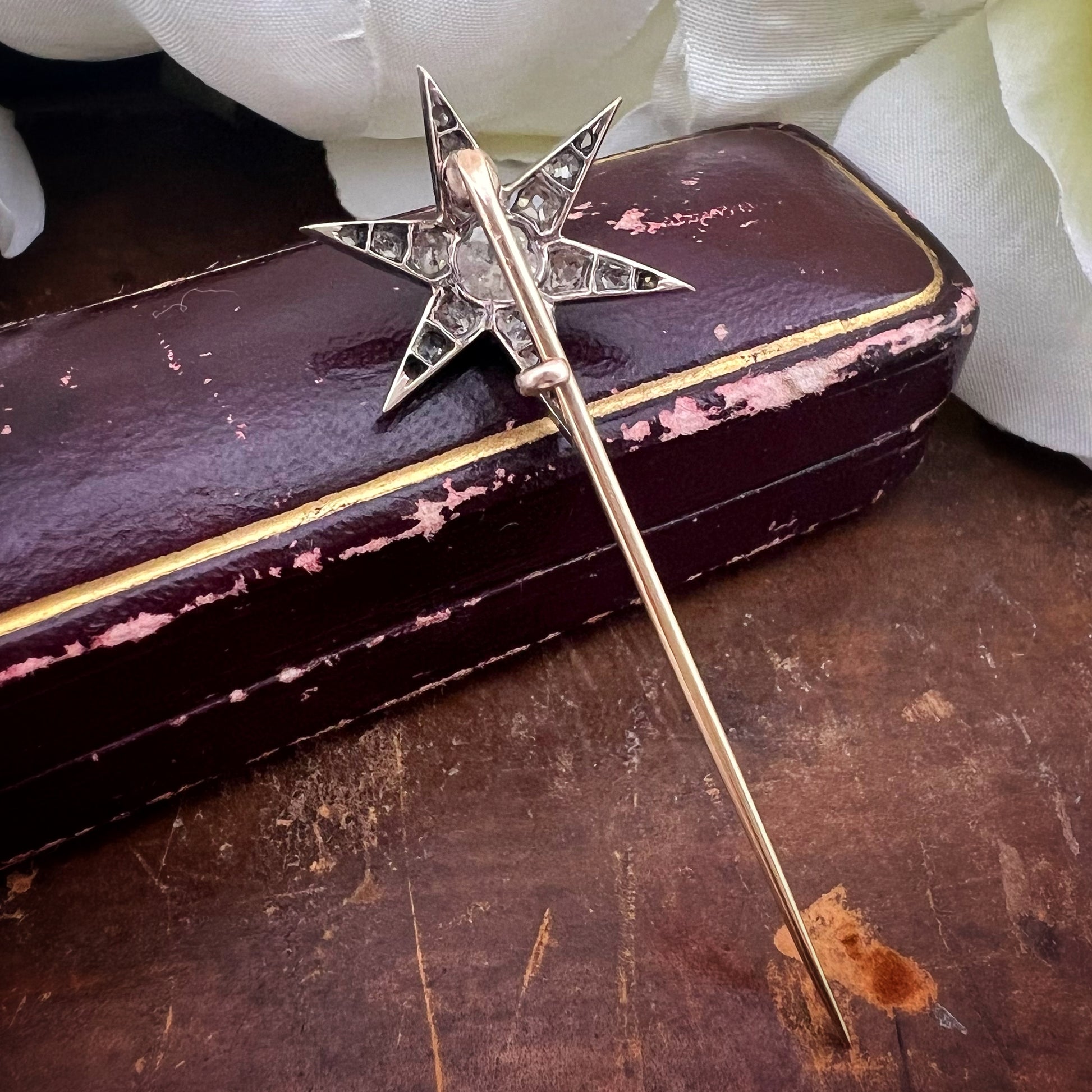 Gli spilloni con stella venivano indossati su abiti da giorno eleganti, cappotti, colletti o scialli, e talvolta donati come gioielli simbolici. L’uso del diamante taglio old mine e dei tagli rosetta riflette una lavorazione ancora interamente manuale, precedente alla standardizzazione industriale del taglio brillante moderno.
