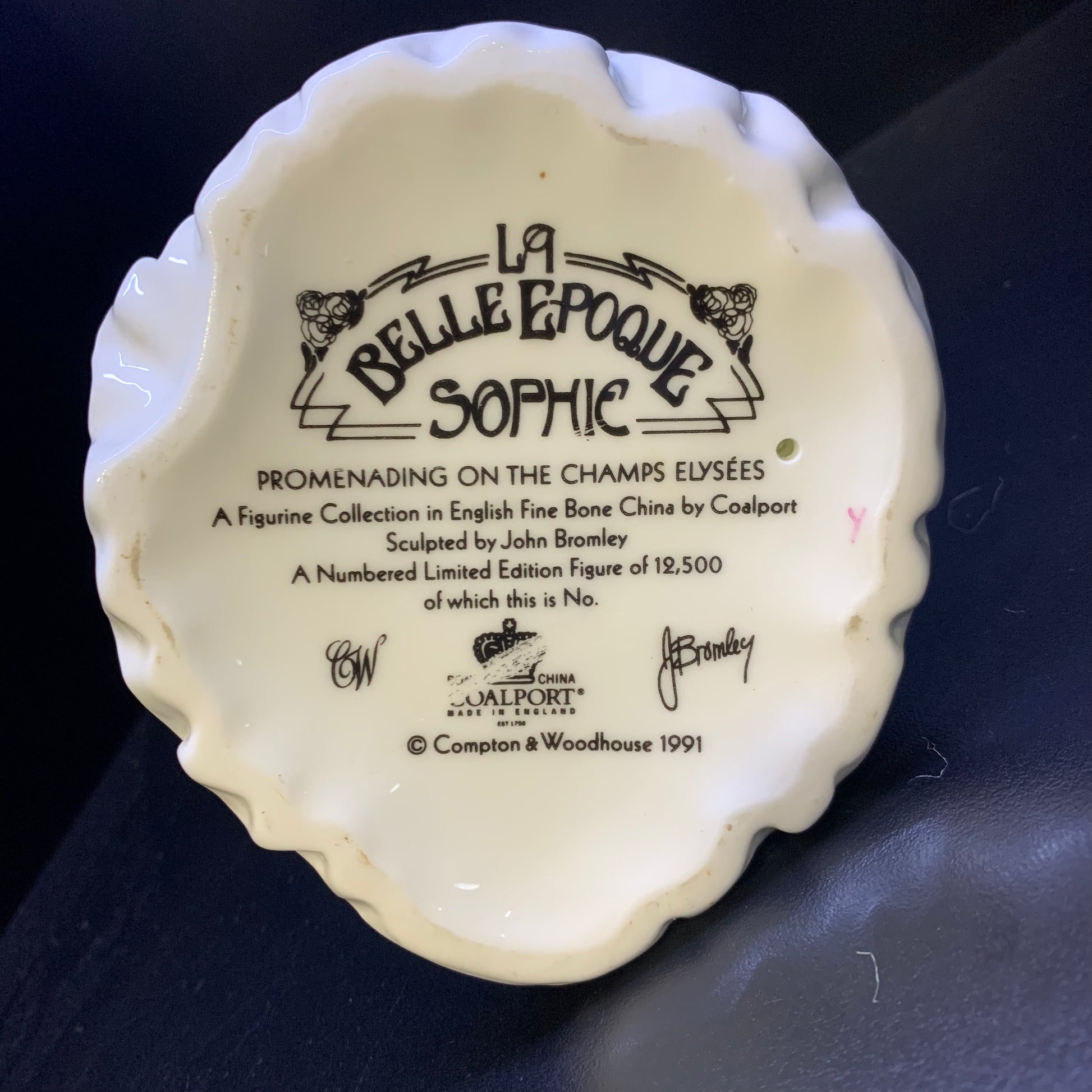 The vintage Coalport figurine, “La Belle Époque Sophie” series is a fine porcelain work of art made by the historic English manufacturer famous for its delicate and detailed porcelain figurines.