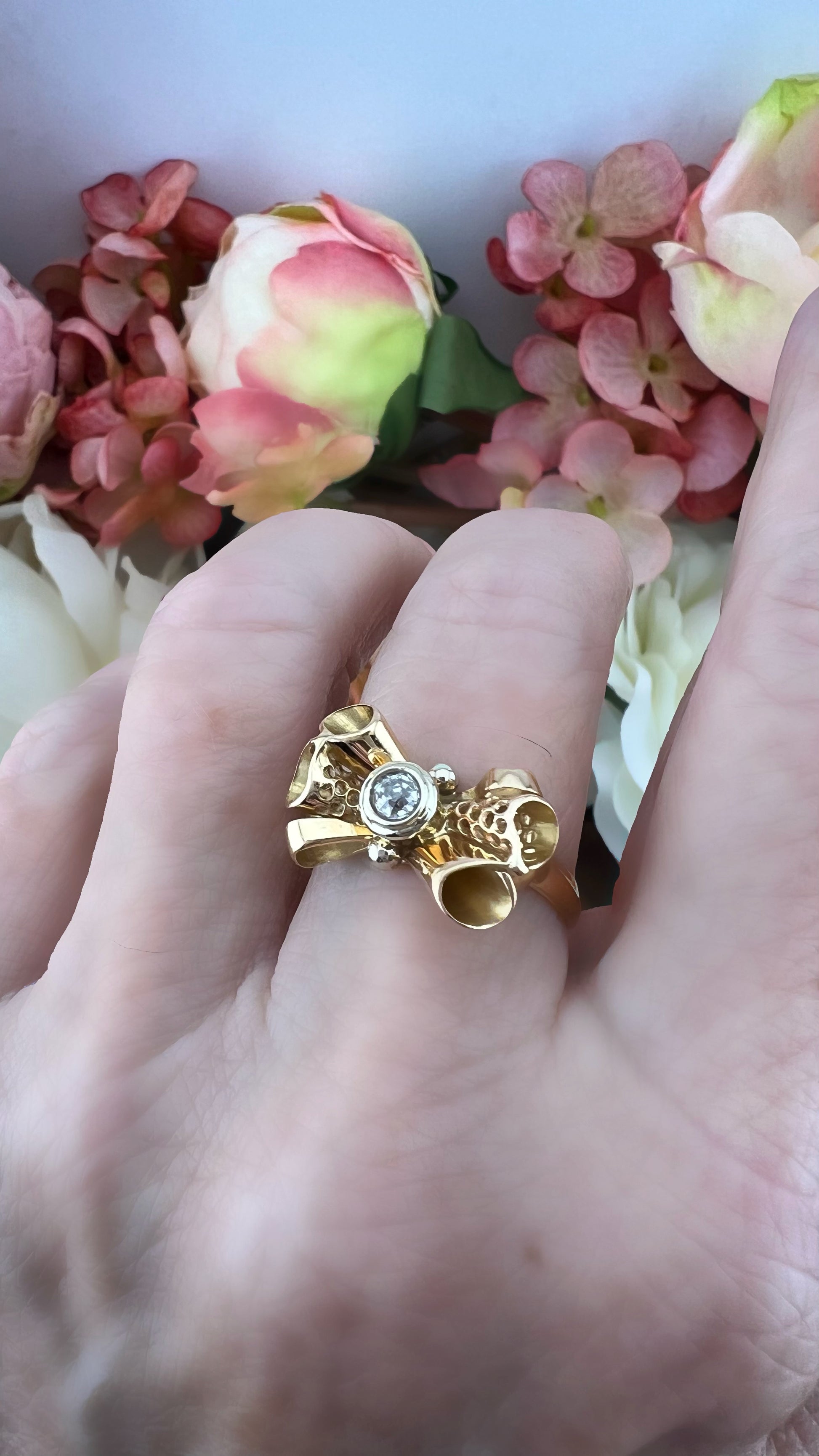 Anello a fiocco pre 1934 in oro 18k e diamante Old Mine