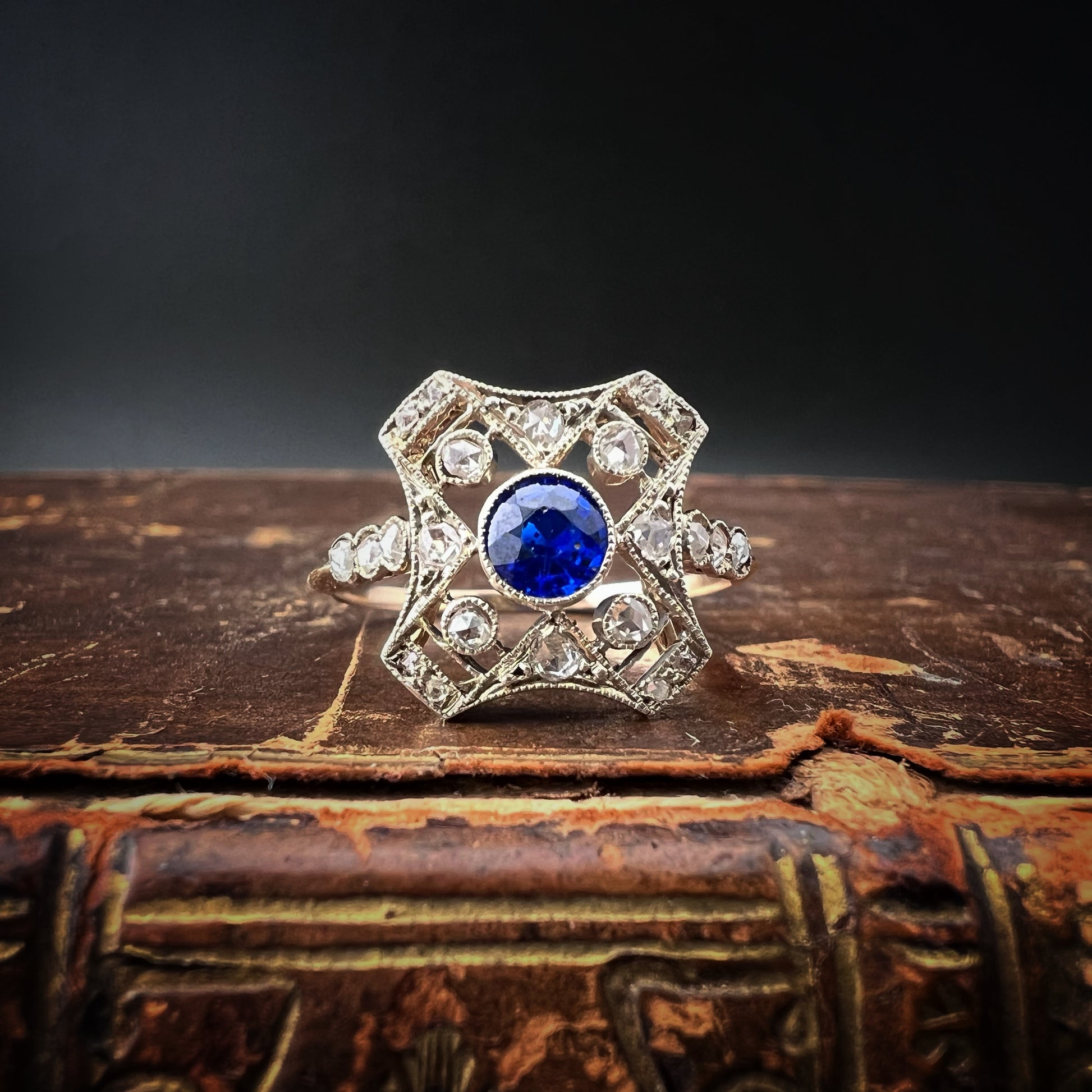 Lo zaffiro sintetico iniziò a diffondersi all’inizio del XX secolo grazie alla tecnica di fusione a fiamma, sviluppata da Auguste Verneuil. Questo processo consentiva di ottenere pietre dall’aspetto molto simile agli zaffiri naturali. Gli zaffiri sintetici erano molto apprezzati nella gioielleria degli anni ‘20 per la loro vivacità cromatica e durevolezza, caratteristiche che ritroviamo anche in questo pezzo, che conserva intatto il fascino dell’epoca.