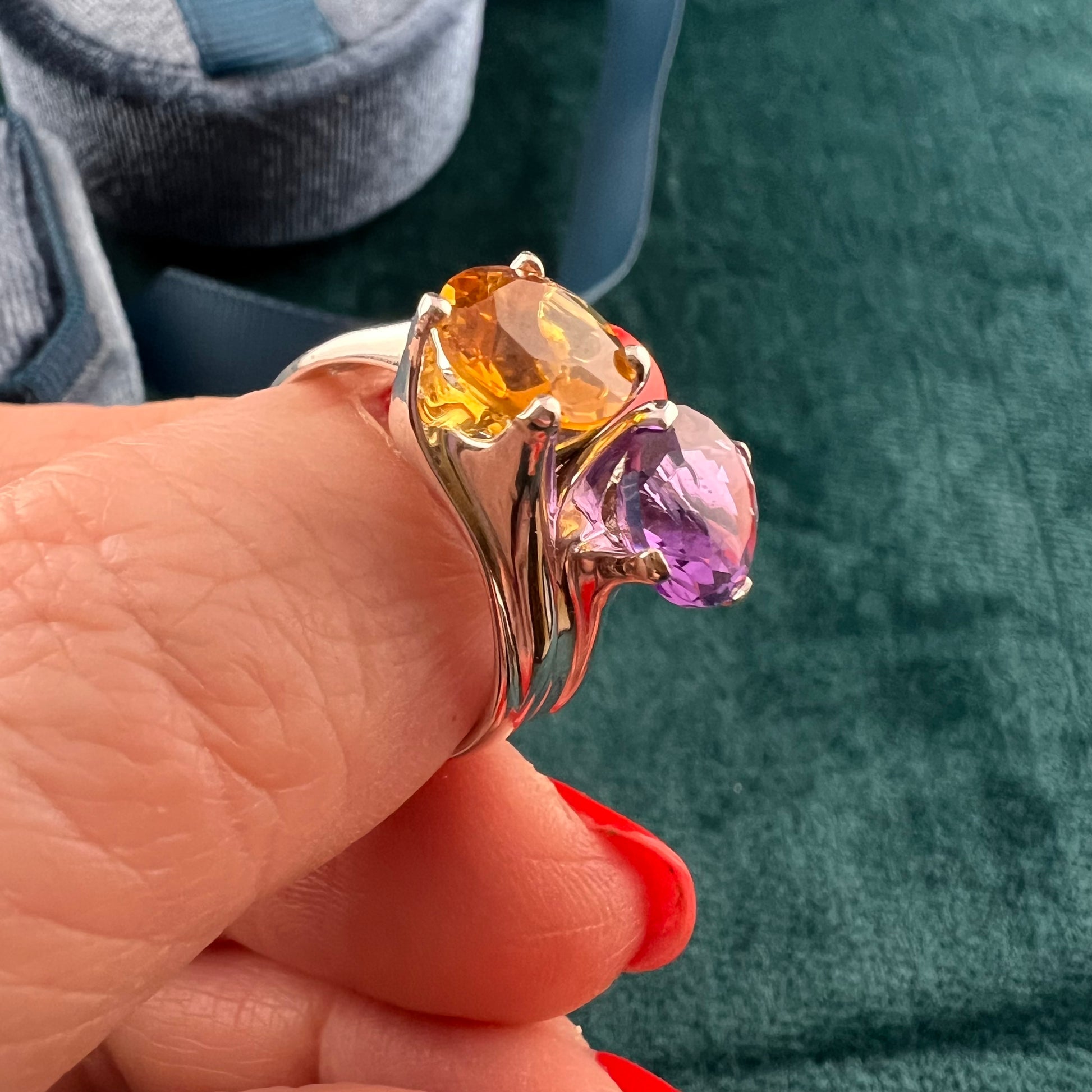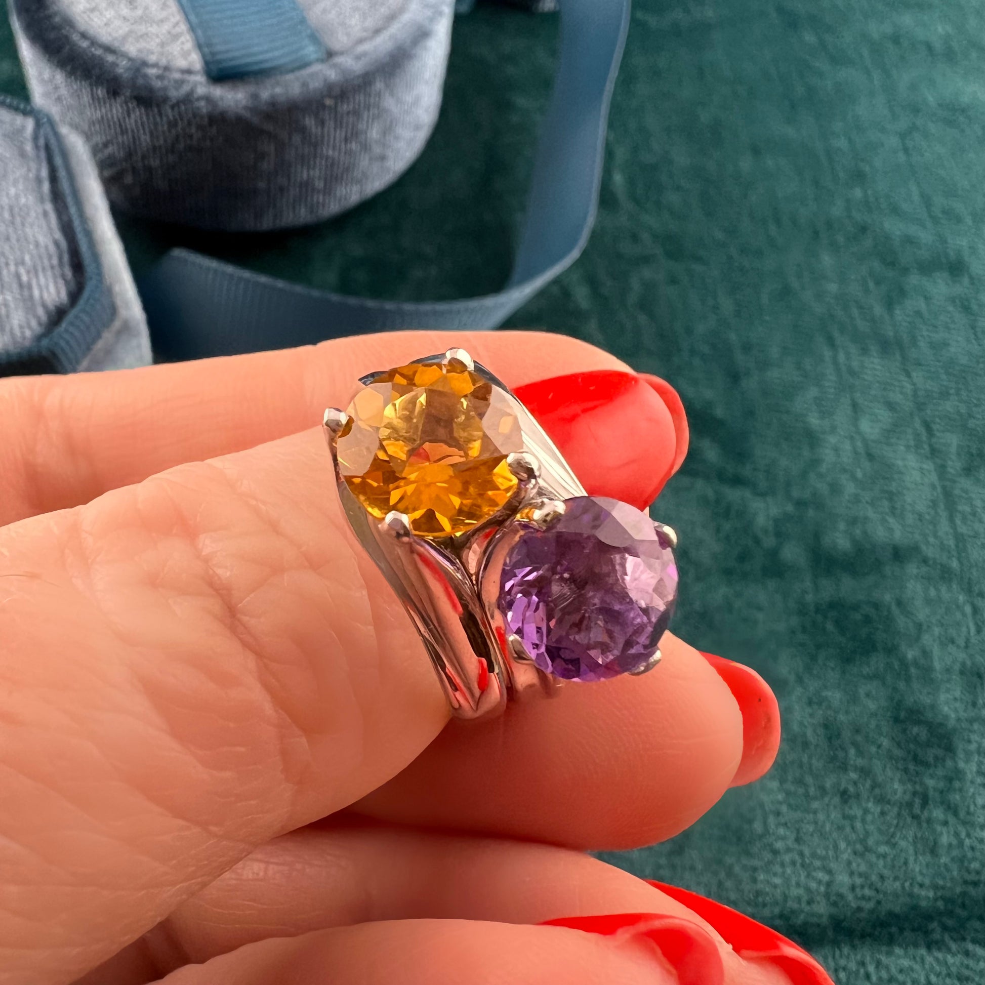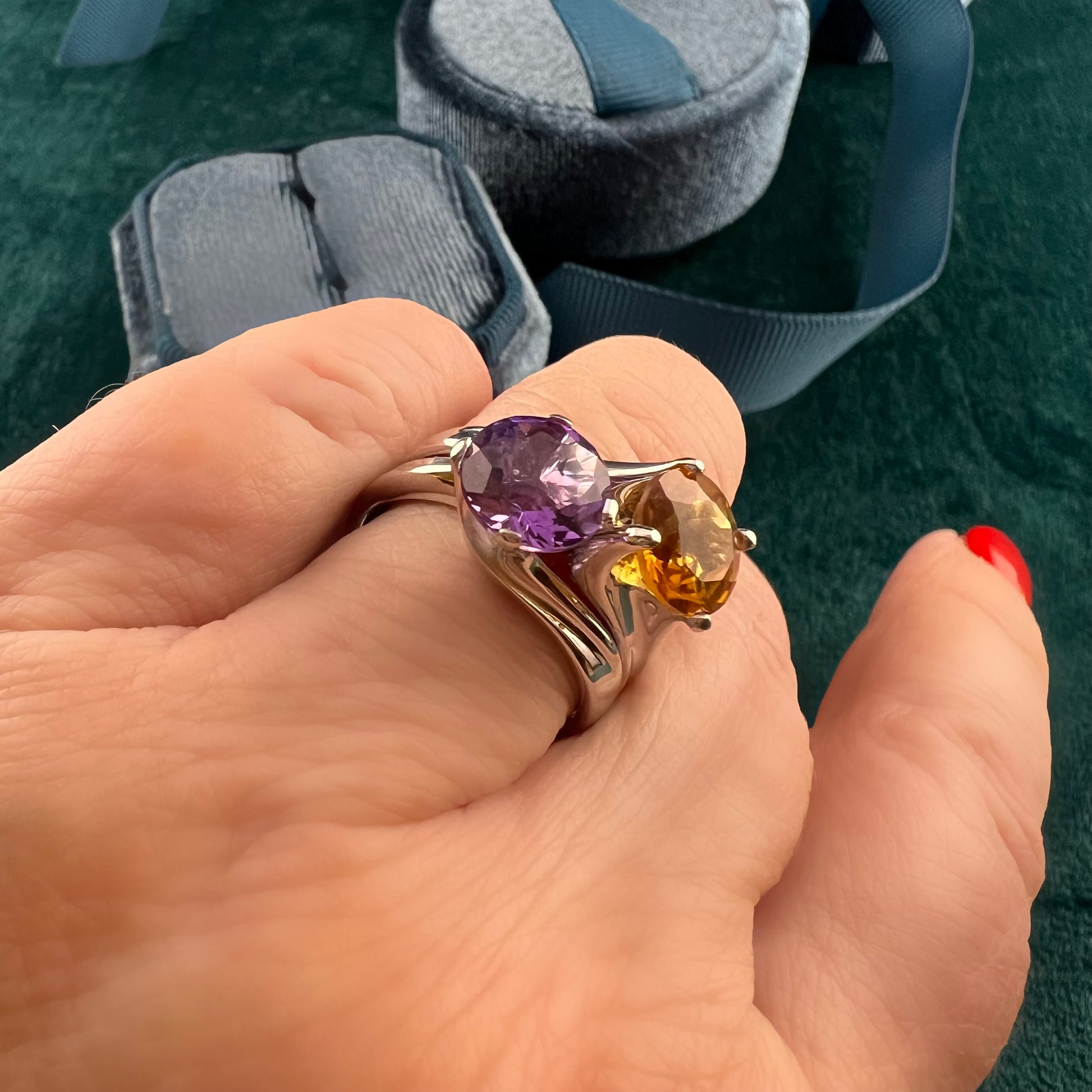 Anello contrariè - toi et moi in oro bianco 18 carati con ametista e citrino