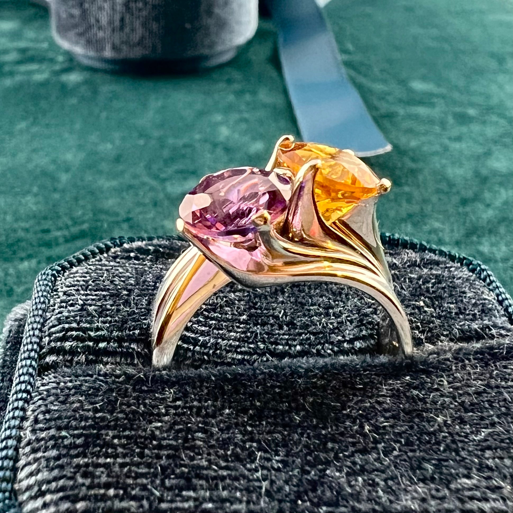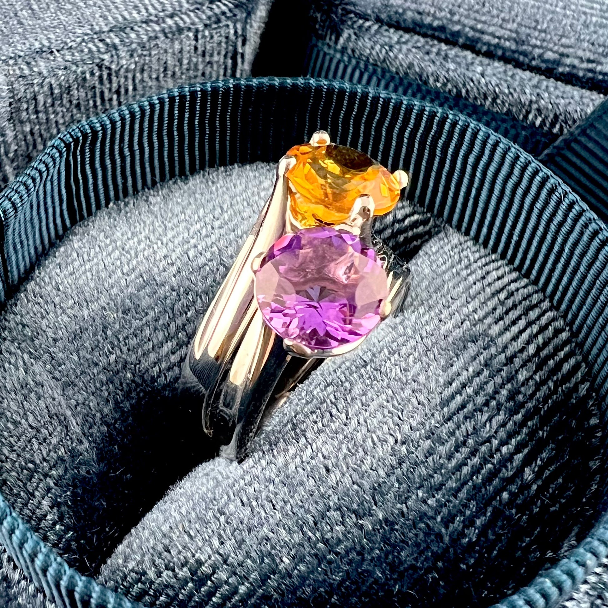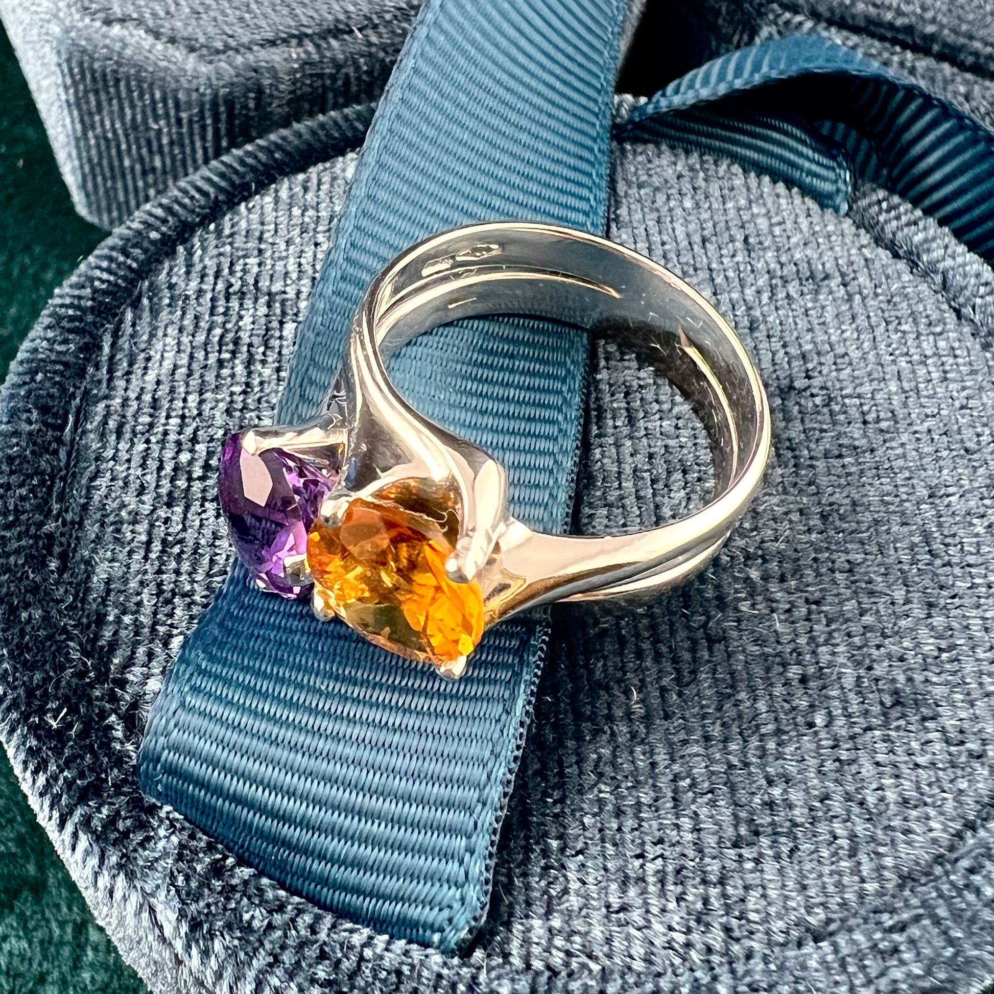 Anello contrariè - toi et moi in oro bianco 18 carati con ametista e citrino