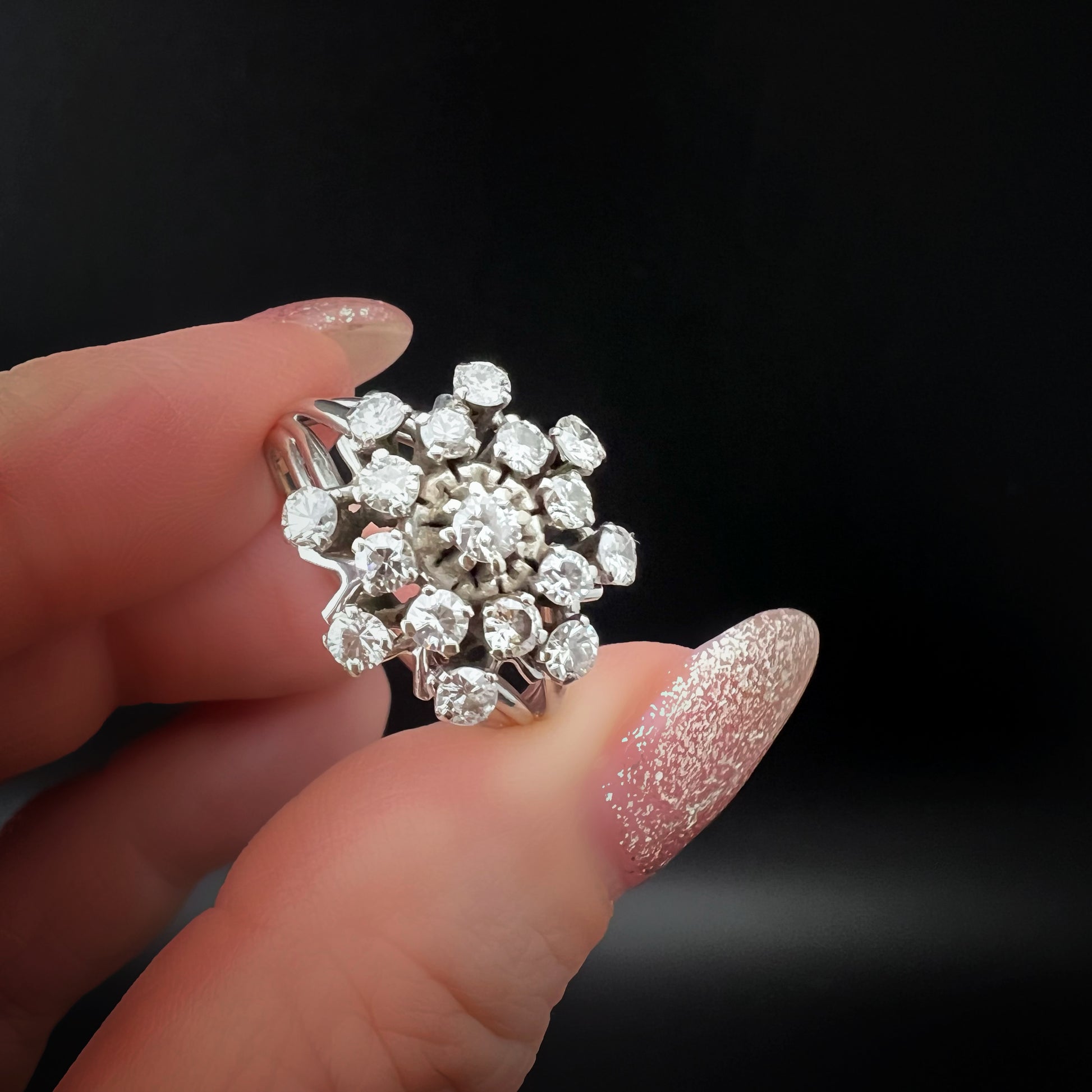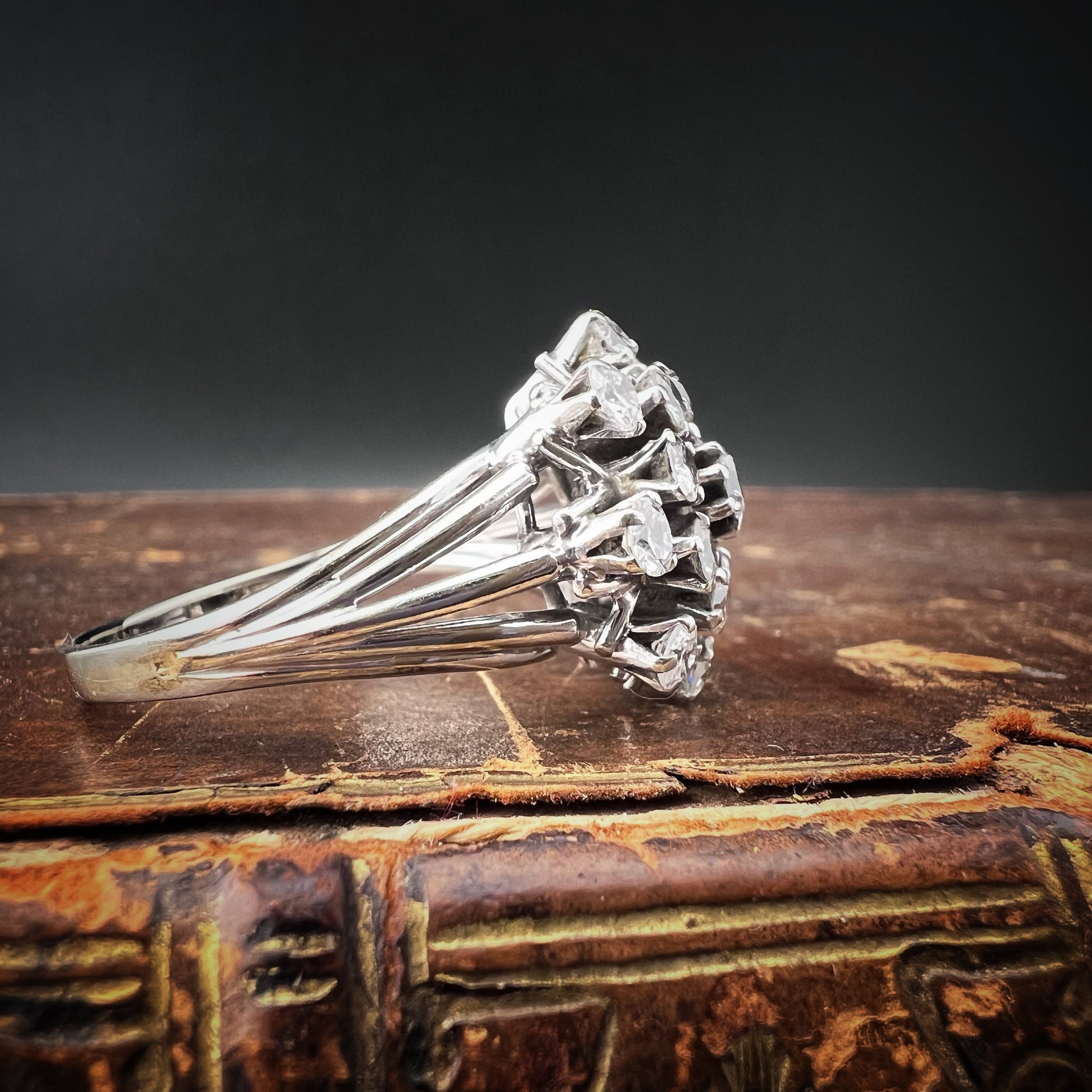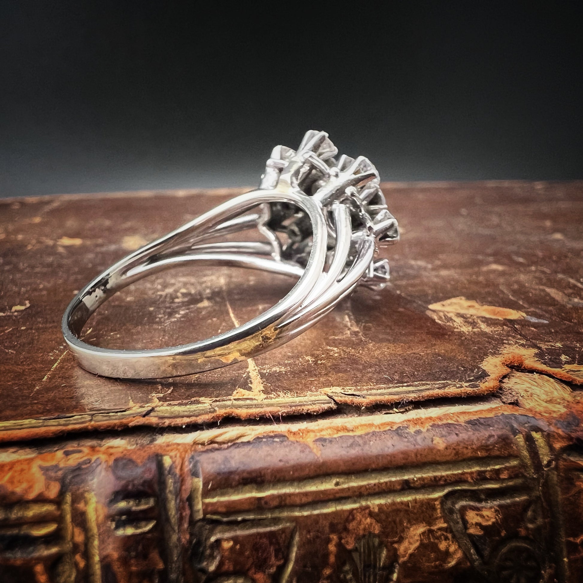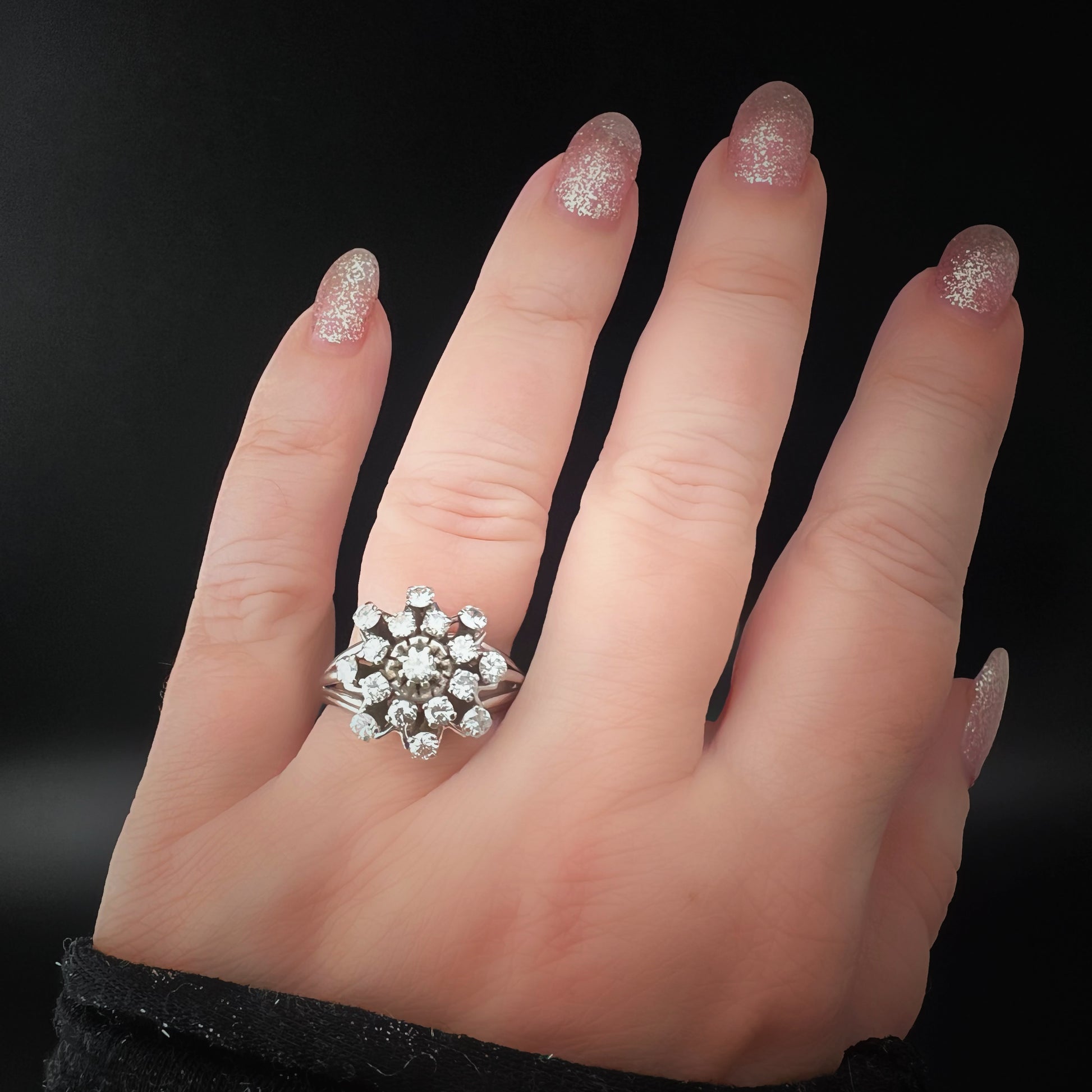 Anello grande fiore di diamanti in oro bianco 18 ct - Italia 1960