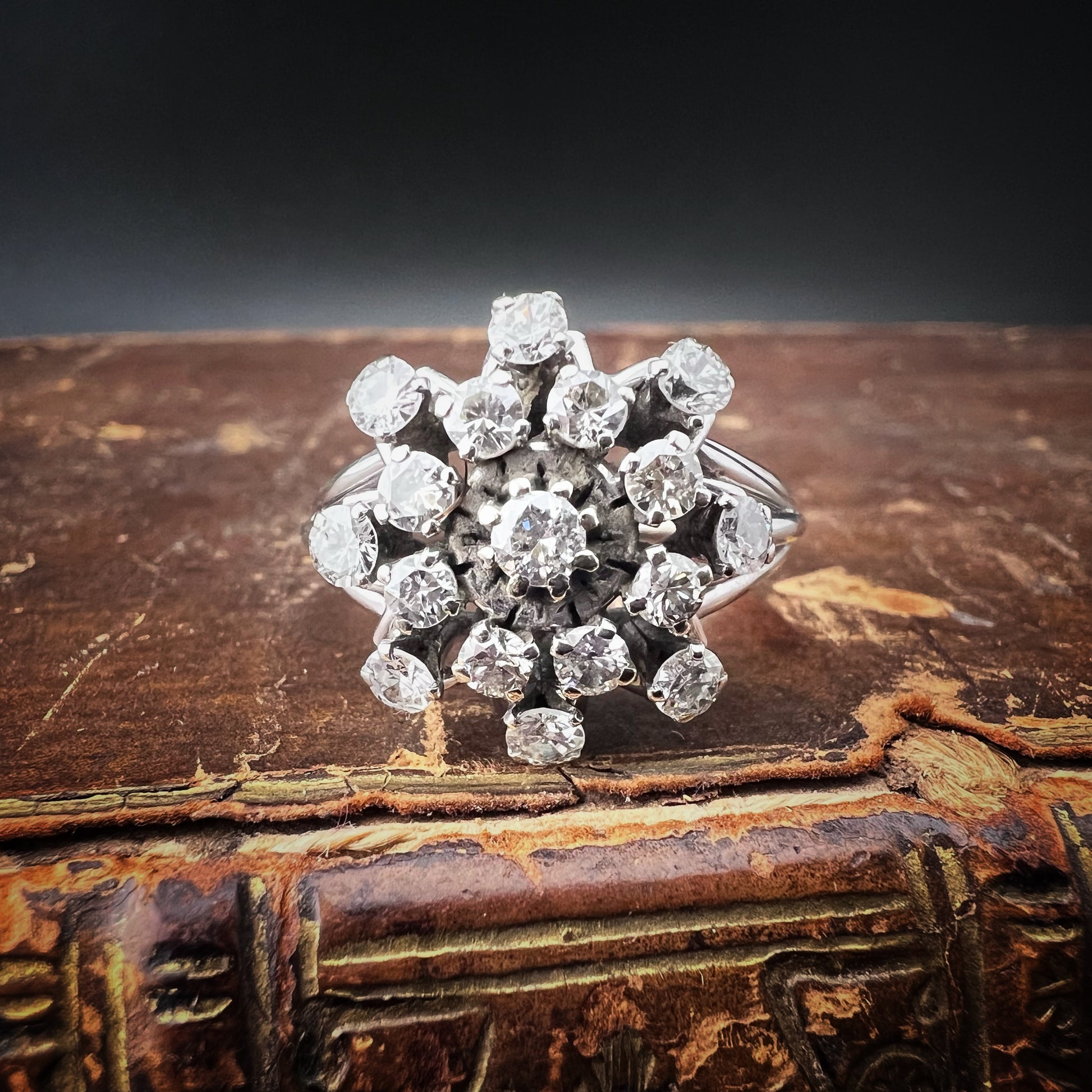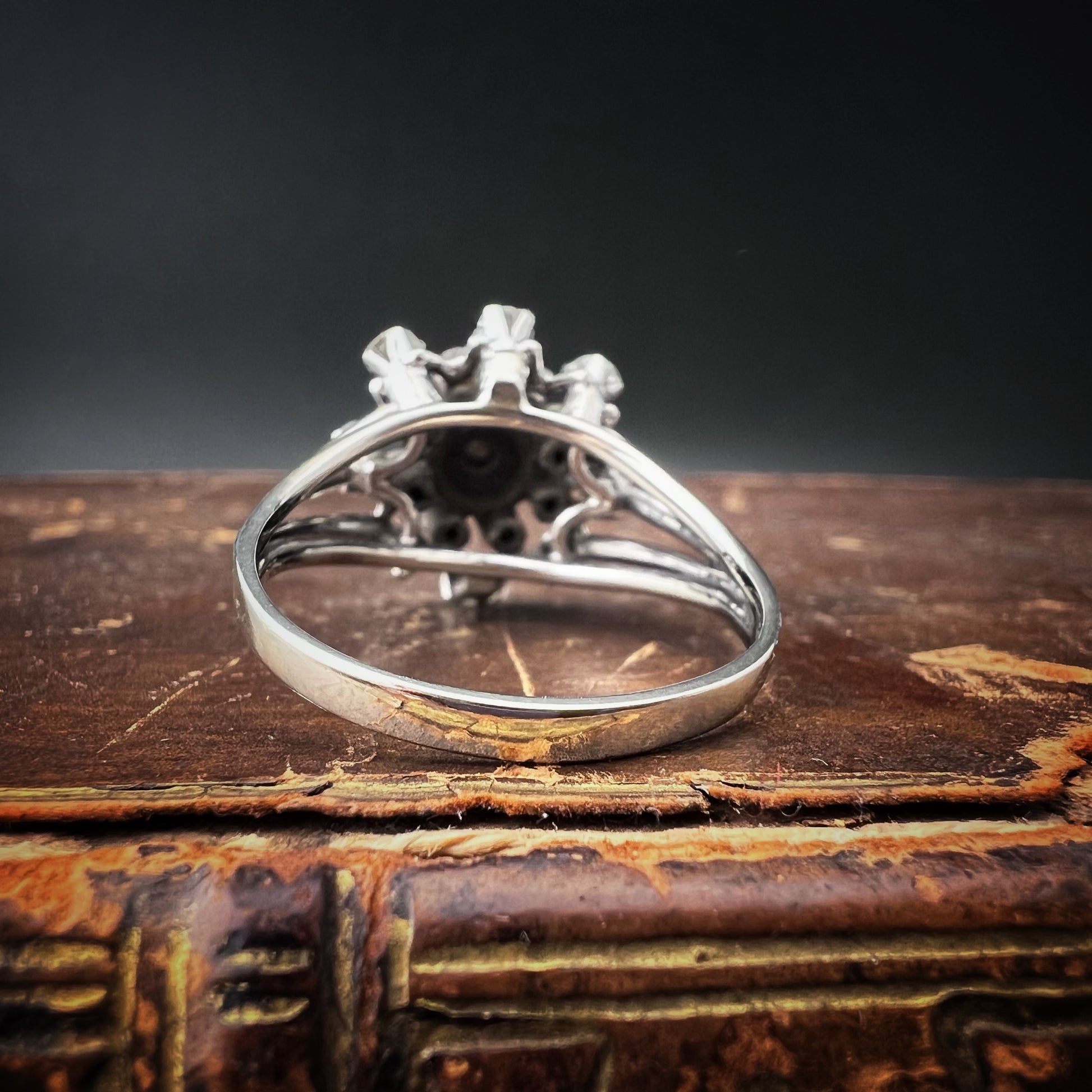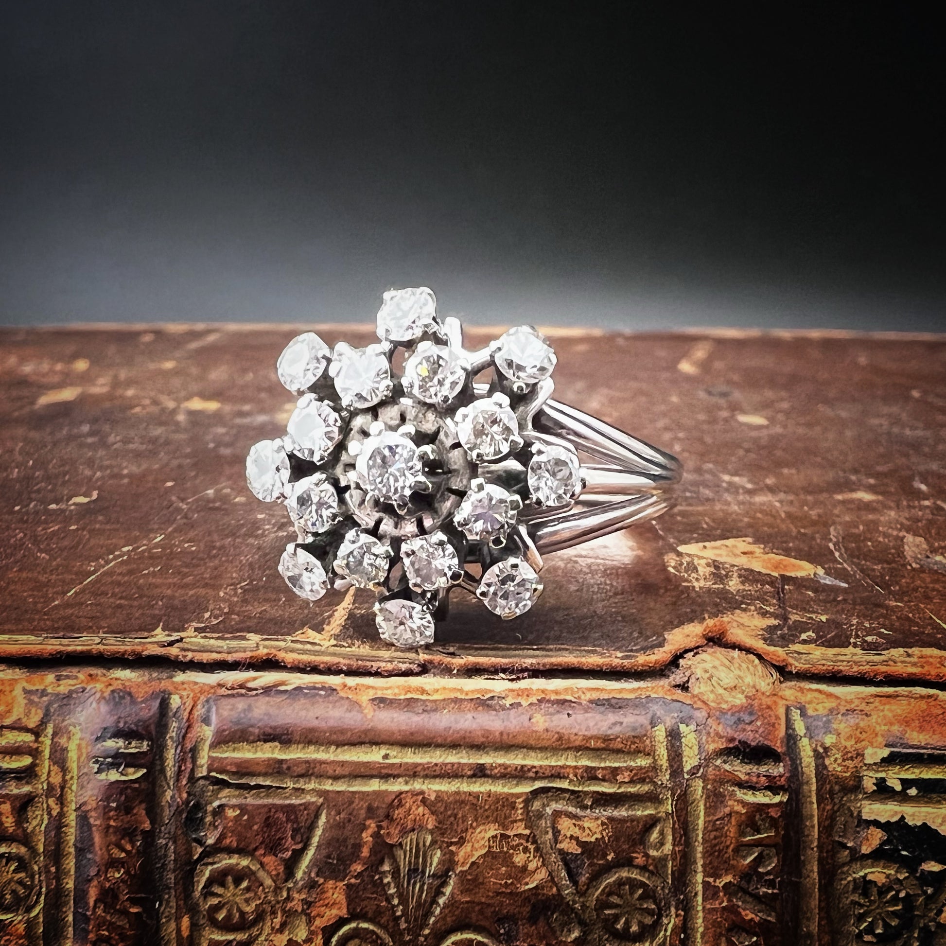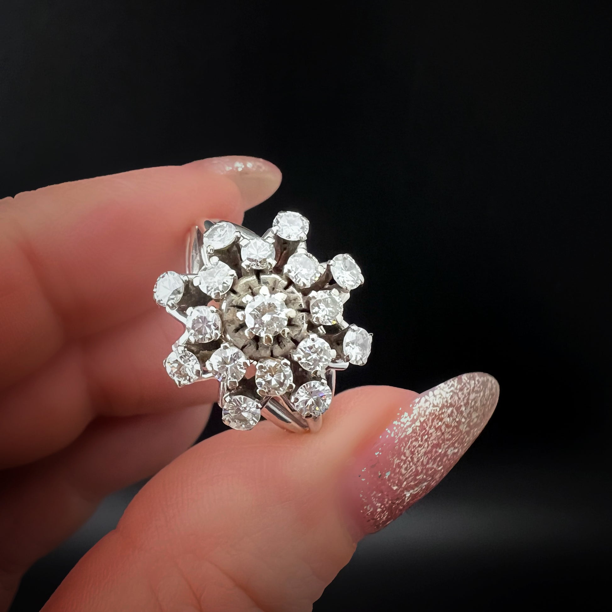 Anello grande fiore di diamanti in oro bianco 18 ct - Italia 1960