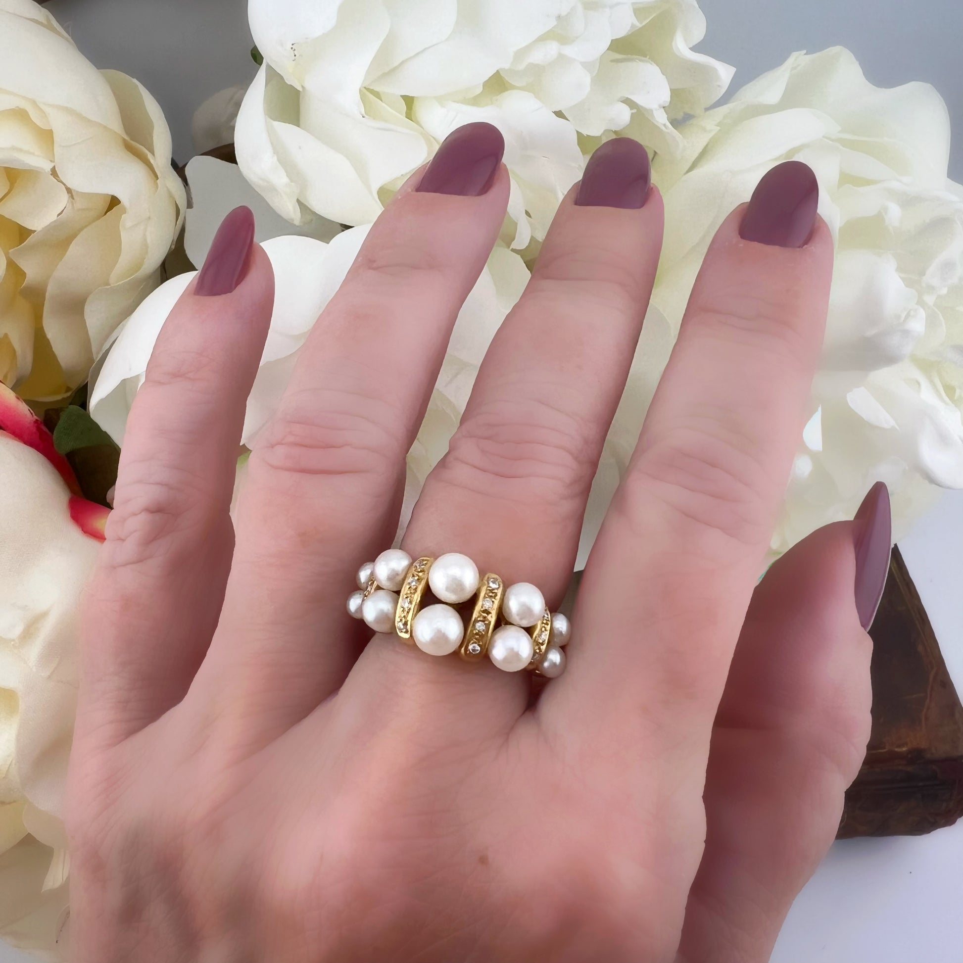 Insieme, perle e diamanti creano un perfetto equilibrio tra delicatezza e forza, rendendo l’anello non solo un gioiello, ma anche un simbolo di valori profondi.