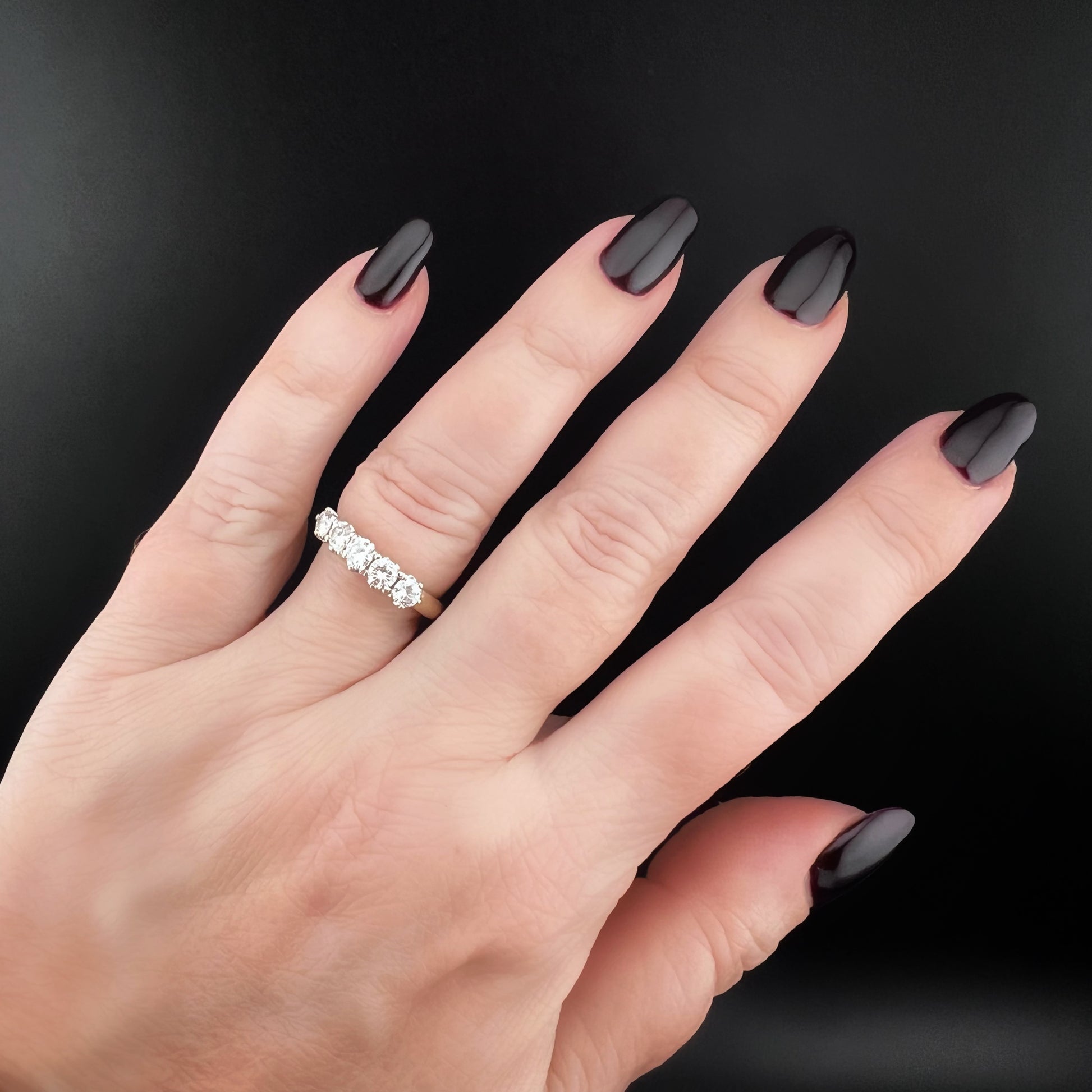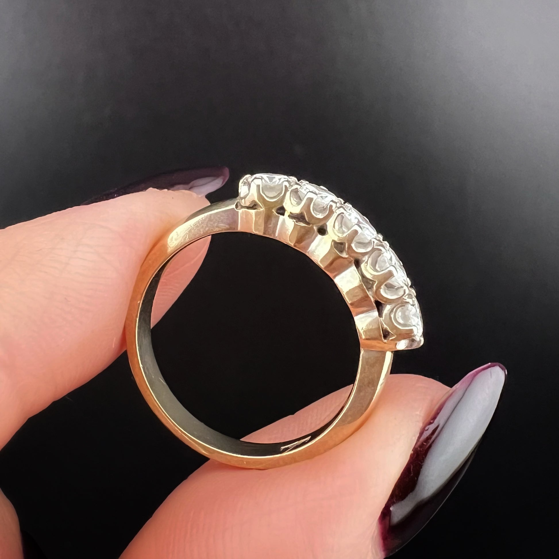 Anello vintage modello “riviere” realizzato in oro gisolo 18 carati, dal design classico ed elegante.