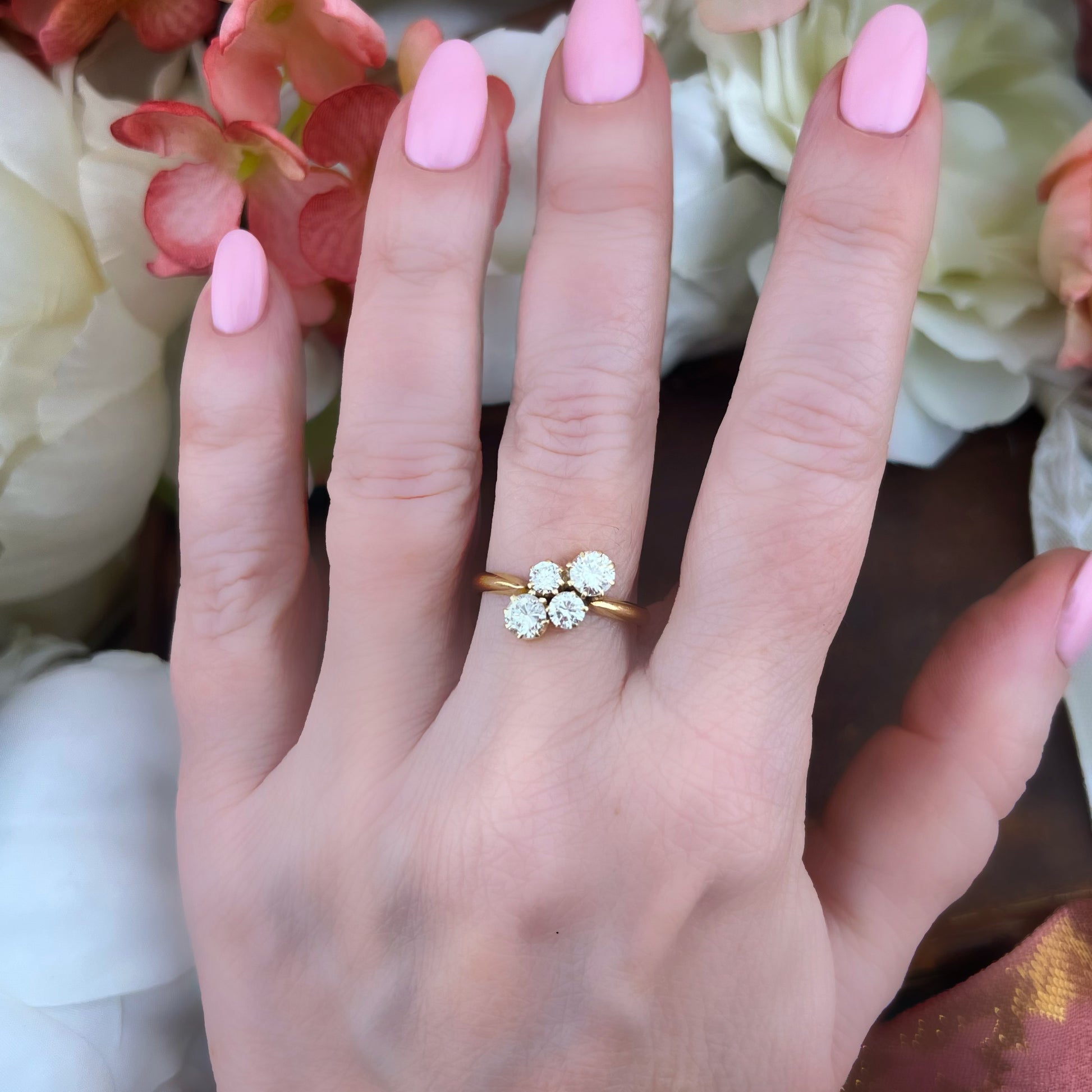 Anello vintage a quattro diamanti in oro giallo 18 carati