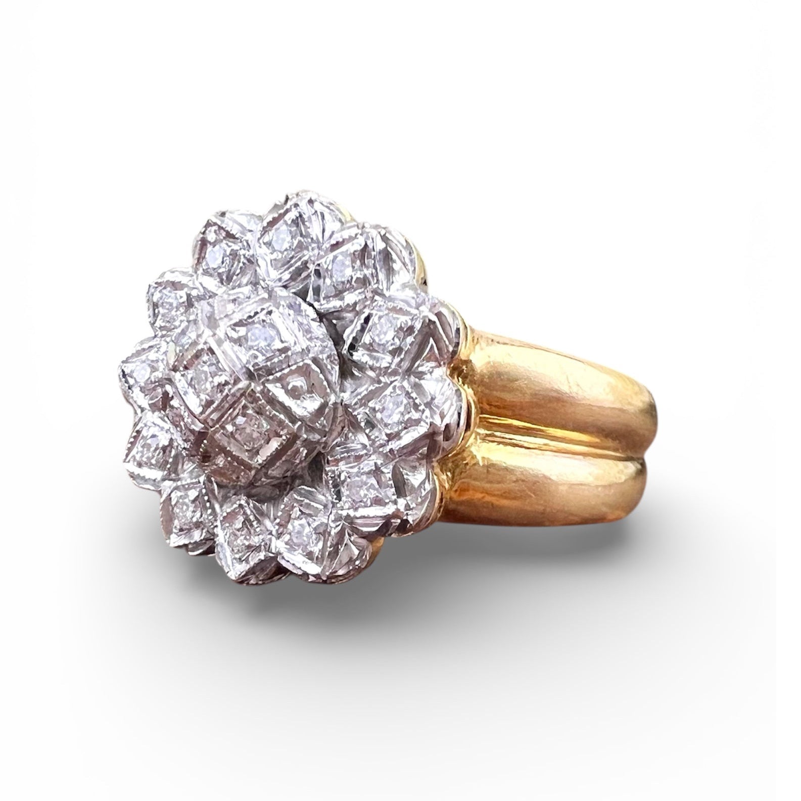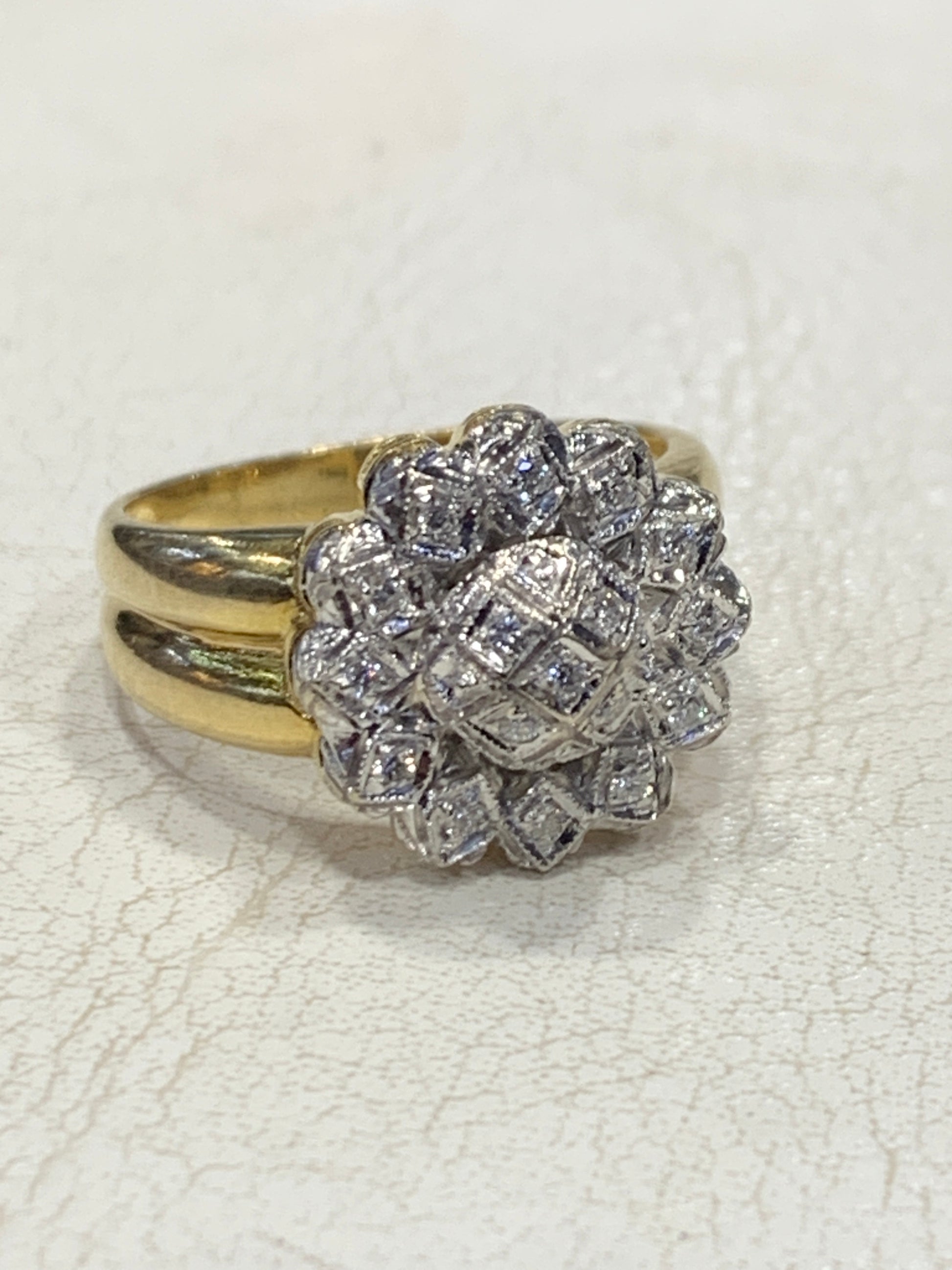 Anello Vintage Fiore in Oro 18K con Diamanti. Italia anni 80