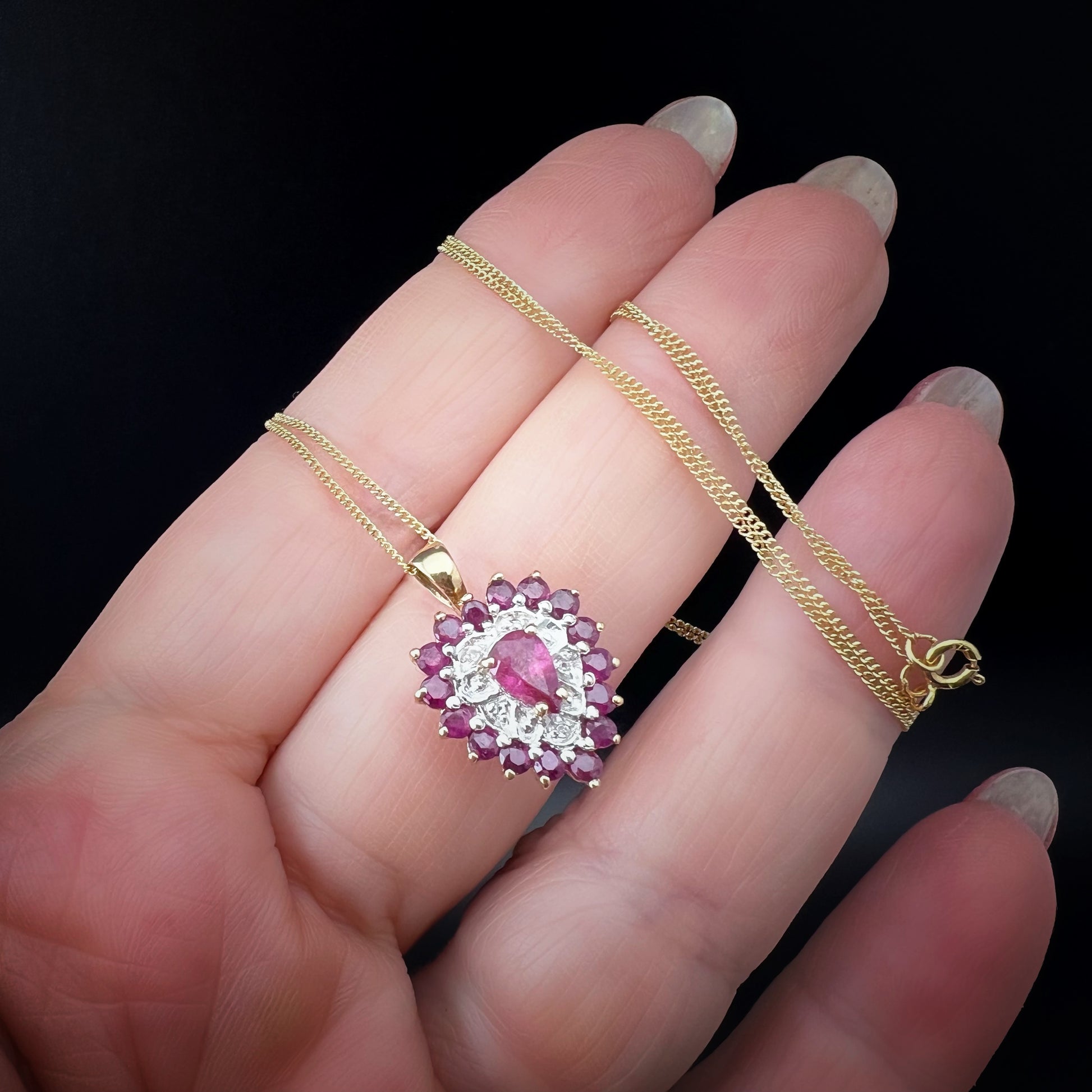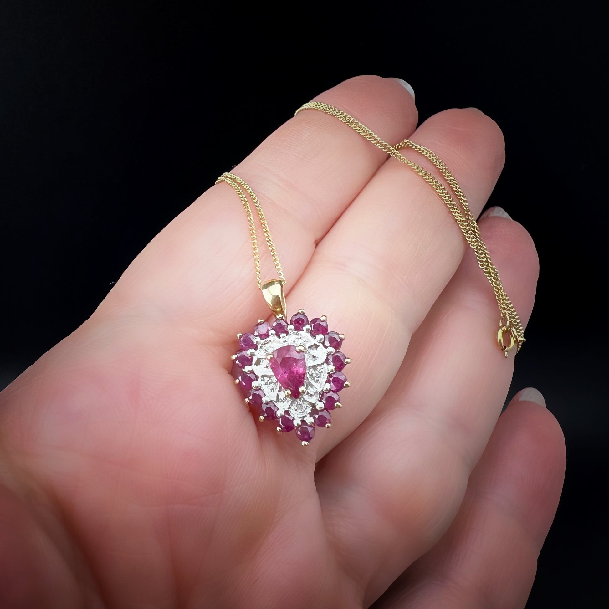 2. Eleganza vintage senza tempo – L’armonia tra rubini, diamanti e oro 9 carati dona un fascino vintage, rendendolo un pezzo esclusivo, elegante e raffinato.