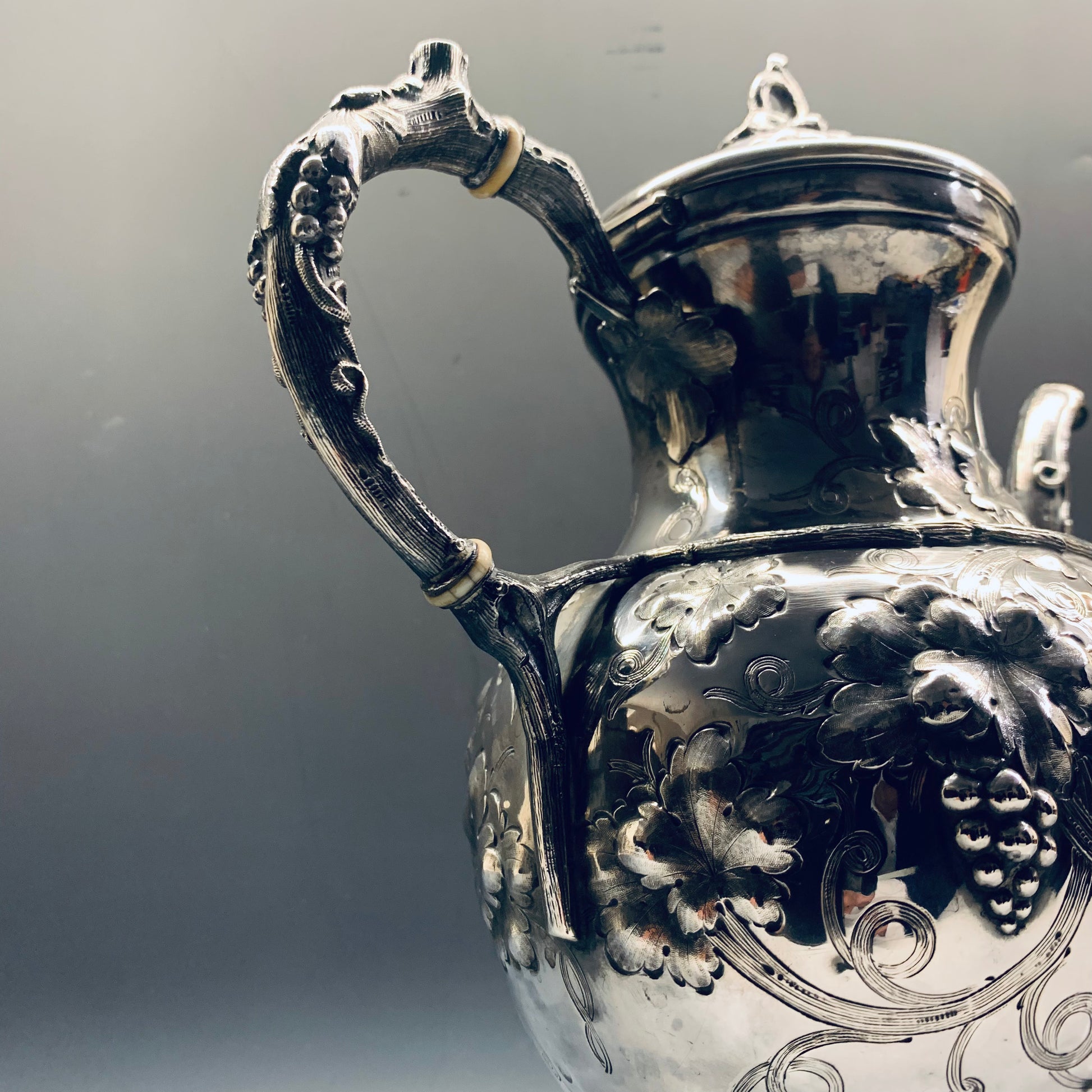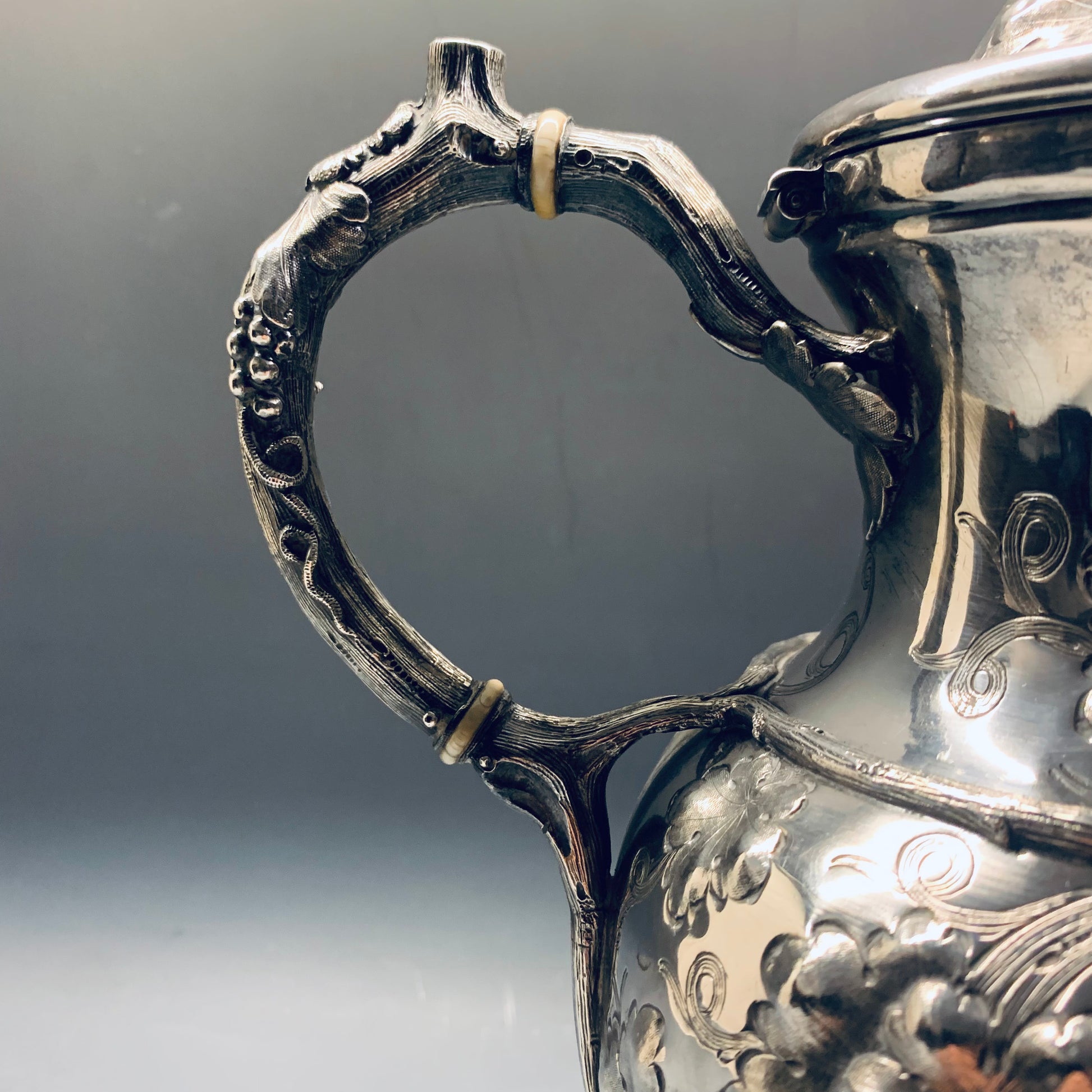 Rara caffettiera di Charters, Cann & Dunn, New York 1850 in argento di titolo COIN